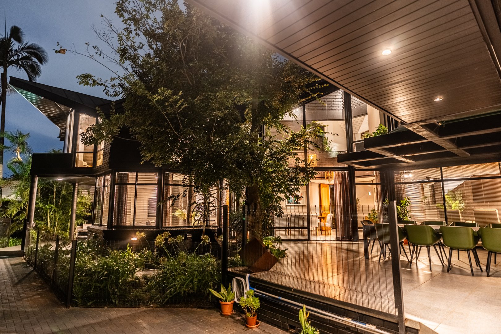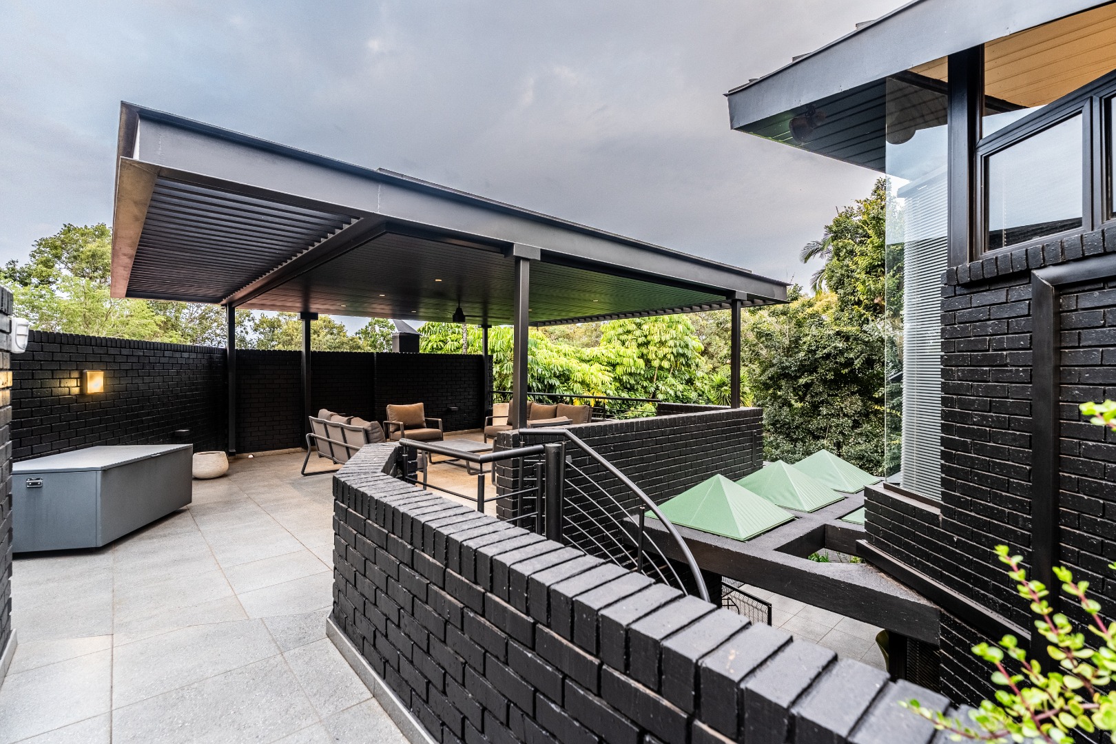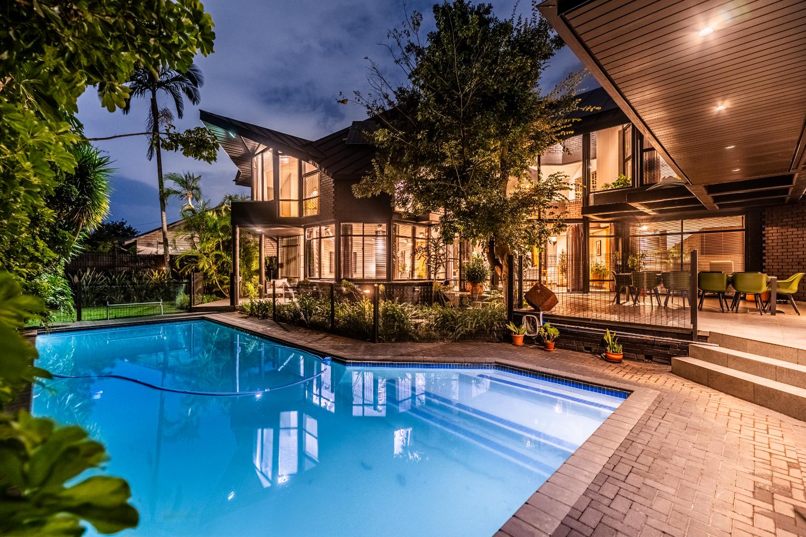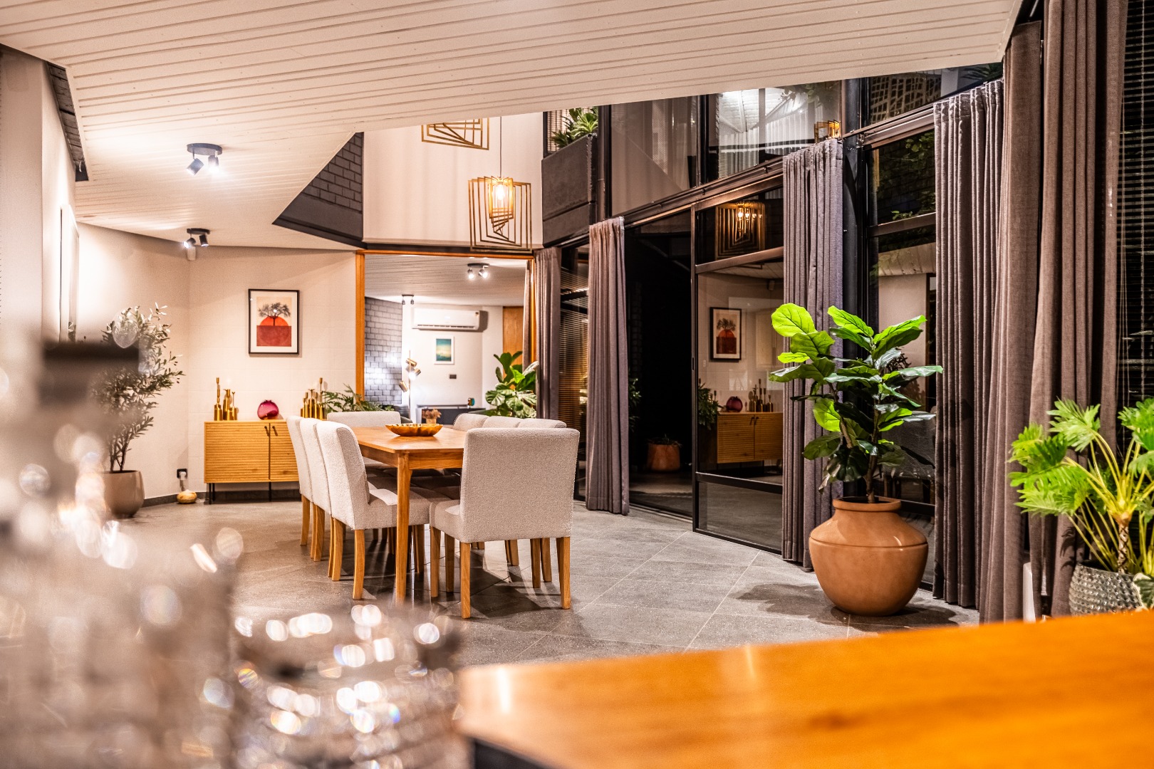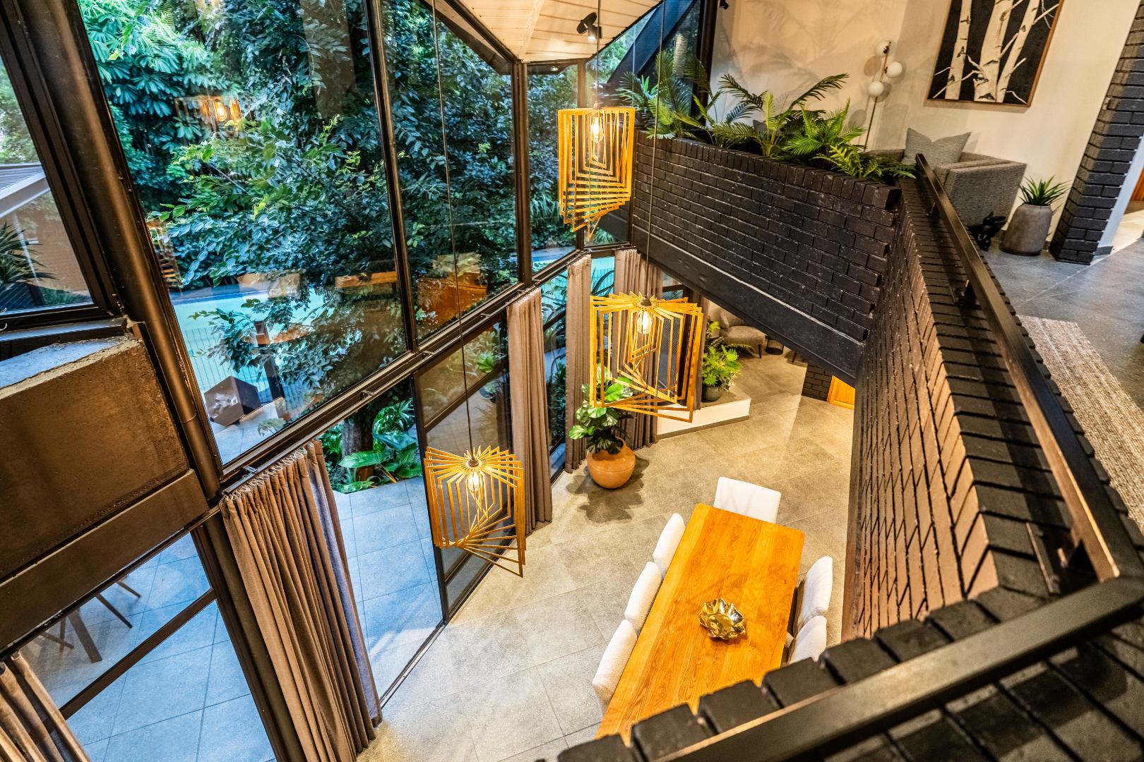 As you enter through the grand lead-glass entrance, you are welcomed by double-volume spaces and an abundance of natural light. The home is engineered for comfort with double-cavity walls providing superior insulation and soundproofing. The master retreat is a true sanctuary featuring a private reading nook overlooking the garden, a walk-in wardrobe, and a designer en-suite bathroom bathed in light from a curated skylight. For visiting family or long-term guests, the guest wing offers complete privacy with its own separate entrance, private balcony, en-suite bathroom, and kitchenette. The gourmet kitchen serves as the heart of the home, equipped with a gas stove, pantry, and scullery, featuring a clever serving hatch that connects the interior to the outdoor entertainment deck.