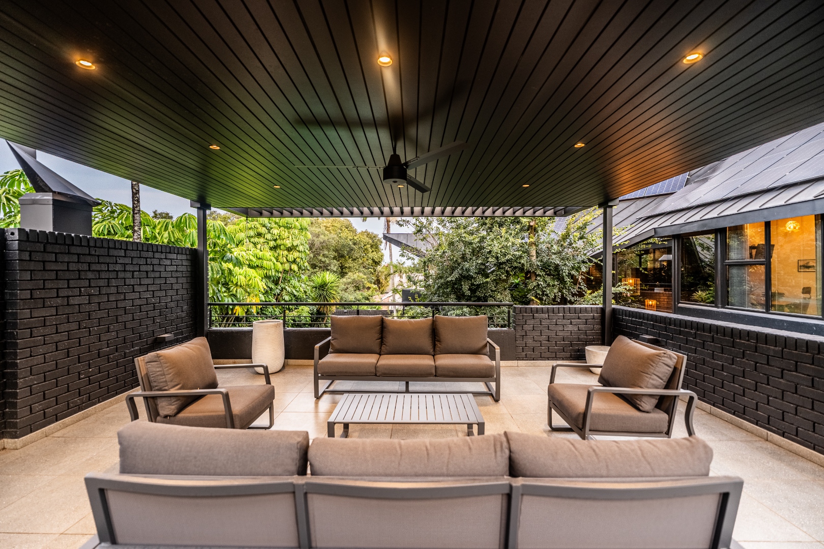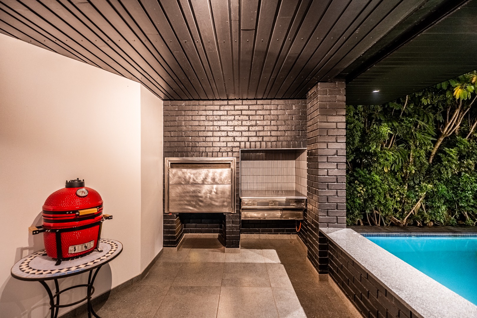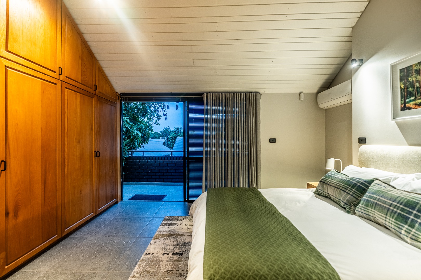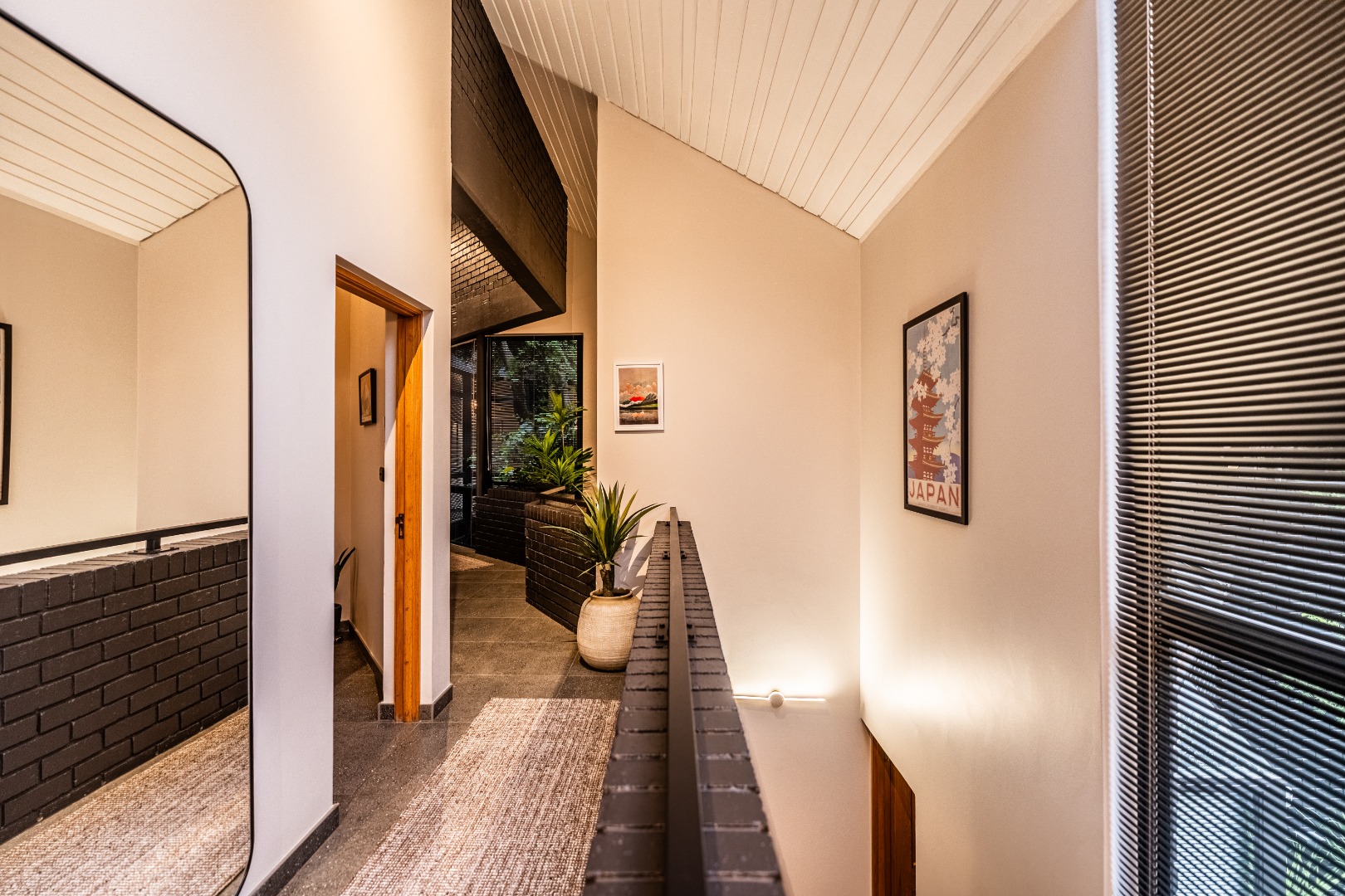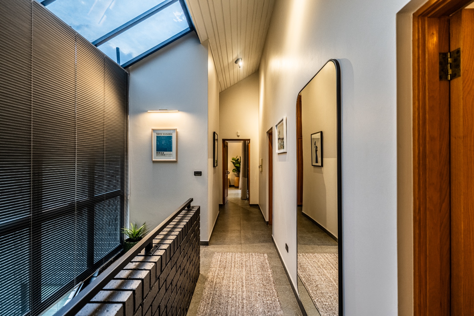 As you enter through the grand lead-glass entrance, you are welcomed by double-volume spaces and an abundance of natural light. The home is engineered for comfort with double-cavity walls providing superior insulation and soundproofing. The master retreat is a true sanctuary featuring a private reading nook overlooking the garden, a walk-in wardrobe, and a designer en-suite bathroom bathed in light from a curated skylight. For visiting family or long-term guests, the guest wing offers complete privacy with its own separate entrance, private balcony, en-suite bathroom, and kitchenette. The gourmet kitchen serves as the heart of the home, equipped with a gas stove, pantry, and scullery, featuring a clever serving hatch that connects the interior to the outdoor entertainment deck.
