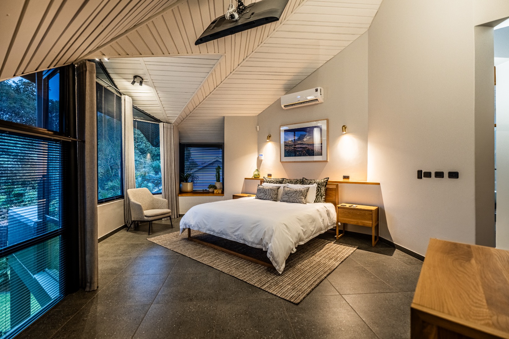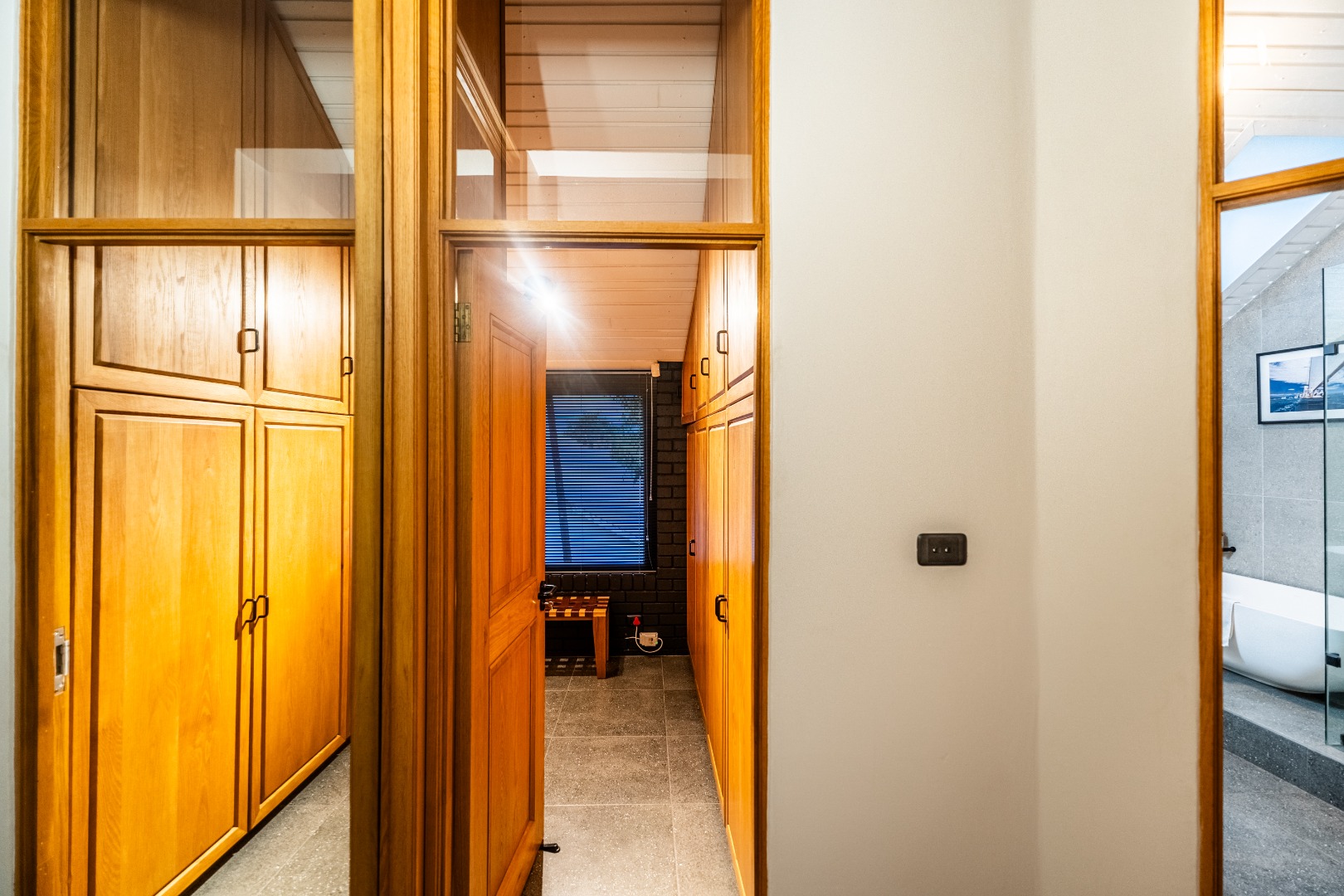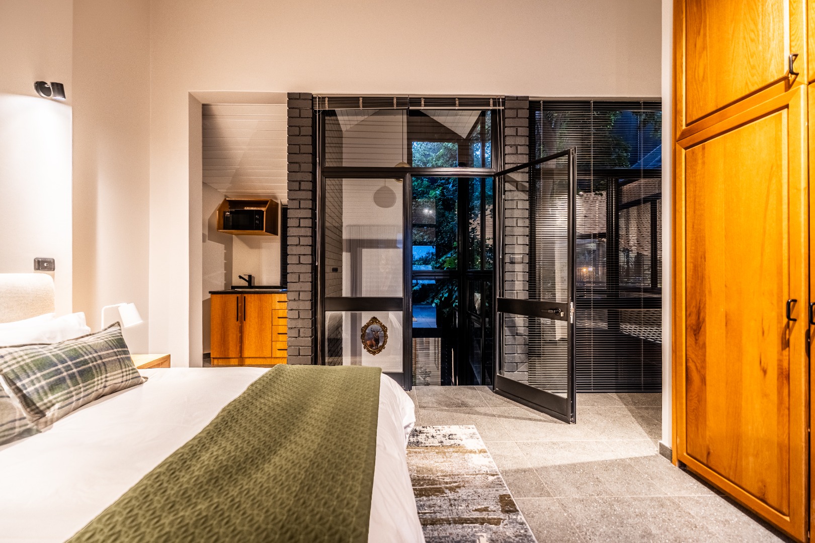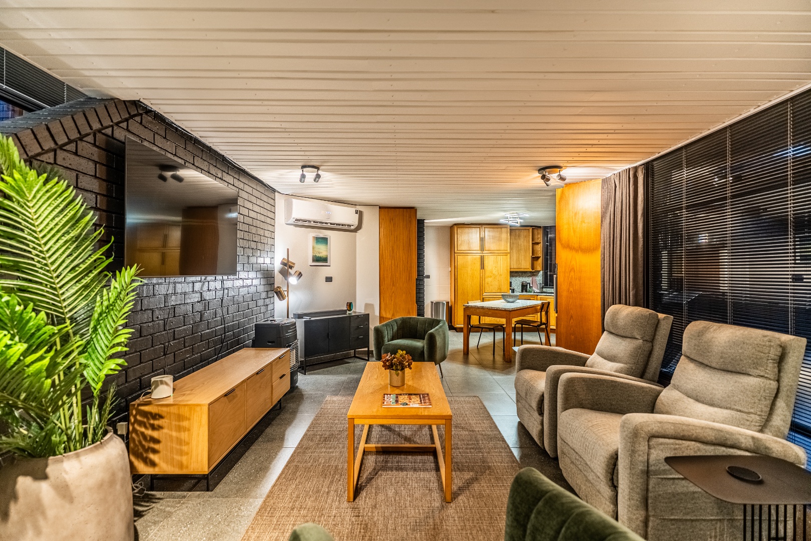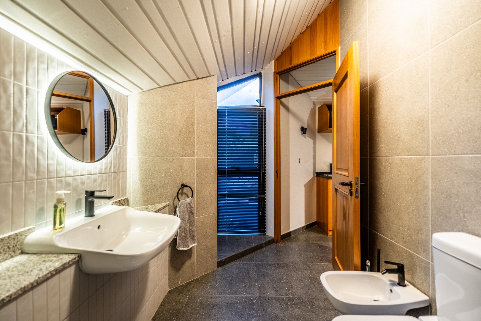 As you enter through the grand lead-glass entrance, you are welcomed by double-volume spaces and an abundance of natural light. The home is engineered for comfort with double-cavity walls providing superior insulation and soundproofing. The master retreat is a true sanctuary featuring a private reading nook overlooking the garden, a walk-in wardrobe, and a designer en-suite bathroom bathed in light from a curated skylight. For visiting family or long-term guests, the guest wing offers complete privacy with its own separate entrance, private balcony, en-suite bathroom, and kitchenette. The gourmet kitchen serves as the heart of the home, equipped with a gas stove, pantry, and scullery, featuring a clever serving hatch that connects the interior to the outdoor entertainment deck.