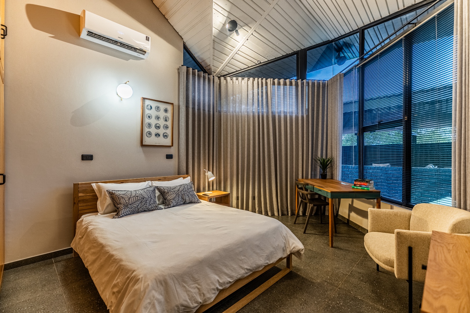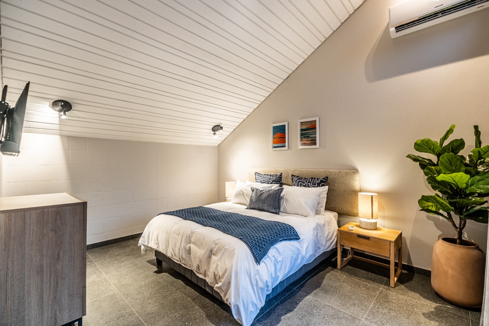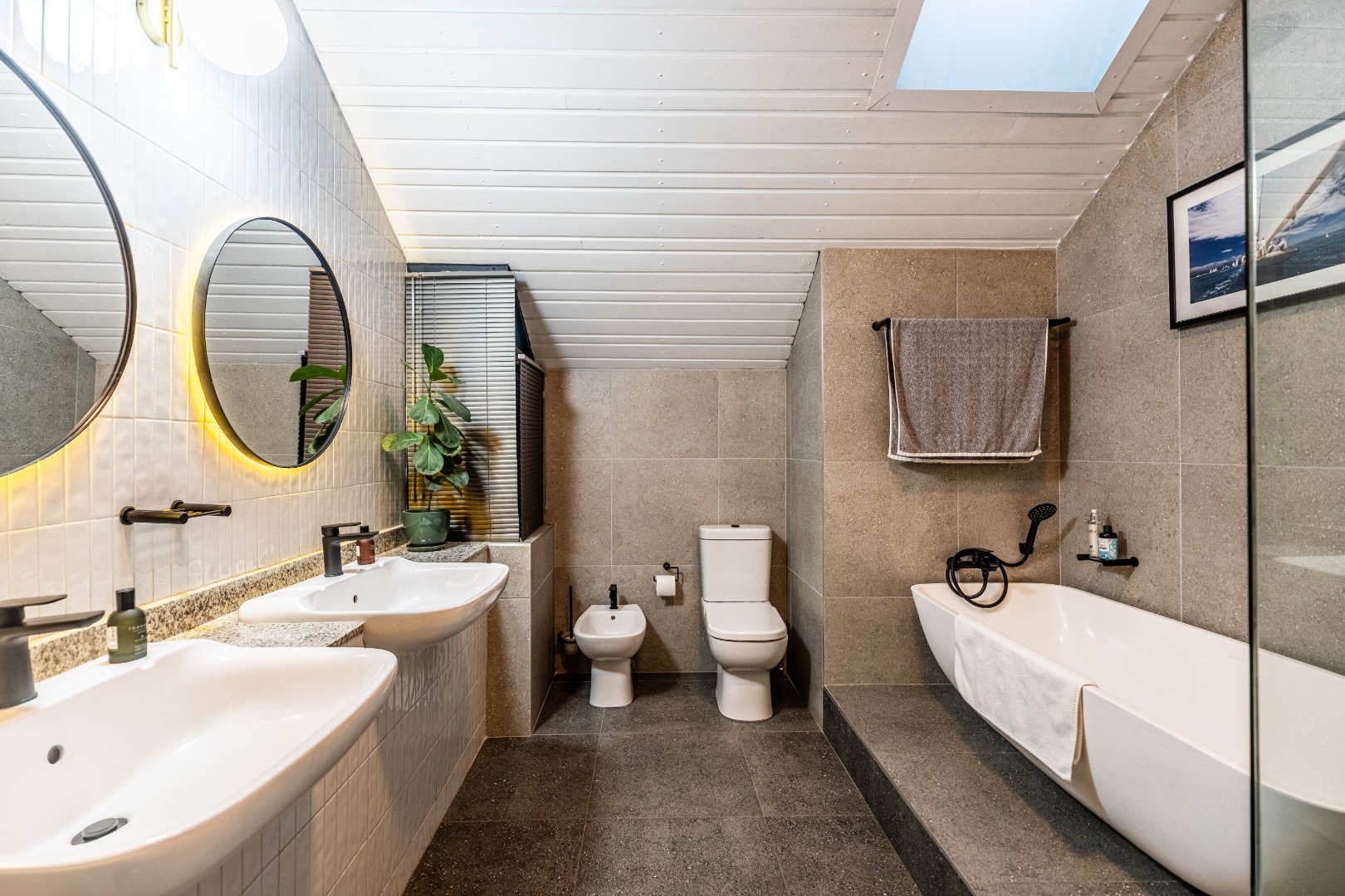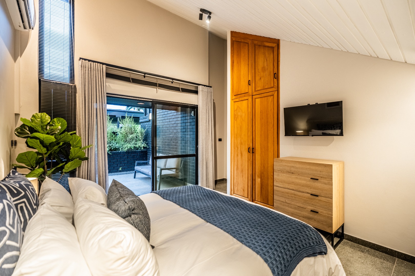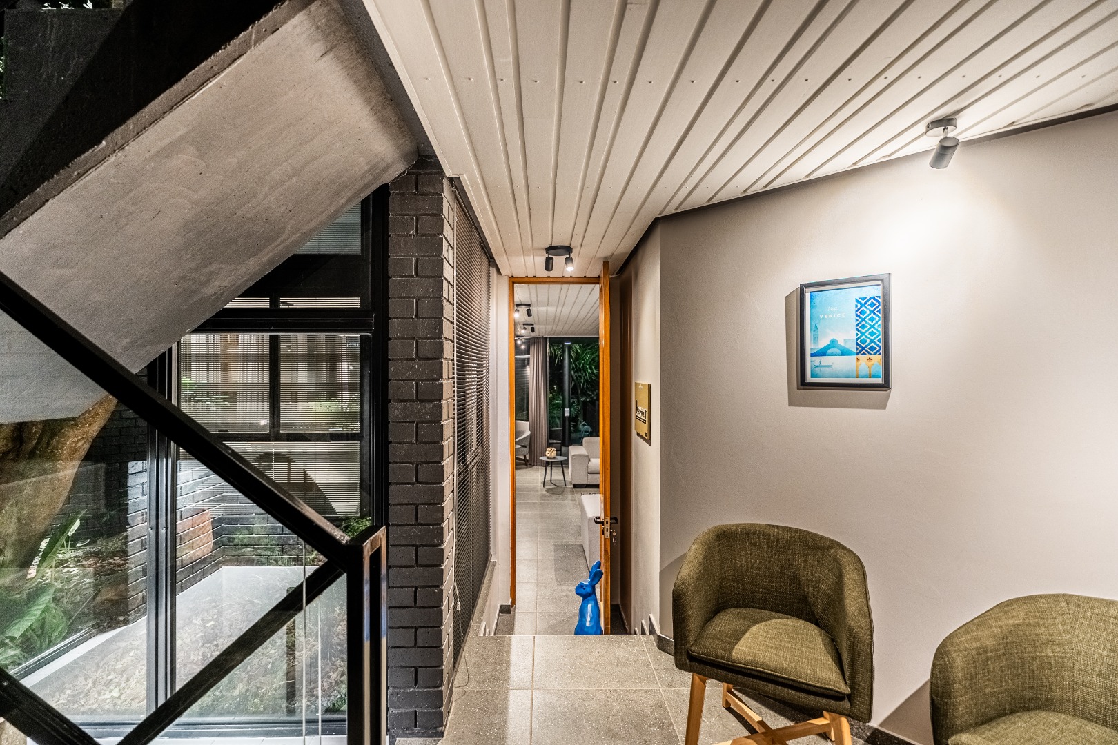 As you enter through the grand lead-glass entrance, you are welcomed by double-volume spaces and an abundance of natural light. The home is engineered for comfort with double-cavity walls providing superior insulation and soundproofing. The master retreat is a true sanctuary featuring a private reading nook overlooking the garden, a walk-in wardrobe, and a designer en-suite bathroom bathed in light from a curated skylight. For visiting family or long-term guests, the guest wing offers complete privacy with its own separate entrance, private balcony, en-suite bathroom, and kitchenette. The gourmet kitchen serves as the heart of the home, equipped with a gas stove, pantry, and scullery, featuring a clever serving hatch that connects the interior to the outdoor entertainment deck.