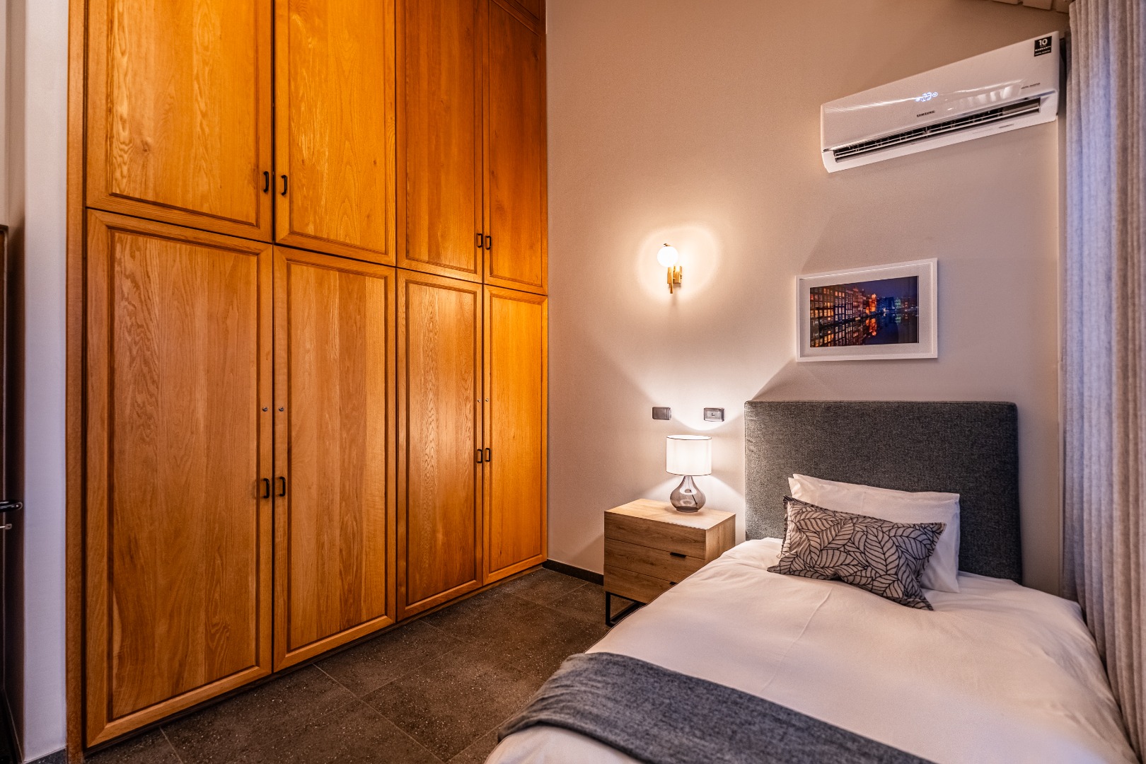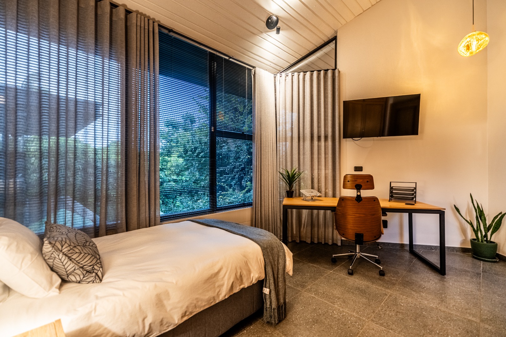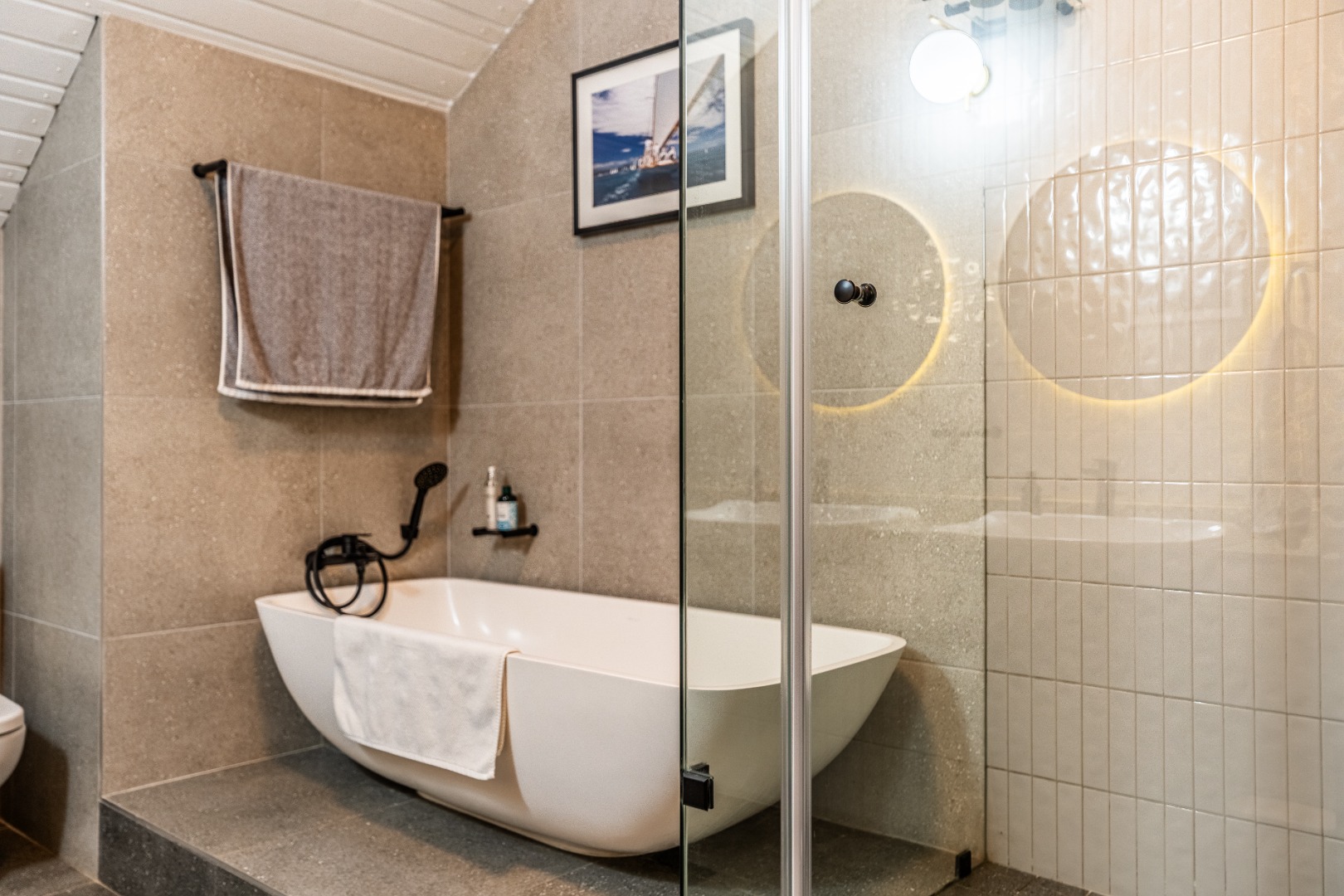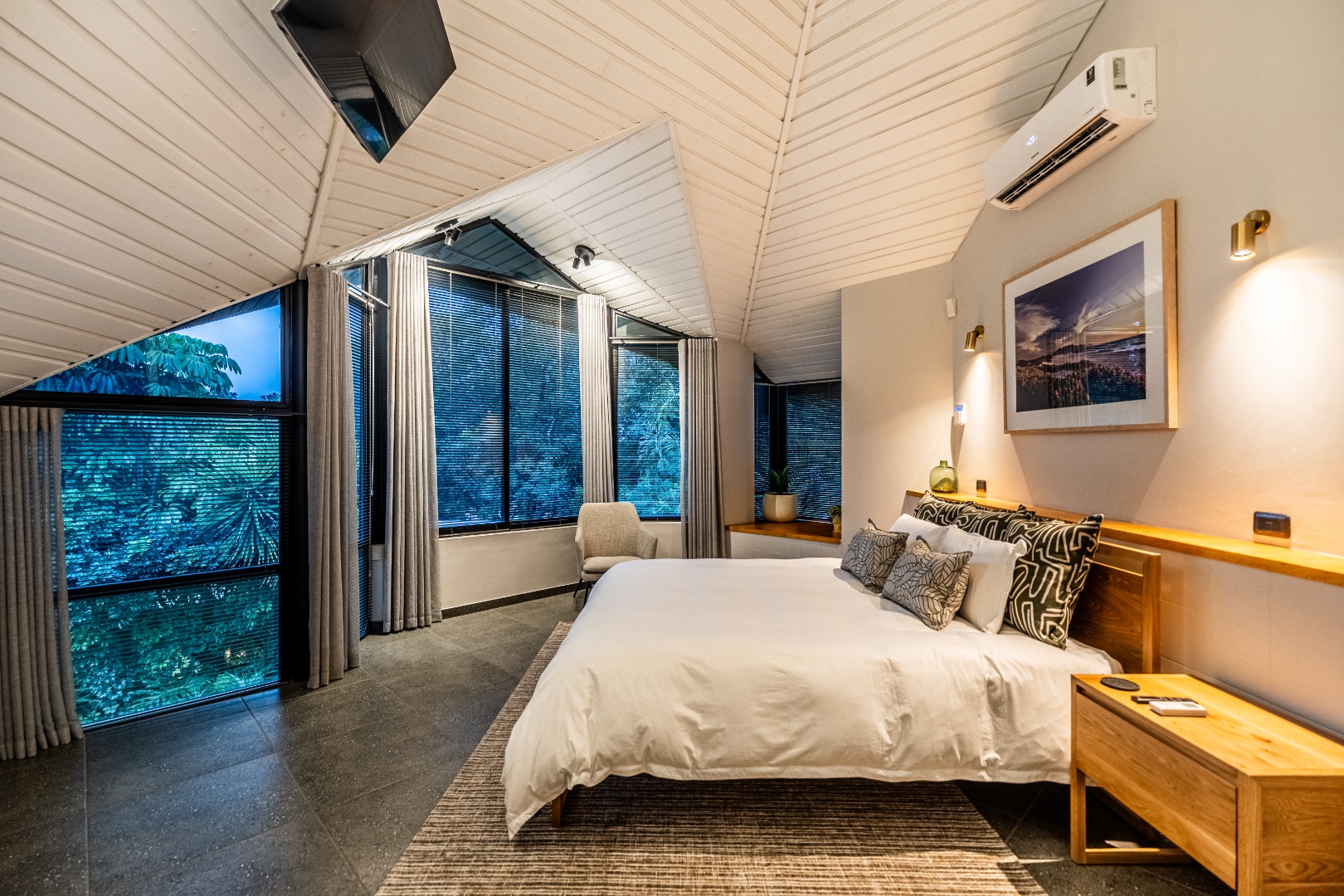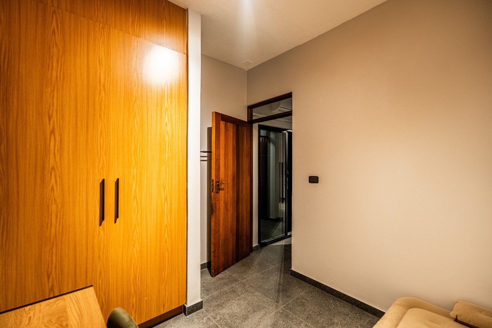 As you enter through the grand lead-glass entrance, you are welcomed by double-volume spaces and an abundance of natural light. The home is engineered for comfort with double-cavity walls providing superior insulation and soundproofing. The master retreat is a true sanctuary featuring a private reading nook overlooking the garden, a walk-in wardrobe, and a designer en-suite bathroom bathed in light from a curated skylight. For visiting family or long-term guests, the guest wing offers complete privacy with its own separate entrance, private balcony, en-suite bathroom, and kitchenette. The gourmet kitchen serves as the heart of the home, equipped with a gas stove, pantry, and scullery, featuring a clever serving hatch that connects the interior to the outdoor entertainment deck.