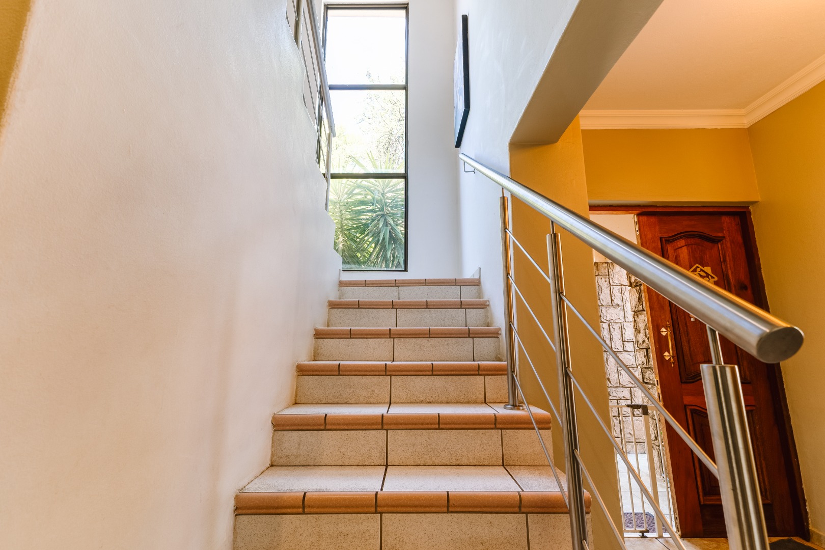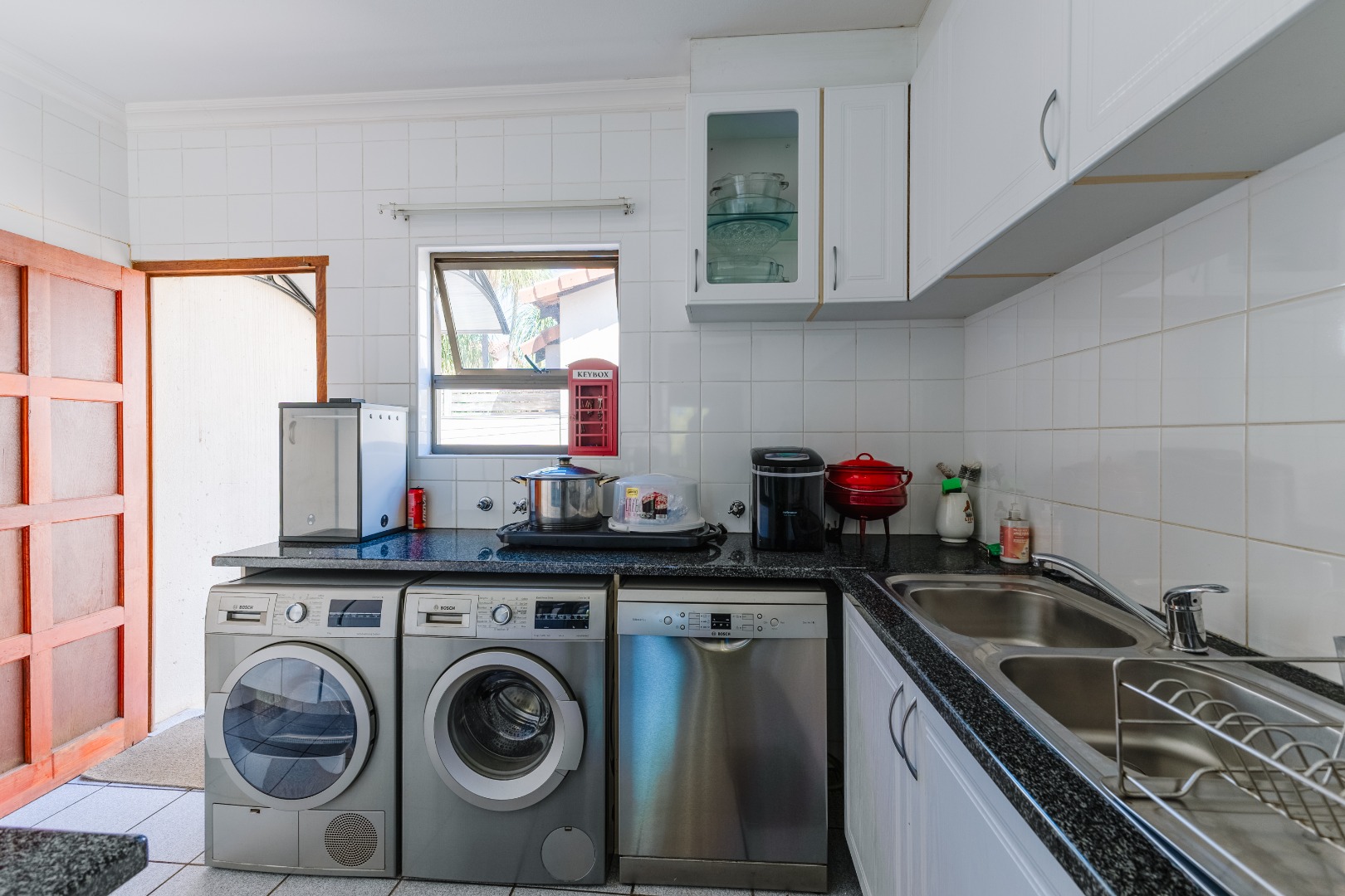 Upstairs, three generously sized bedrooms provide a peaceful retreat, with the main bedroom featuring balcony access for a private outdoor escape. Two full bathrooms and a guest cloakroom ensure convenience, while a dedicated study creates the ideal space for remote work. Additional features include staff quarters, four covered carports, and two garages. Nestled in a quiet cul-de-sac, this property offers privacy, security, and an enviable location close to schools, hospitals, shopping hubs, and major routes—delivering a lifestyle of both comfort and convenience.