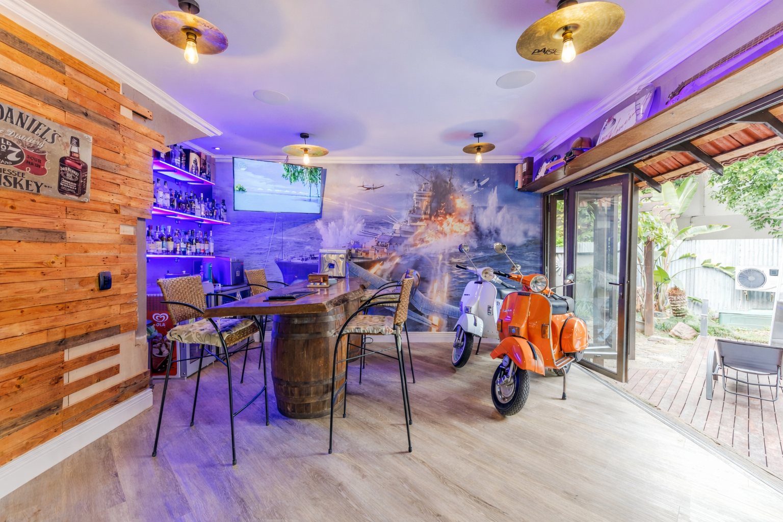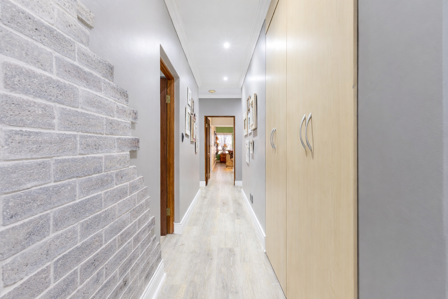 A wine cellar adds a unique touch for the discerning buyer, while integrated ceiling speakers and bespoke lighting enhance the ambiance throughout the living areas. The bathrooms have been fully modernised with high-end finishes, and a spacious scullery complements the kitchen for added functionality.