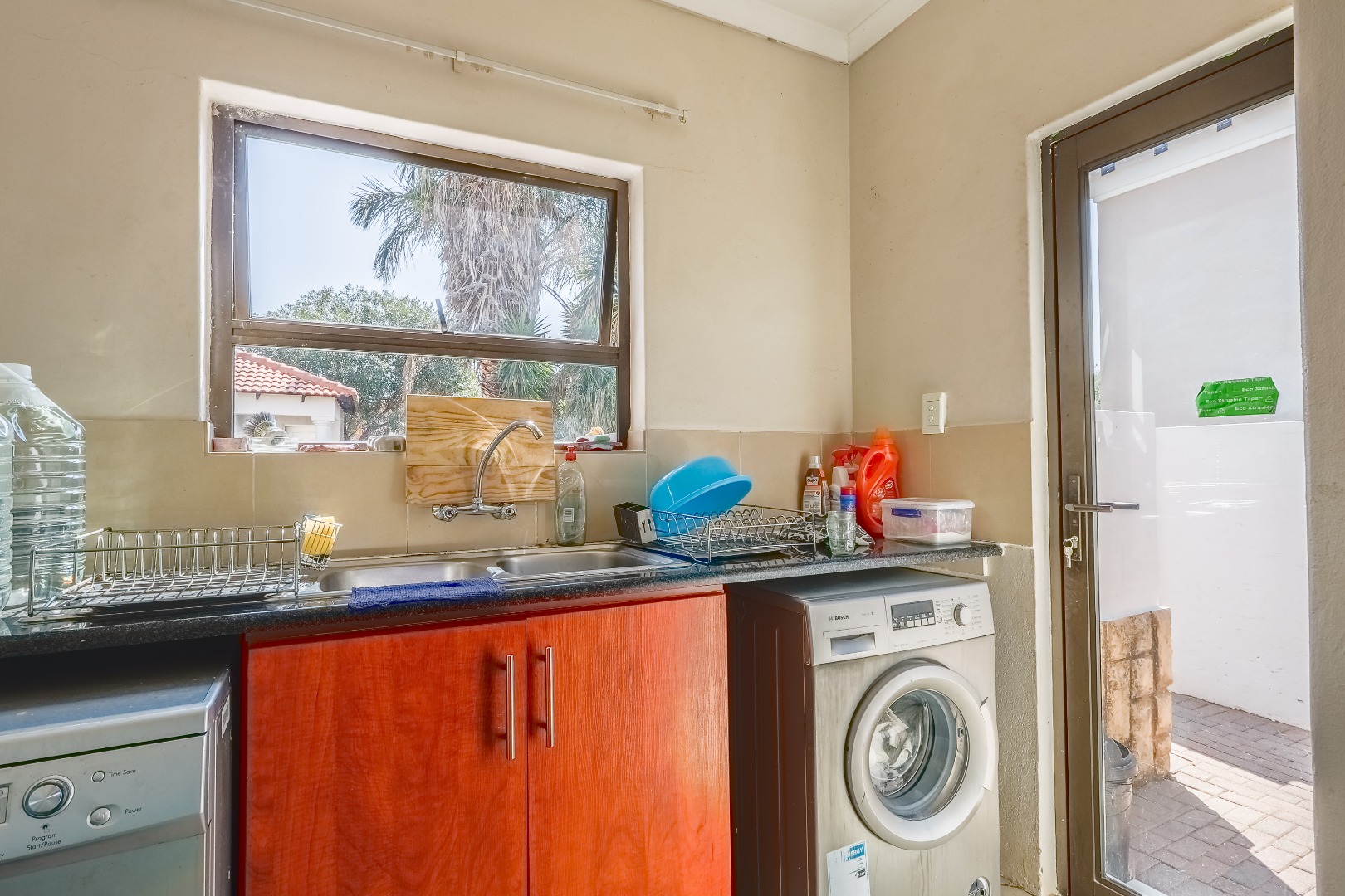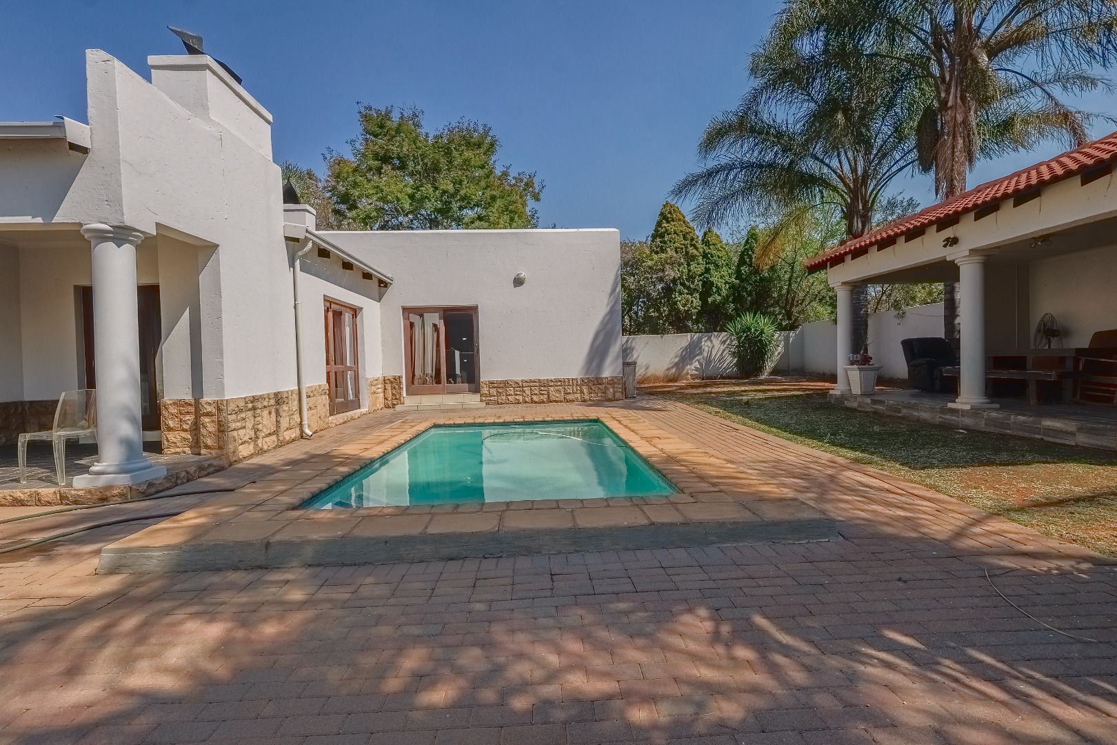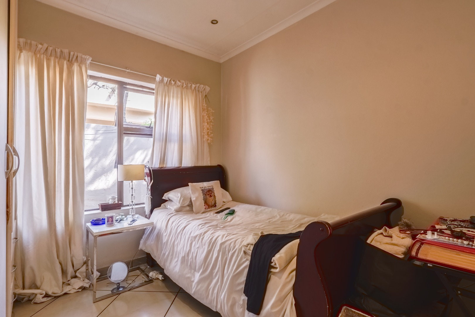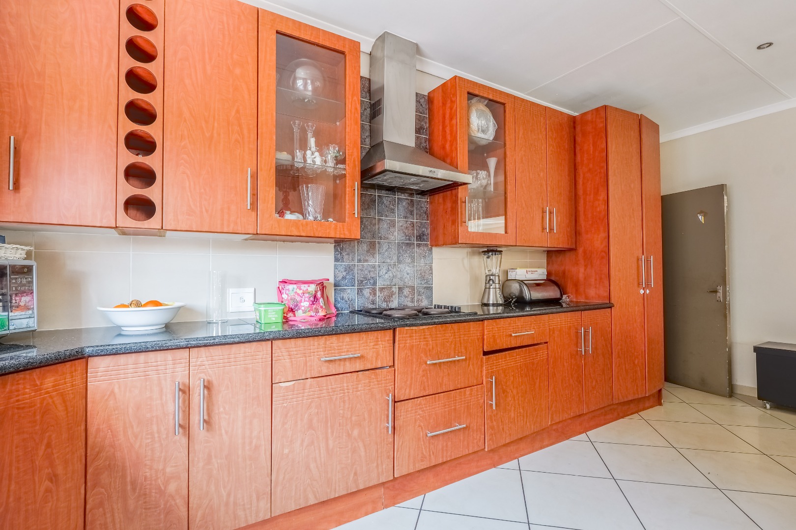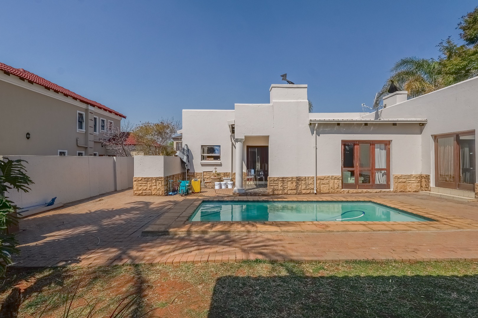 The kitchen is a chef's delight, featuring sleek countertops, an electric hob with an electric oven, and a separate scullery that provides additional storage and space for appliances. The layout is designed for effortless daily living and hosting guests. Outdoor living is a central feature of this property, with a dedicated covered patio and a built-in braai, perfect for year round entertaining. This area overlooks a meticulously maintained, compact garden and a sparkling swimming pool, creating a private retreat for relaxation and fun-filled family weekends. The home’s three bedrooms are a haven of peace and privacy. The main bedroom includes a full en-suite bathroom and generous cupboard space.