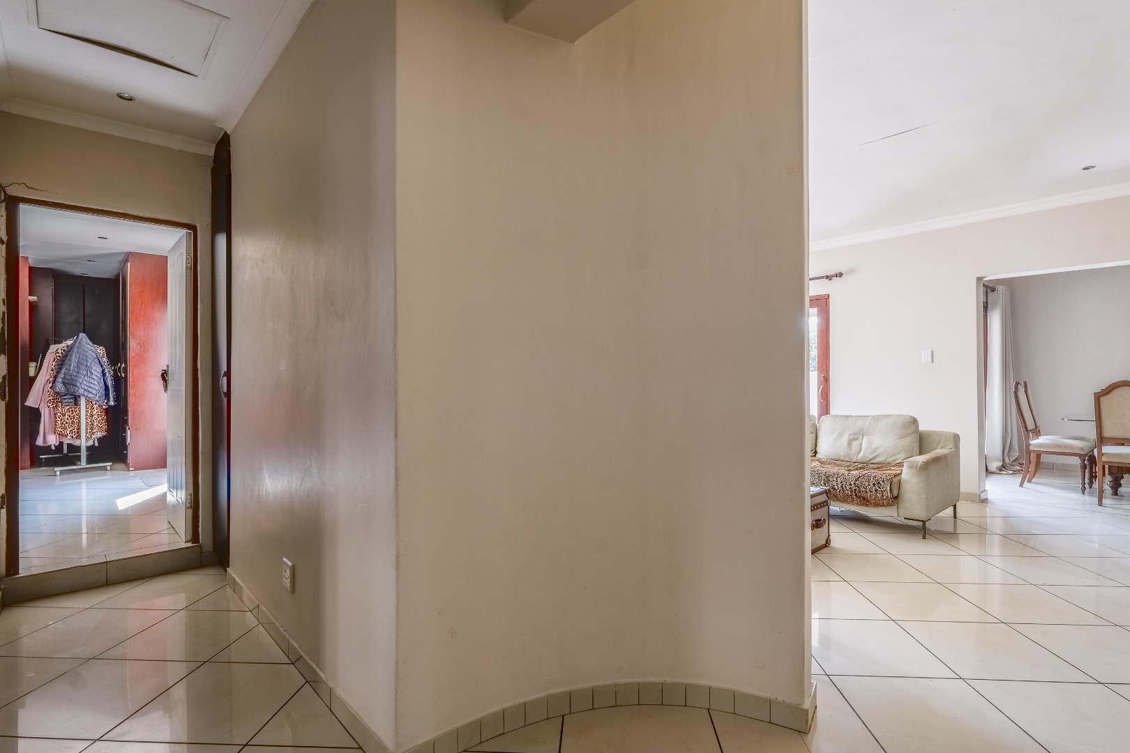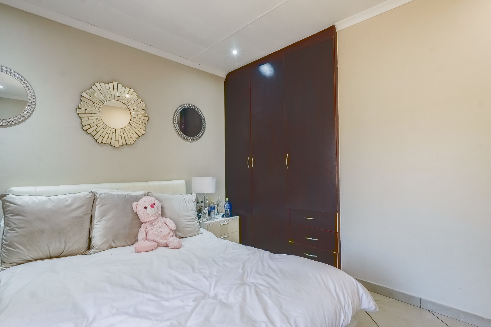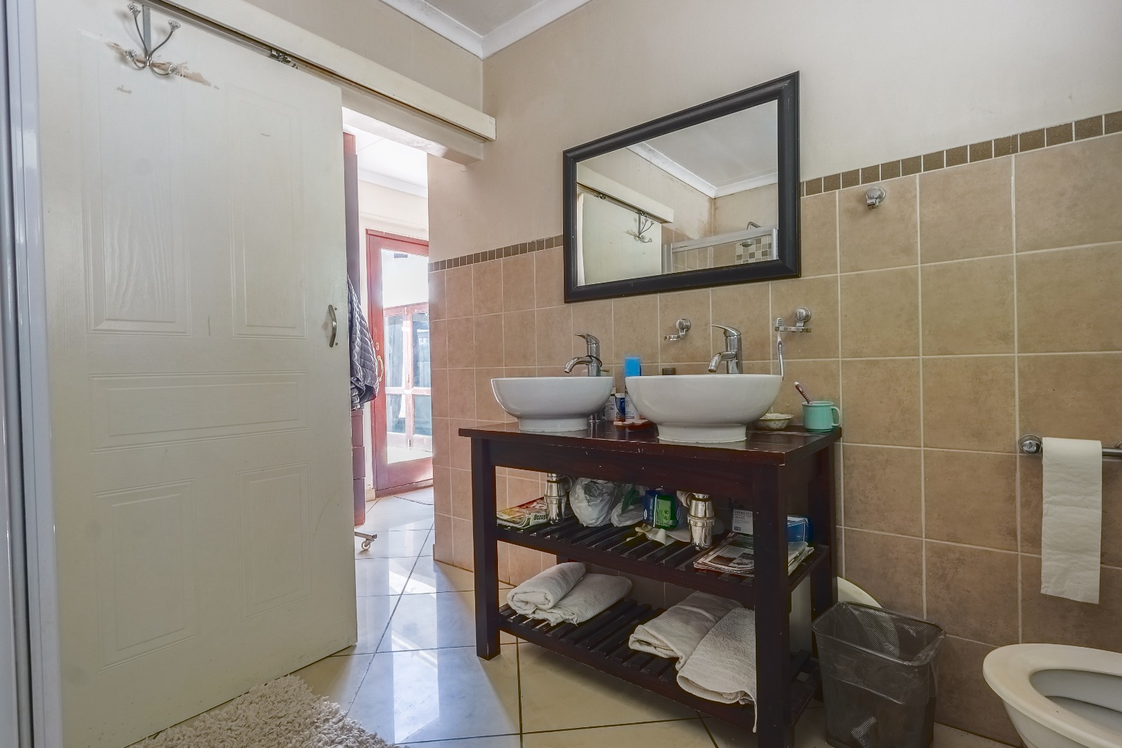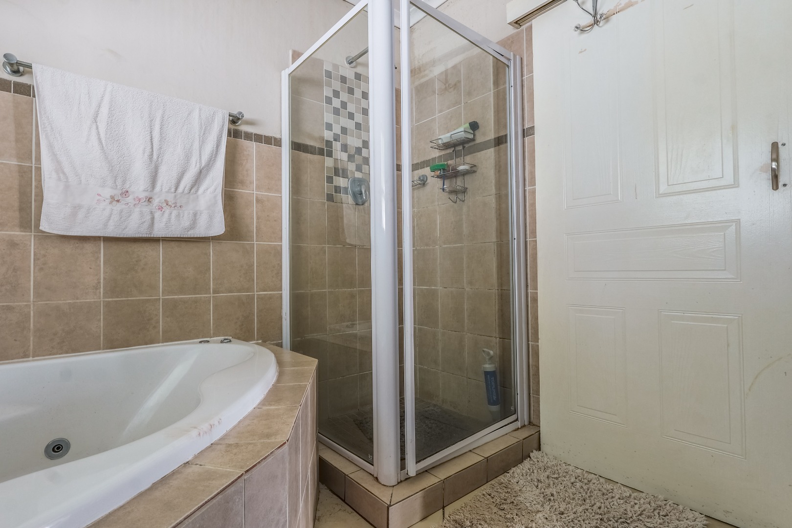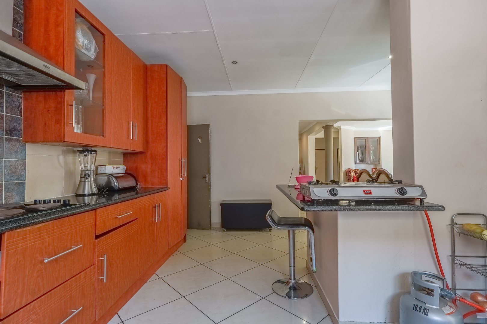 The kitchen is a chef's delight, featuring sleek countertops, an electric hob with an electric oven, and a separate scullery that provides additional storage and space for appliances. The layout is designed for effortless daily living and hosting guests. Outdoor living is a central feature of this property, with a dedicated covered patio and a built-in braai, perfect for year round entertaining. This area overlooks a meticulously maintained, compact garden and a sparkling swimming pool, creating a private retreat for relaxation and fun-filled family weekends. The home’s three bedrooms are a haven of peace and privacy. The main bedroom includes a full en-suite bathroom and generous cupboard space.