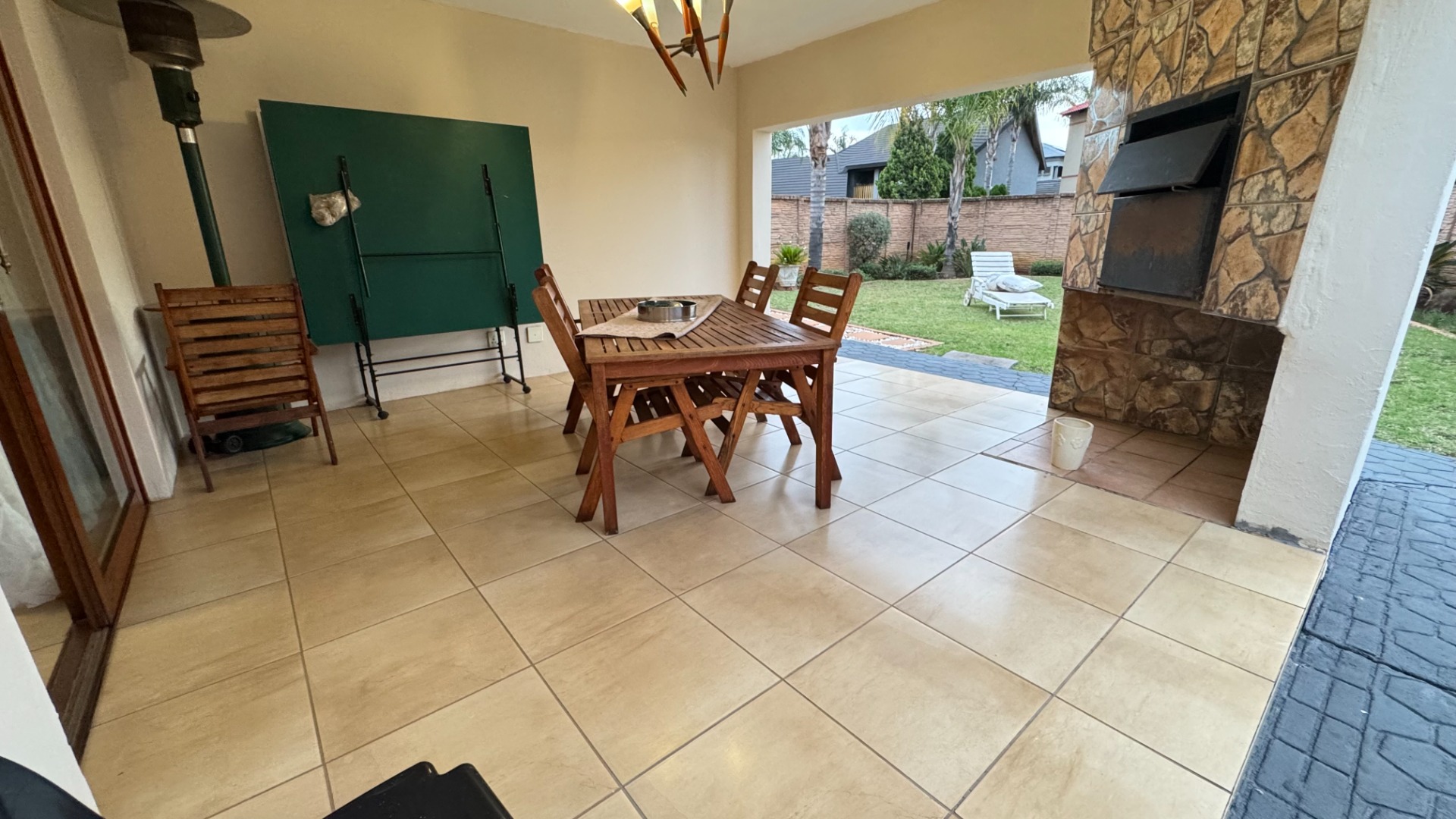 Patio and Garden: Step outside to a covered patio overlooking a large, well-maintained garden, ideal for outdoor gatherings and leisure.