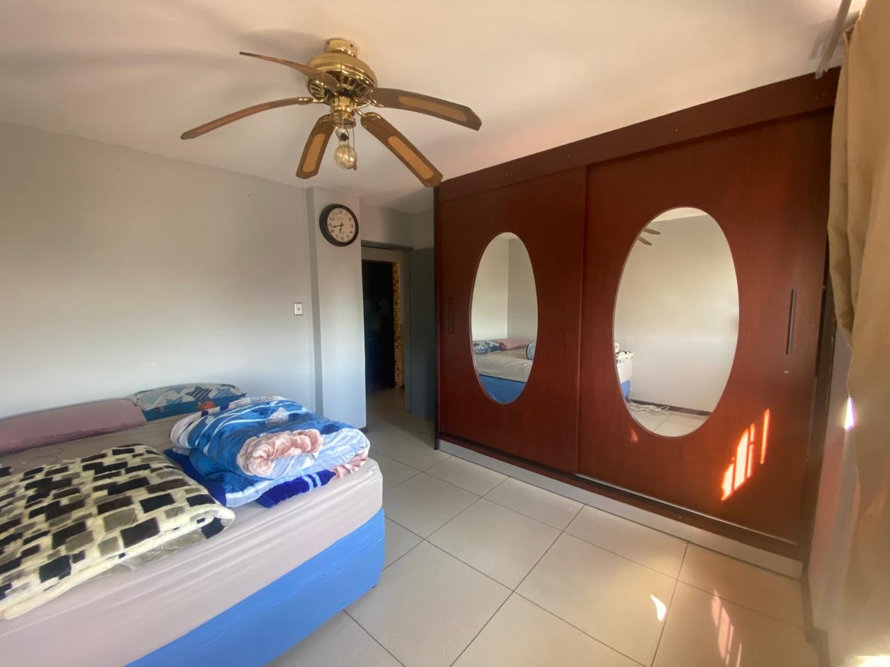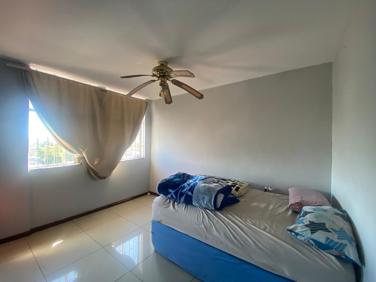 2 Tiled Bedrooms with ceiling fans and built-in cupboards