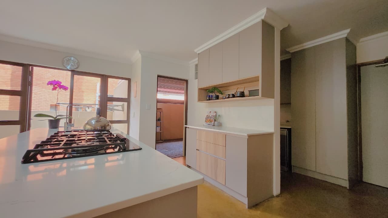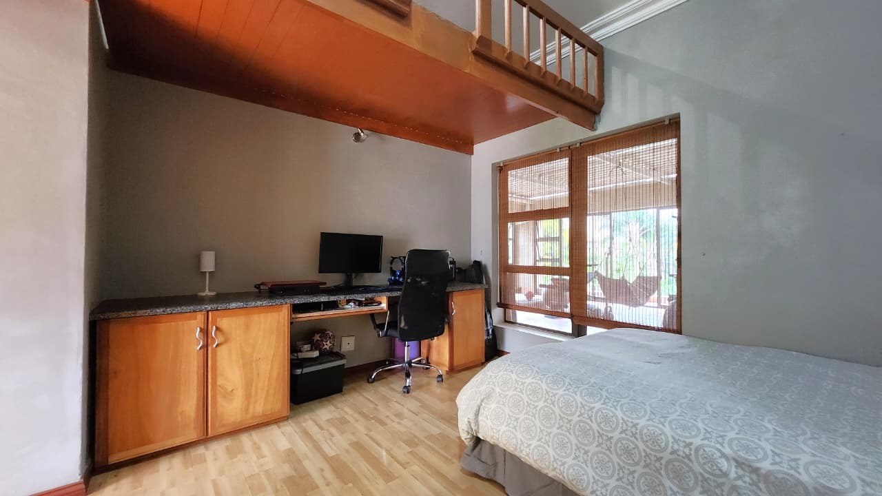 This elegant four-bedroom residence is situated in the prestigious Woodhill Golf Estate, offering a refined and welcoming family environment. The home presents a spacious open-plan layout that connects the living and dining areas to an enclosed veranda with a built-in braai. The downstairs dining area includes a fireplace, creating a warm and comfortable atmosphere that complements the home’s modern flow.