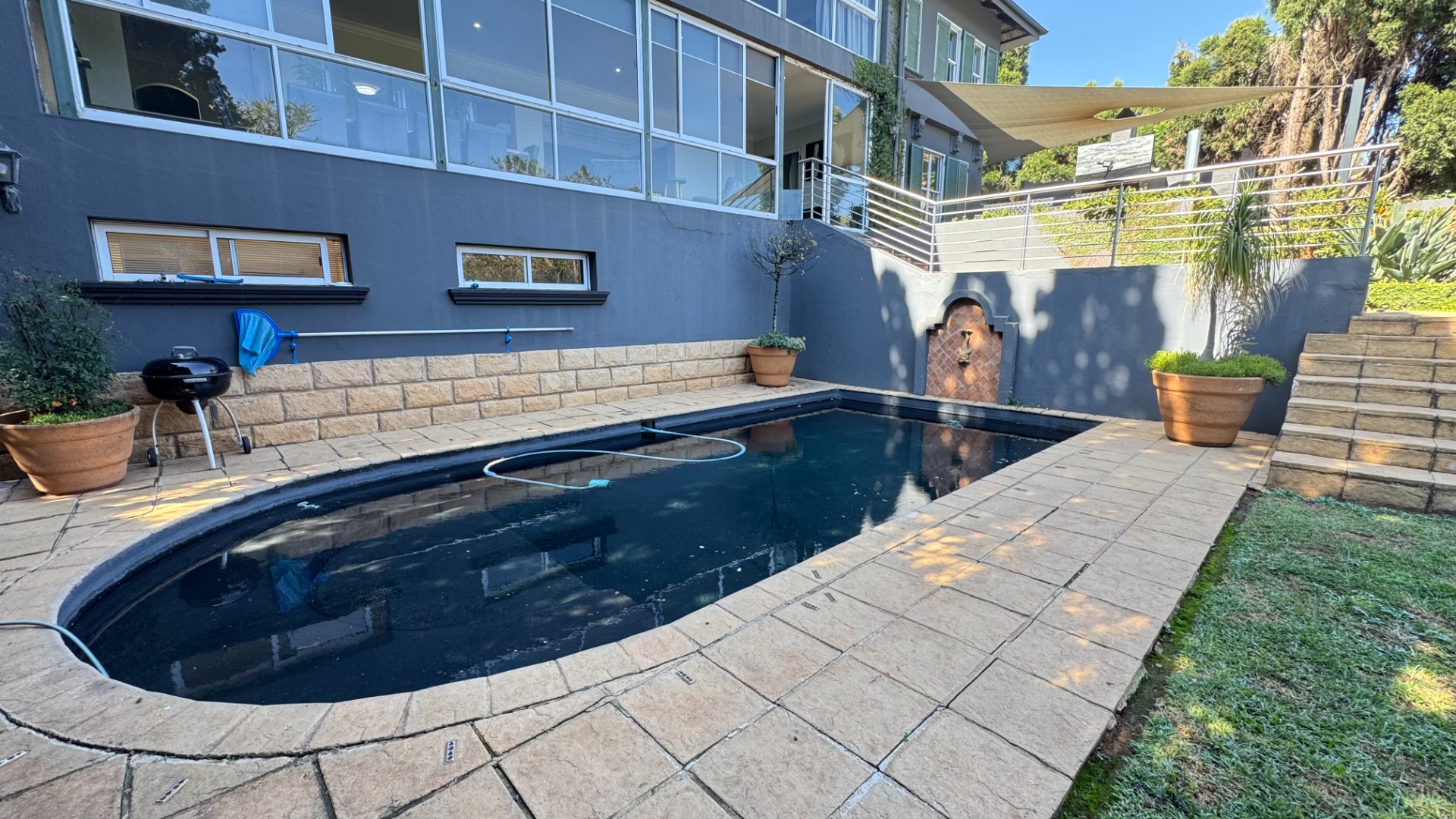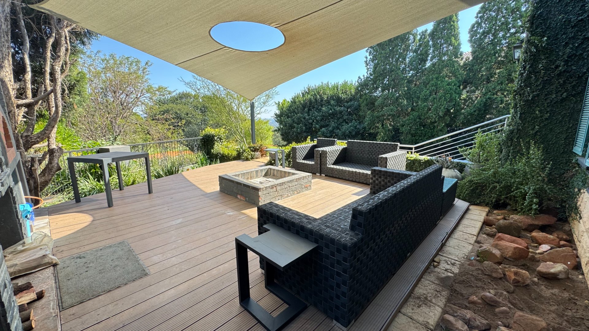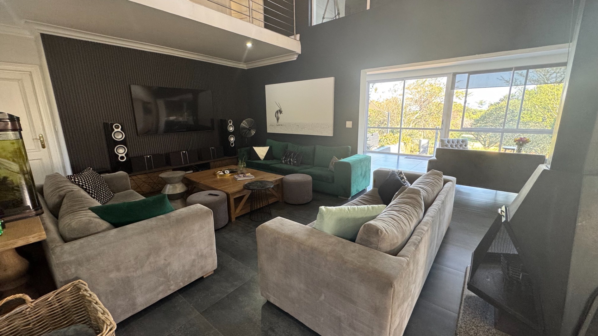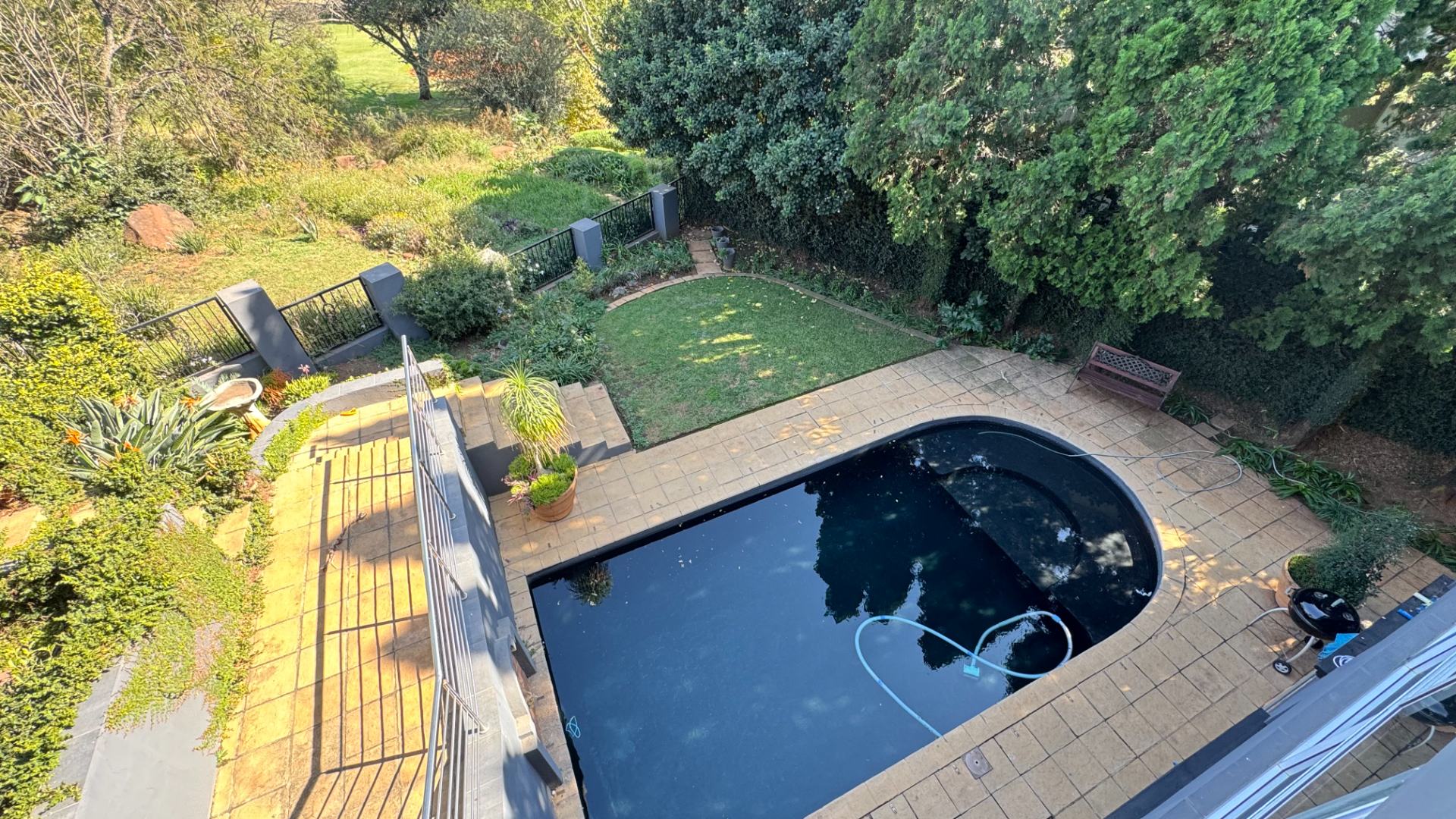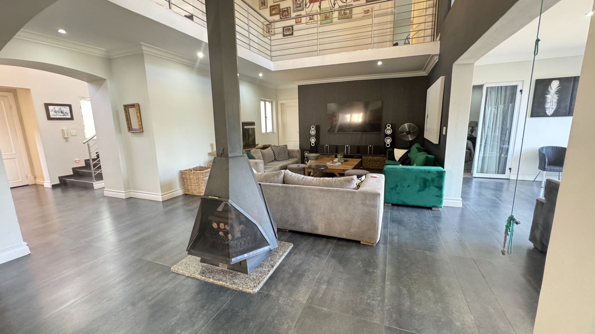 Seamless Indoor-Outdoor Flow: Floor-to-ceiling sliding doors open to an extraordinary outdoor haven featuring a dedicated boma, built-in gas braai, pizza oven, and a sparkling pool set within a lush, landscaped garden.