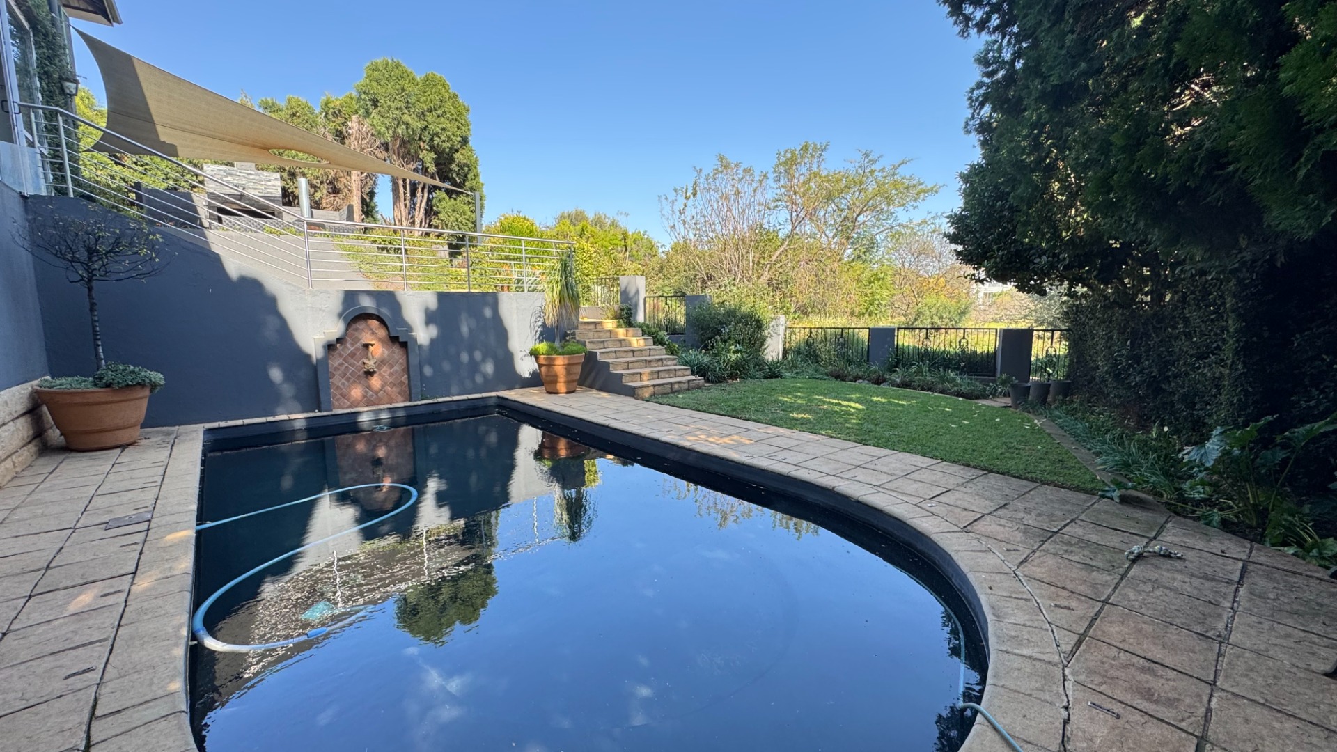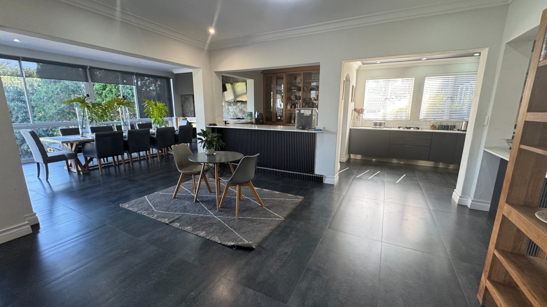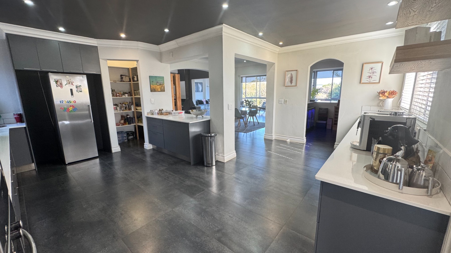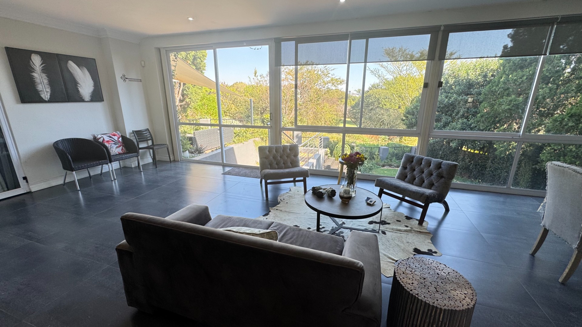 Seamless Indoor-Outdoor Flow: Floor-to-ceiling sliding doors open to an extraordinary outdoor haven featuring a dedicated boma, built-in gas braai, pizza oven, and a sparkling pool set within a lush, landscaped garden.