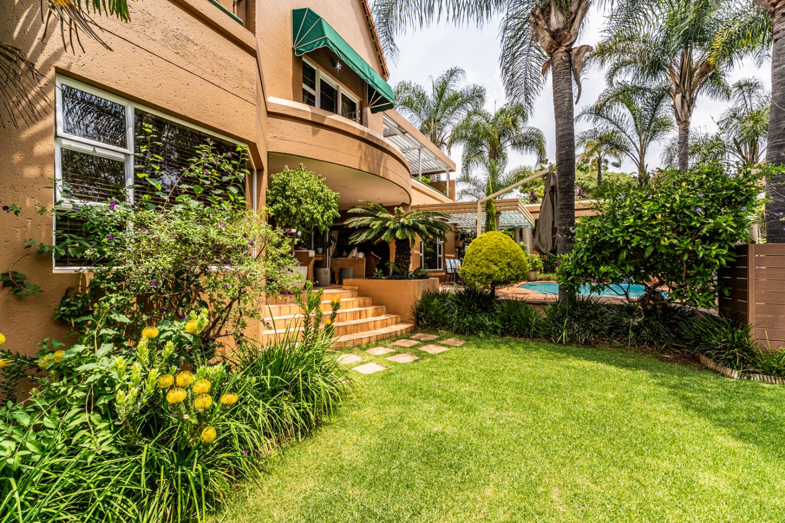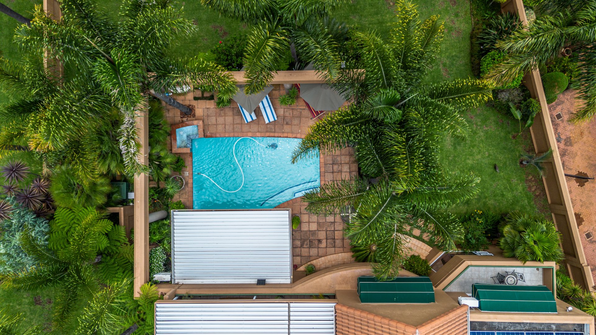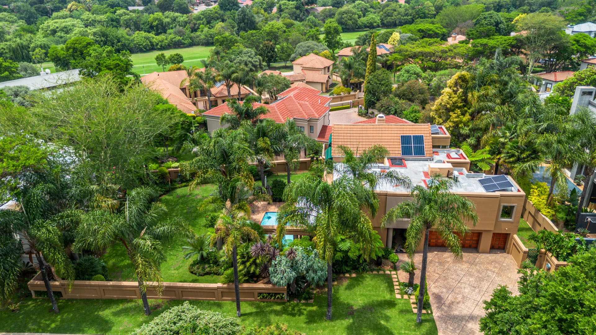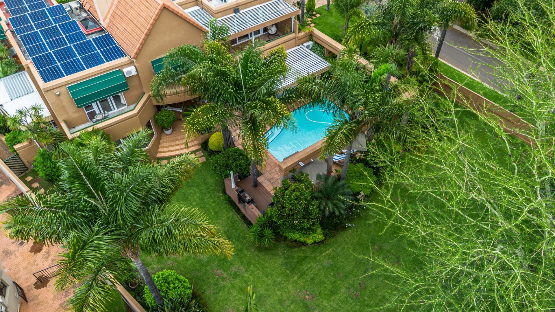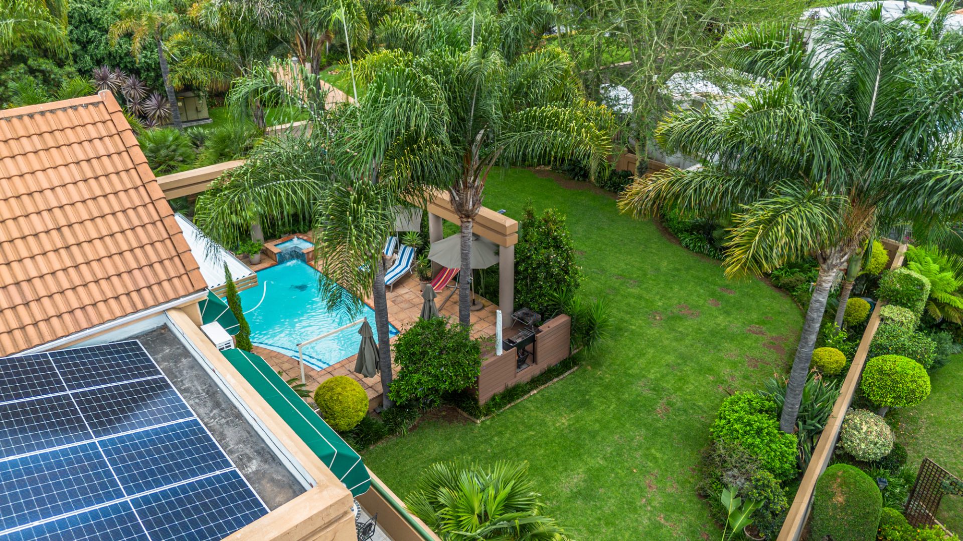A well-appointed home office adds flexibility to the layout and can easily be converted into domestic quarters if desired. The landscaped garden, with its lush greenery and neat pathways, offers a tranquil retreat from the bustle of daily life. Solar power and an efficient irrigation system enhance everyday comfort while maintaining a sense of understated luxury.