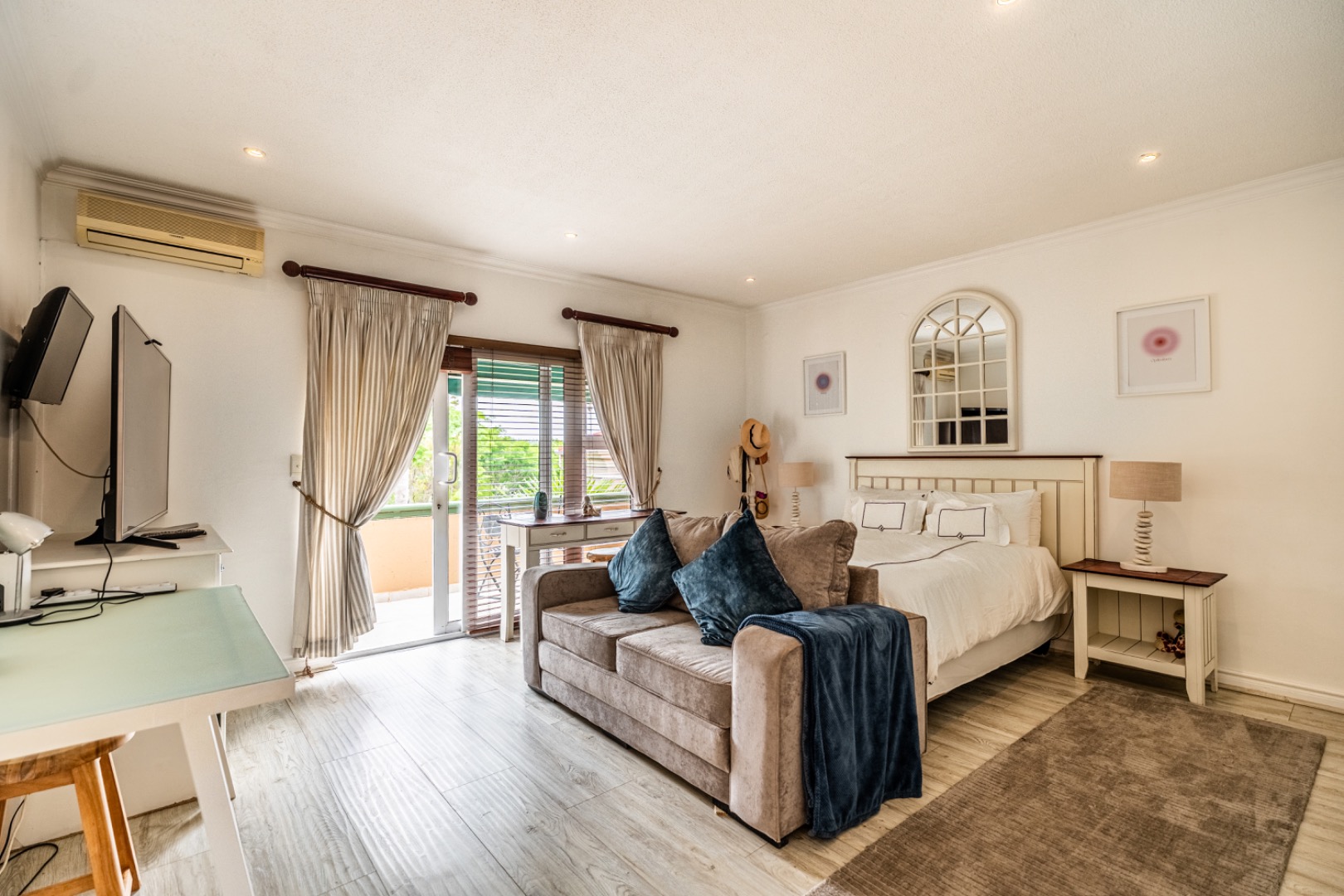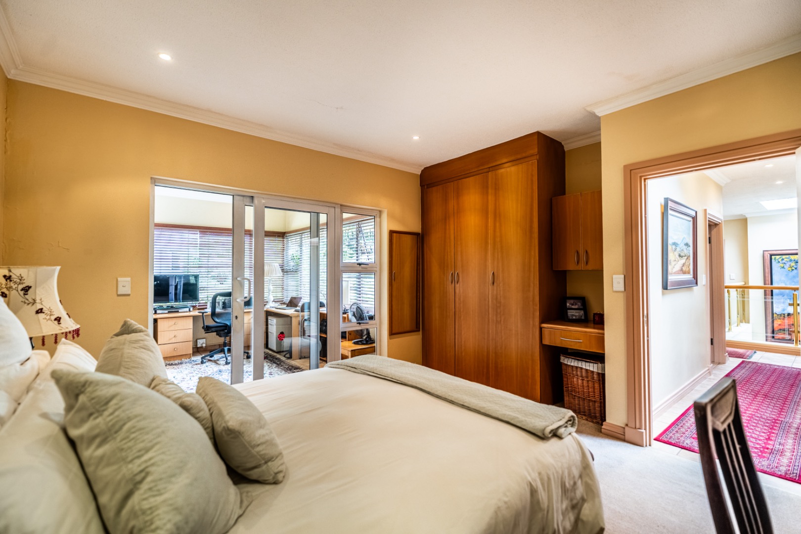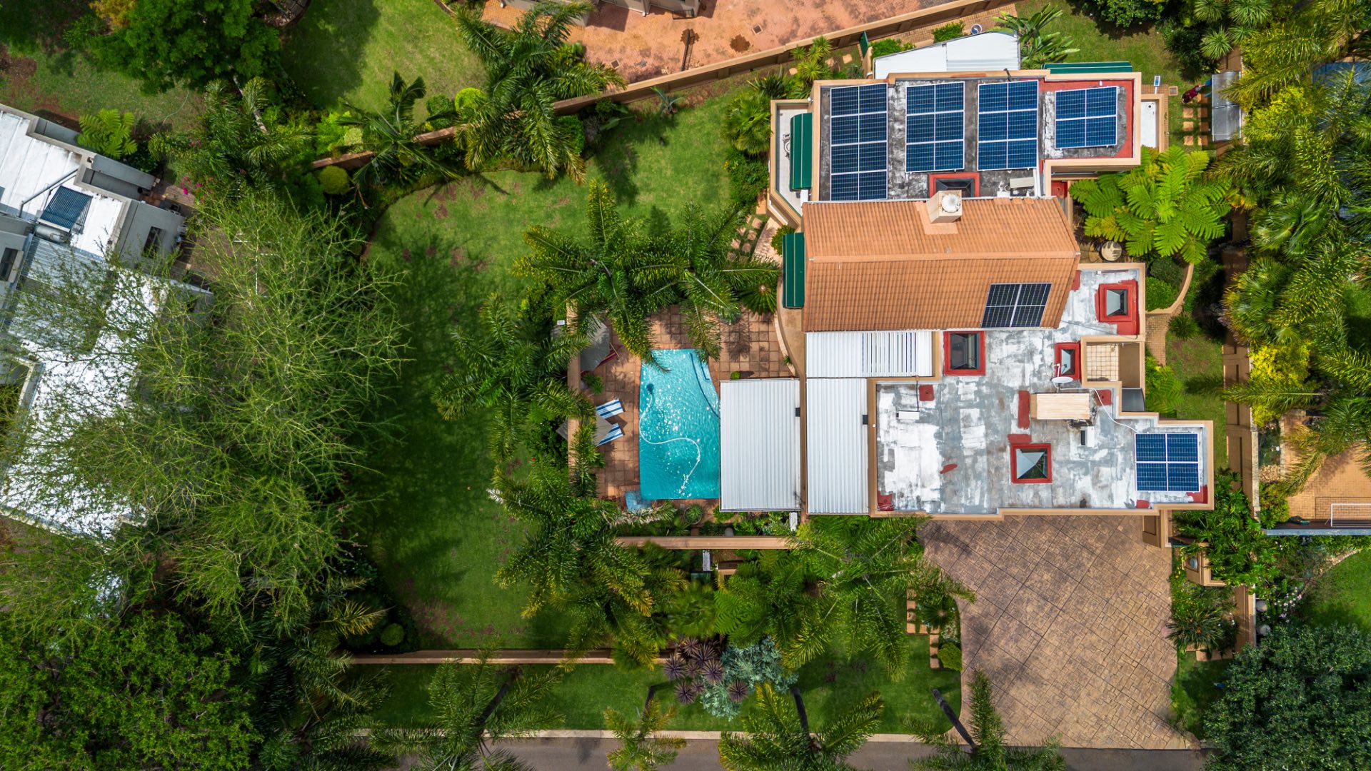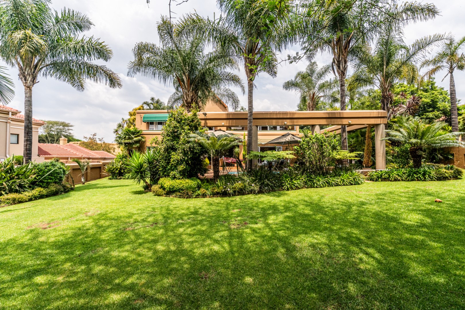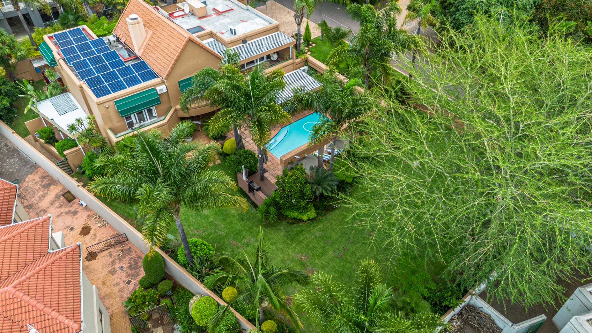 A well-appointed home office adds flexibility to the layout and can easily be converted into domestic quarters if desired. The landscaped garden, with its lush greenery and neat pathways, offers a tranquil retreat from the bustle of daily life. Solar power and an efficient irrigation system enhance everyday comfort while maintaining a sense of understated luxury.