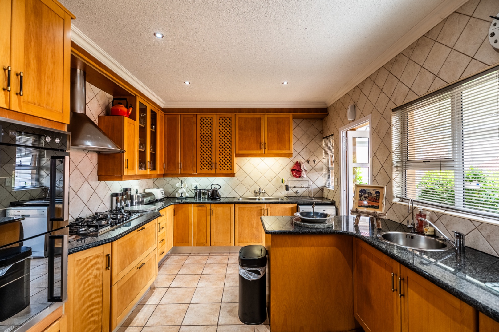 The generous kitchen, offering ample counter space and convenient flow into the dining area, is perfectly suited for both everyday family meals and formal gatherings. Two inviting lounges provide separate areas for peaceful moments or lively conversations, each illuminated by large windows that welcome in natural light.