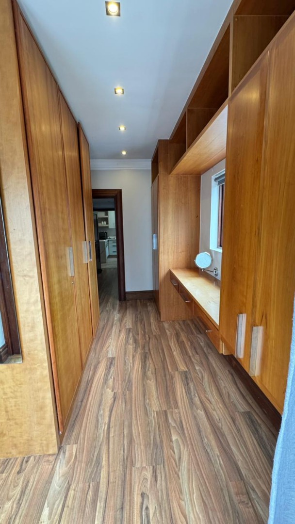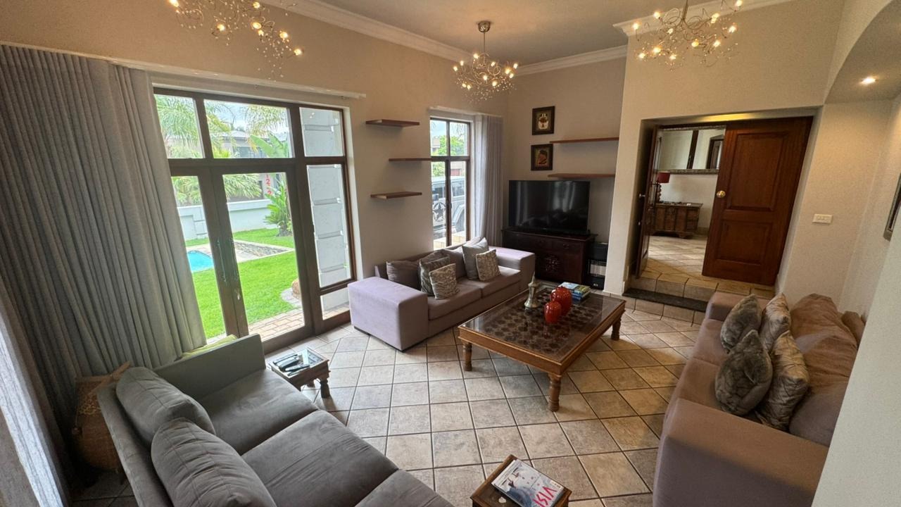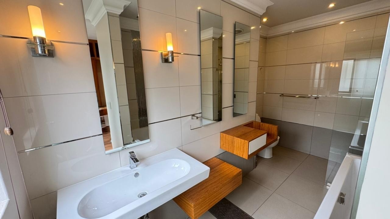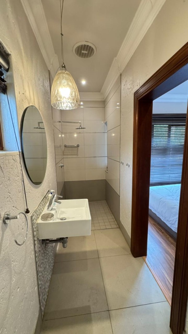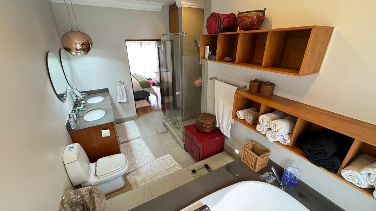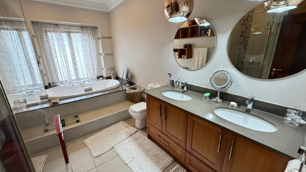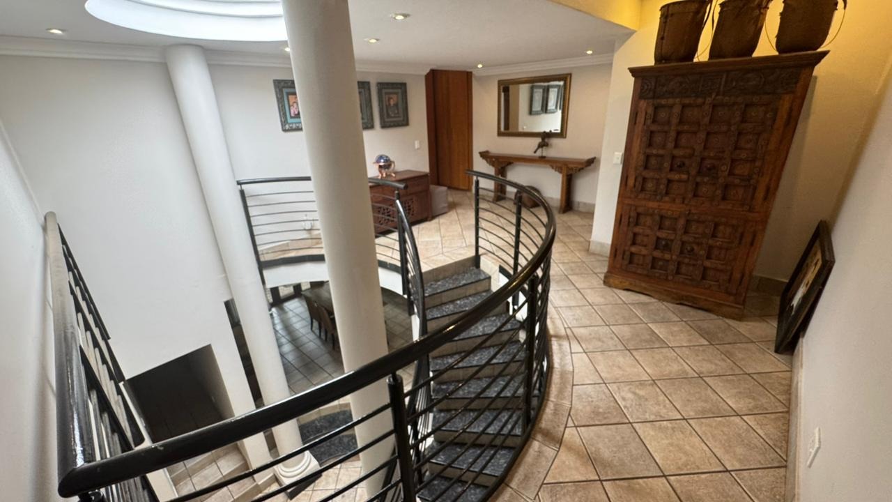 Welcome to your dream home in the prestigious Woodhill Golf Estate, Pretoria! This modern, multi-story residence immediately impresses with its sophisticated grey exterior, triple garage, and expansive paved driveway, all set amidst lush tropical landscaping. It’s more than just a house; it’s a lifestyle, offering the best of secure estate living in a sought-after South African location. Step inside to a grand, spacious entryway featuring high ceilings and a striking circular staircase. The home boasts two generous lounges, two dining rooms, and a comfy family/TV room, ensuring ample space for everyone. The open-plan kitchen is a chef's delight, complete with a large island, sleek marble-look countertops, built-in double ovens, and even a second kitchen for effortless entertaining. You'll find five spacious bedrooms, each with its own en-suite bathroom, providing ultimate privacy and comfort. A dedicated home office/study with built-in cabinetry offers a perfect workspace. Practical features include a guest toilet, staff quarters, a laundry room, and a pantry, making daily living a breeze. Outside, enjoy your private swimming pool, patio, and garden with a built-in braai – perfect for sunny days. As part of this secure golf estate, you'll have access to fantastic amenities like a golf course, gym, squash, and tennis courts. With 24-hour security, a battery inverter, solar panels, water tanks, and fibre connectivity, this home truly blends luxury with peace of mind and modern convenience. Key Features: * 5 Bedrooms, all En-suite * 5 Bathrooms + Guest Toilet * 3 Garages & 2 Parking Spaces * Private Swimming Pool & Patio * Dedicated Home Office/Study * Staff Quarters & Laundry * Battery Inverter & Solar Panels * Fibre Connectivity & Water Tanks * Access to Golf Course, Gym, Tennis & Squash Courts * 24-Hour Security Estate Living