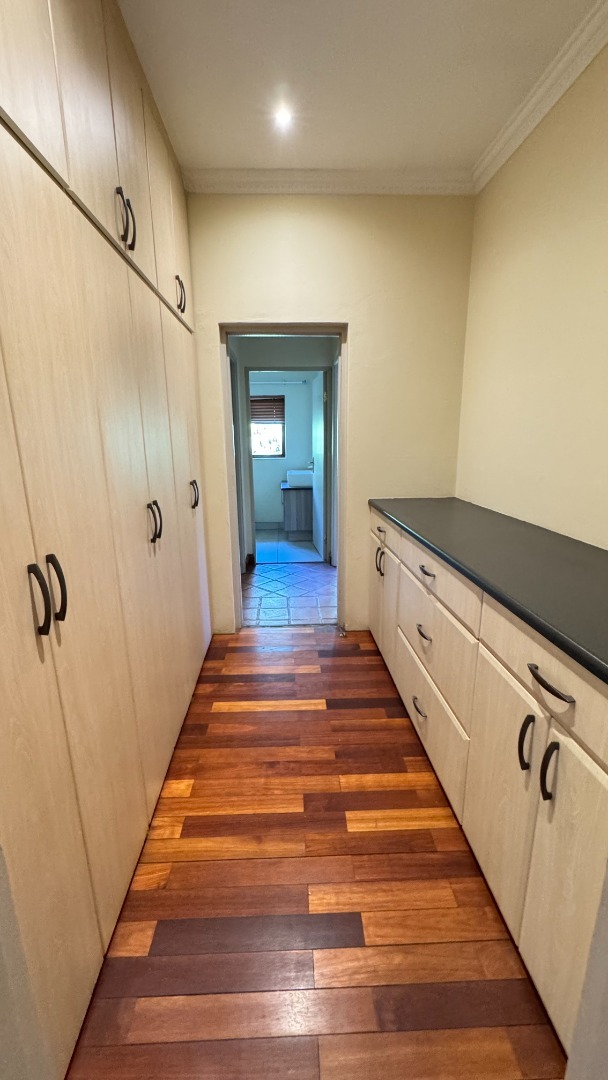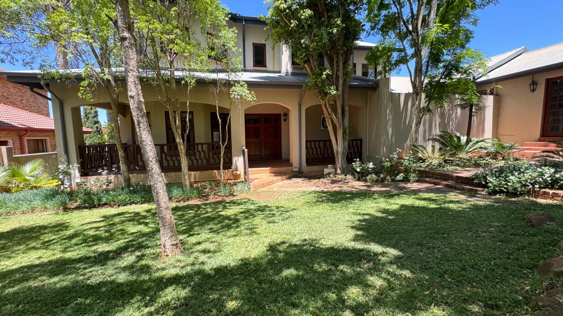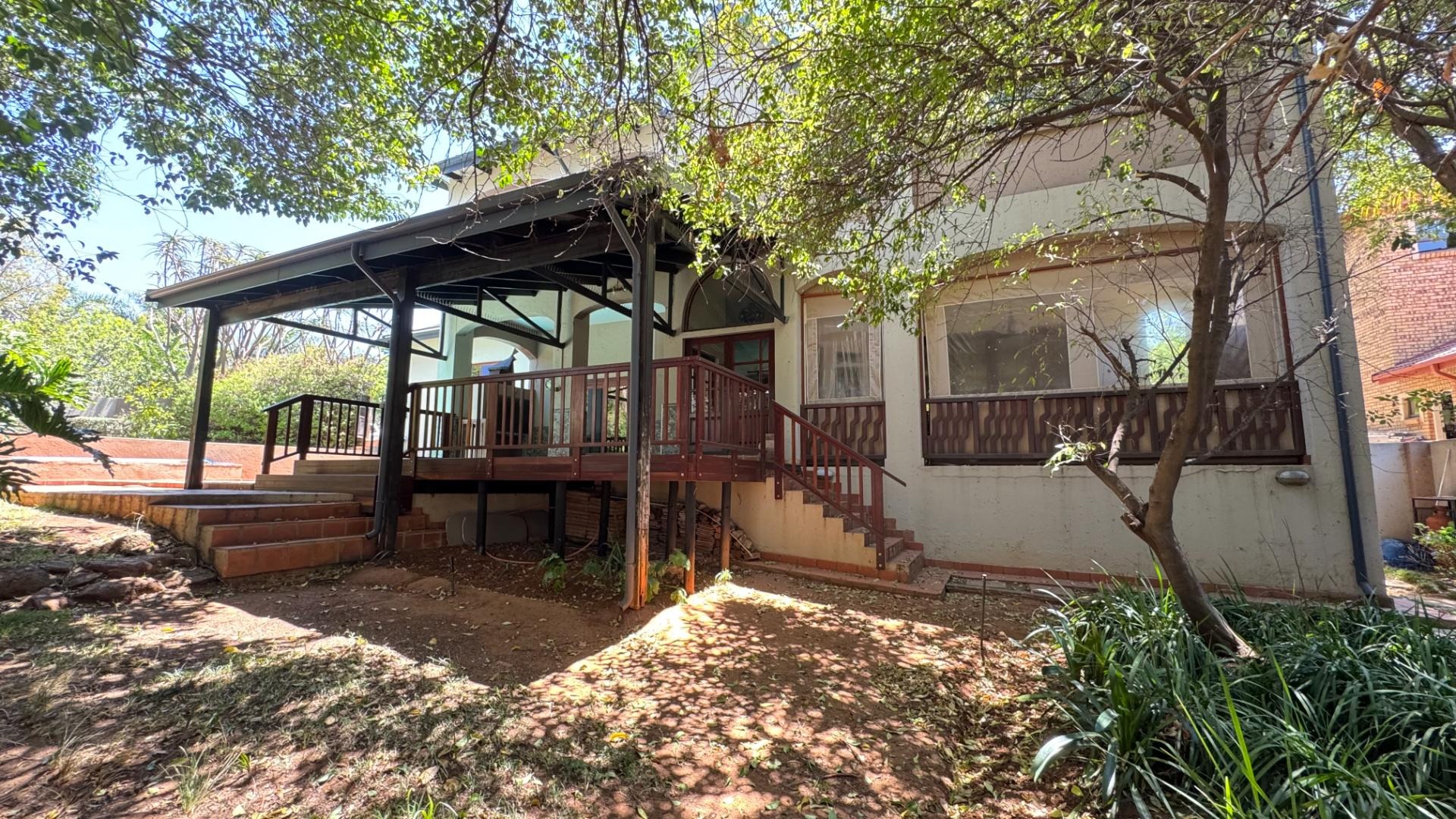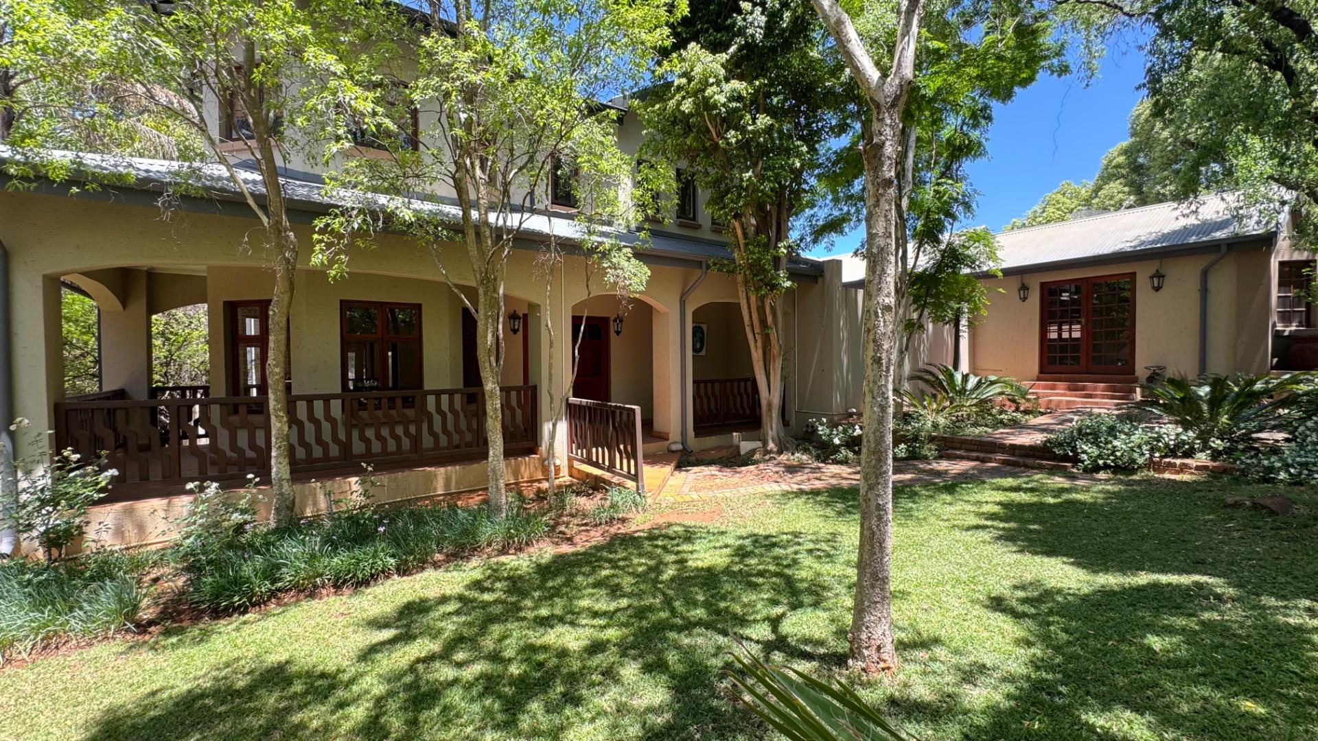 Nestled within the prestigious Woodhill Golf Estate in Pretoria, this distinguished residence offers an exceptional lifestyle opportunity. The property presents an inviting facade with an arched veranda and a double wooden entrance, complemented by a meticulously maintained front lawn and mature trees, ensuring significant kerb appeal. Spanning an expansive 524 square metres on a 1040 square metre erf, this home is designed for sophisticated living. Upon entry, the interior reveals spacious living areas featuring polished hardwood floors and abundant natural light, creating an elegant and welcoming ambiance. A traditional fireplace adds character, while large glass sliding doors seamlessly connect the indoors with the outdoor entertainment spaces. The modern kitchen is a culinary delight, equipped with two-tone cabinetry, a central island with an integrated sink, a gas stove, oven, and ample counter space, all designed for both functionality and aesthetic appeal. An open-plan layout enhances the flow between key living zones. The residence comprises five well-appointed bedrooms and three and a half bathrooms, including two en-suite facilities and a convenient guest toilet. Additional interior amenities include a dedicated study, a family TV room, and a pantry, catering to diverse household needs. Furthermore, the property benefits from staff quarters and a separate flatlet, offering versatile accommodation options. Outdoor living is paramount, with a sparkling private swimming pool, a spacious covered patio, and an expansive wooden deck. This area is perfect for entertaining, featuring a built-in braai and surrounded by a lush, private garden. Residents also gain access to the exclusive amenities of the golf estate, including a gym, golf course, clubhouse, squash courts, and tennis courts, promoting an active and engaging lifestyle. Security is assured within this 24-hour security estate, featuring a security post, access gate, and security gate. The property is also wheelchair-friendly and boasts fibre connectivity, ensuring modern convenience and peace of mind. Key Features: * Five Bedrooms, 3.5 Bathrooms (2 En-suite) * Modern Kitchen with Gas Stove and Island * Spacious Living Areas with Fireplace and Hardwood Floors * Private Swimming Pool, Covered Patio, and Built-in Braai * Expansive Wooden Deck and Lush Garden * Dedicated Study, Family TV Room, and Pantry * Staff Quarters and Separate Flatlet * Double Garage and Two Parking Spaces * Access to Golf Estate Amenities (Gym, Golf Course, Courts, Clubhouse) * 24-Hour Security Estate with Fibre Connectivity