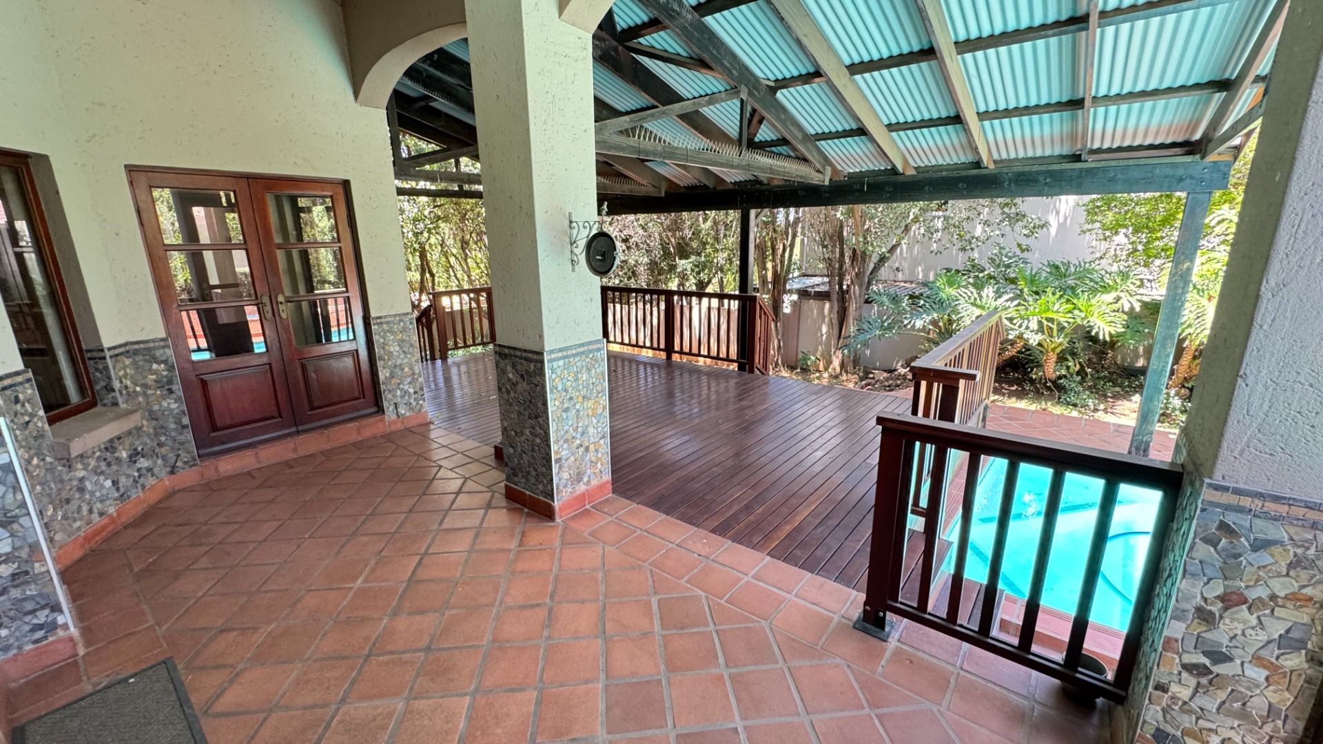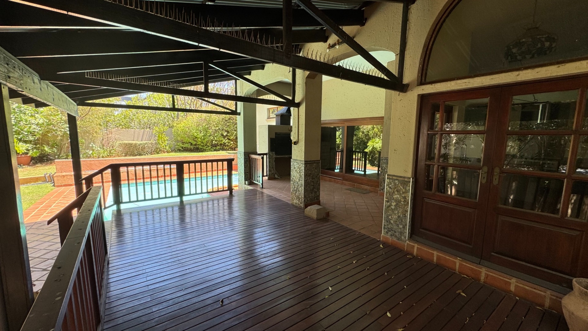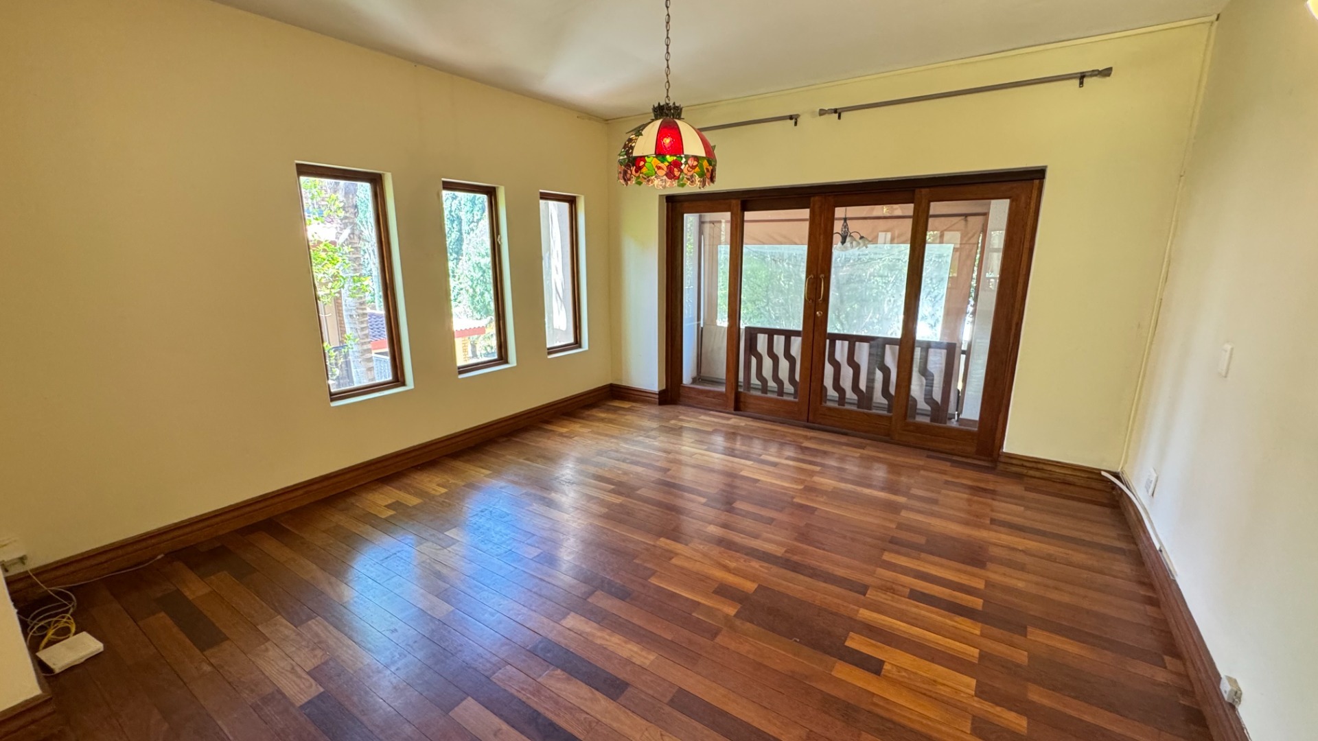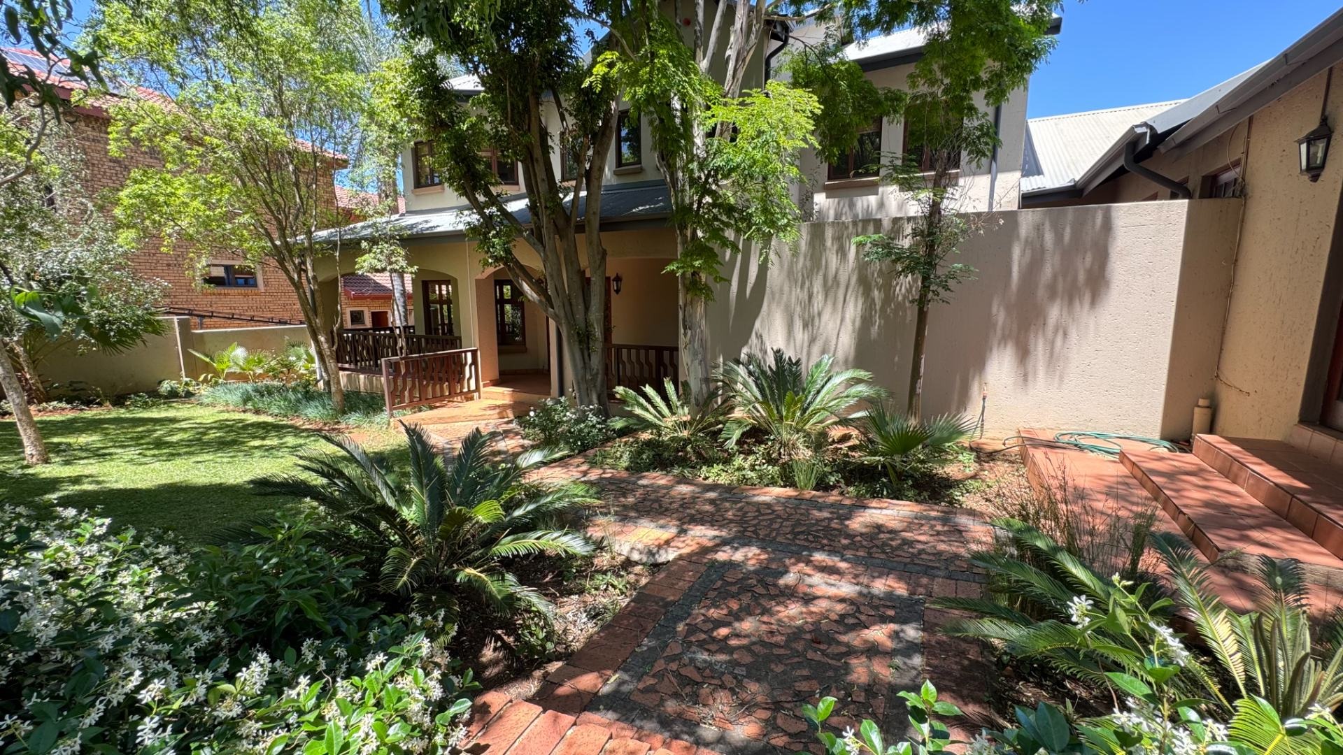 Nestled within the prestigious Woodhill Golf Estate in Pretoria, this distinguished residence offers an exceptional lifestyle opportunity. The property presents an inviting facade with an arched veranda and a double wooden entrance, complemented by a meticulously maintained front lawn and mature trees, ensuring significant kerb appeal. Spanning an expansive 524 square metres on a 1040 square metre erf, this home is designed for sophisticated living. Upon entry, the interior reveals spacious living areas featuring polished hardwood floors and abundant natural light, creating an elegant and welcoming ambiance. A traditional fireplace adds character, while large glass sliding doors seamlessly connect the indoors with the outdoor entertainment spaces. The modern kitchen is a culinary delight, equipped with two-tone cabinetry, a central island with an integrated sink, a gas stove, oven, and ample counter space, all designed for both functionality and aesthetic appeal. An open-plan layout enhances the flow between key living zones. The residence comprises five well-appointed bedrooms and three and a half bathrooms, including two en-suite facilities and a convenient guest toilet. Additional interior amenities include a dedicated study, a family TV room, and a pantry, catering to diverse household needs. Furthermore, the property benefits from staff quarters and a separate flatlet, offering versatile accommodation options. Outdoor living is paramount, with a sparkling private swimming pool, a spacious covered patio, and an expansive wooden deck. This area is perfect for entertaining, featuring a built-in braai and surrounded by a lush, private garden. Residents also gain access to the exclusive amenities of the golf estate, including a gym, golf course, clubhouse, squash courts, and tennis courts, promoting an active and engaging lifestyle. Security is assured within this 24-hour security estate, featuring a security post, access gate, and security gate. The property is also wheelchair-friendly and boasts fibre connectivity, ensuring modern convenience and peace of mind. Key Features: * Five Bedrooms, 3.5 Bathrooms (2 En-suite) * Modern Kitchen with Gas Stove and Island * Spacious Living Areas with Fireplace and Hardwood Floors * Private Swimming Pool, Covered Patio, and Built-in Braai * Expansive Wooden Deck and Lush Garden * Dedicated Study, Family TV Room, and Pantry * Staff Quarters and Separate Flatlet * Double Garage and Two Parking Spaces * Access to Golf Estate Amenities (Gym, Golf Course, Courts, Clubhouse) * 24-Hour Security Estate with Fibre Connectivity