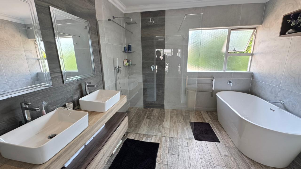 Looking for a fantastic family home in a secure estate? This lovely 4-bedroom, 3.5-bathroom house in Woodlands Lifestyle Estate, Pretoria, is just the spot! It’s a modern two-story home with a neutral exterior that gives off a welcoming vibe right from the start. With a generous floor size of 357 sqm on a 684 sqm erf, there’s plenty of space for everyone to spread out and enjoy. Step inside and you’ll find bright, airy living spaces with an open-plan feel, perfect for everyday life and entertaining. There are three comfy lounges and a dedicated dining room, all benefiting from great natural light and seamless indoor-outdoor flow thanks to those sliding doors. The modern kitchen is ready for all your culinary adventures, making meal prep a breeze. Upstairs, you’ll discover four spacious bedrooms, including a main en-suite that feels like a private retreat. The bathrooms are super modern, featuring freestanding tubs, walk-in showers with dual showerheads, and stylish dual vanities – perfect for unwinding after a long day. Plus, there's a handy guest toilet downstairs. The outdoor area is a real gem, designed for relaxation and fun. You’ve got a beautifully maintained garden, a covered patio for those sunny South African days, and a refreshing pool that’s just right for a dip. The deck and pergola create an inviting space for outdoor lounging and entertaining friends and family. With a double garage and three parking spaces, there's ample room for your vehicles. Living in Woodlands Lifestyle Estate means enjoying peace of mind with 24-hour security, access gates, and burglar bars. The estate also boasts a clubhouse, and the home is fibre-ready, keeping you connected. Pets are welcome too, so your furry friends can enjoy the garden as much as you do!