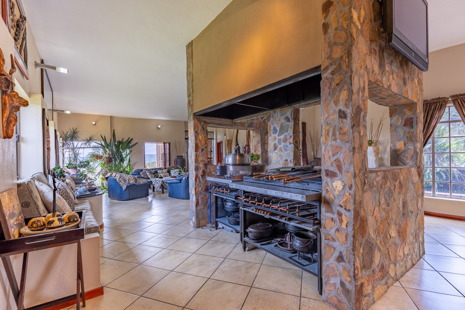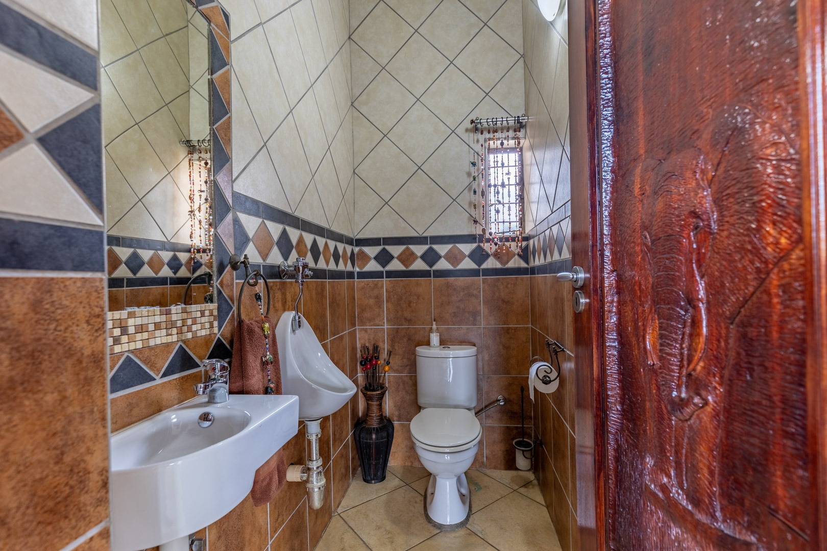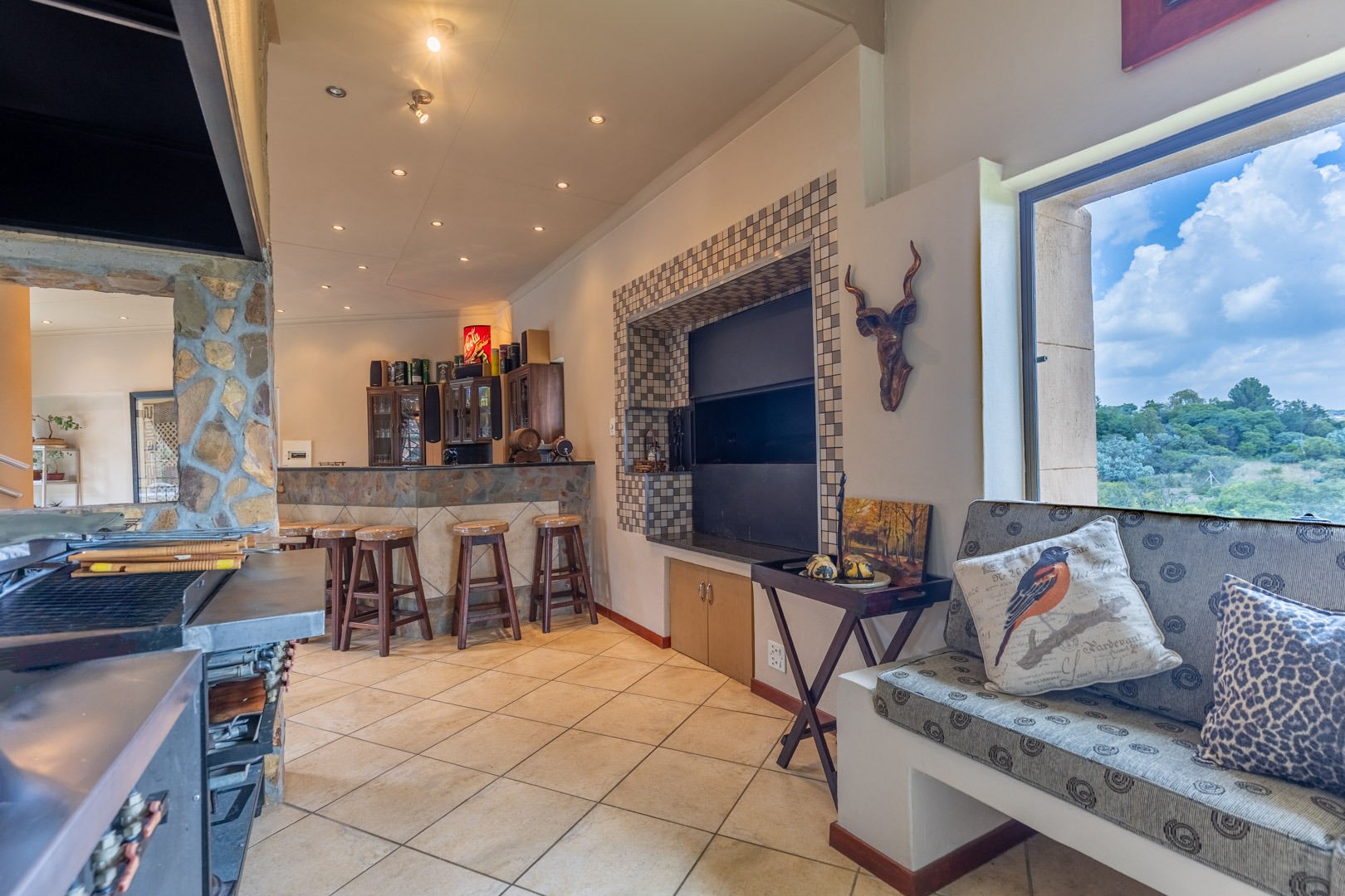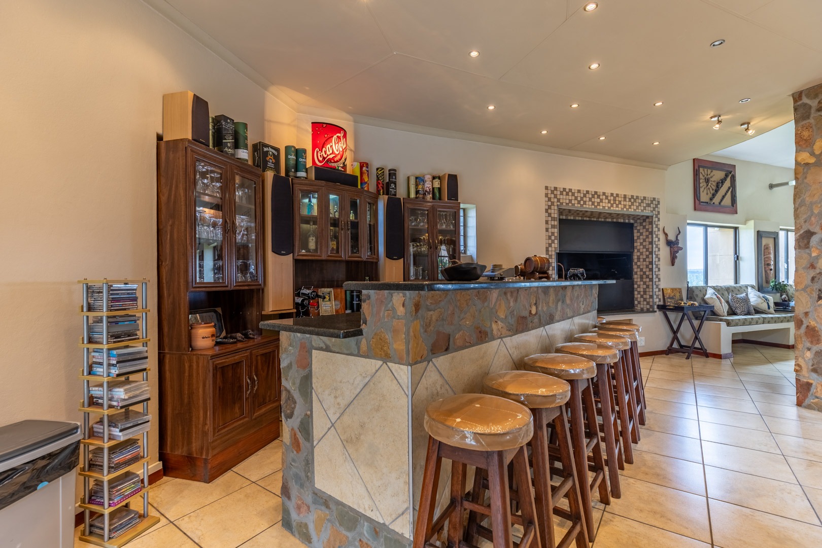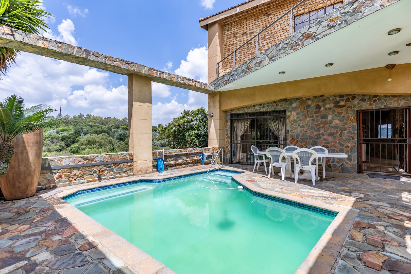 Discover an exceptional residential offering in Zwavelpoort AH, Pretoria, presenting a sprawling 4.55-hectare property with a substantial 670 sqm floor size. This impressive home features an inviting entrance hall leading to two spacious lounges and a dedicated dining room, all designed with an open-plan flow and enhanced by sliding doors. The well-appointed kitchen includes a scullery and pantry, catering to all culinary needs. The residence boasts five generously sized bedrooms, complemented by 5.5 bathrooms, including five luxurious ensuites and a convenient guest toilet. Comfort is assured throughout with air conditioning in key areas. Additional practical spaces include a study, staff quarters, a dedicated laundry room, and ample storage solutions, alongside a versatile flatlet. Outdoor living is a highlight, featuring a refreshing swimming pool, a welcoming patio, and a lapa perfect for entertaining. Enjoy picturesque scenic views from various vantage points. The property is equipped with a built-in braai, a charming garden, and a Wendy house. Parking is abundant with four garages and four additional parking spaces, all accessible via a paved driveway. Security is paramount within this gated community, featuring an access gate, electric fencing, CCTV surveillance, an intercom system, burglar bars, and a security gate. The property also embraces sustainability with solar panels, a borehole, and an irrigation system, ensuring efficient resource management. This eco-estate, functioning as a game/stock farm with a nature reserve lifestyle, offers a unique blend of rural tranquility and modern convenience. Key Features: * 5 Bedrooms, 5.5 Bathrooms (5 Ensuites) * 4.55 Hectare Erf, 670 sqm Floor Size * 2 Lounges, Dining Room, Study * Swimming Pool, Patio, Lapa, Built-in Braai * 4 Garages, 4 Parking Spaces * Gated Community with Electric Fencing & CCTV * Solar Panels, Borehole, Irrigation System * Staff Quarters, Laundry, Storage