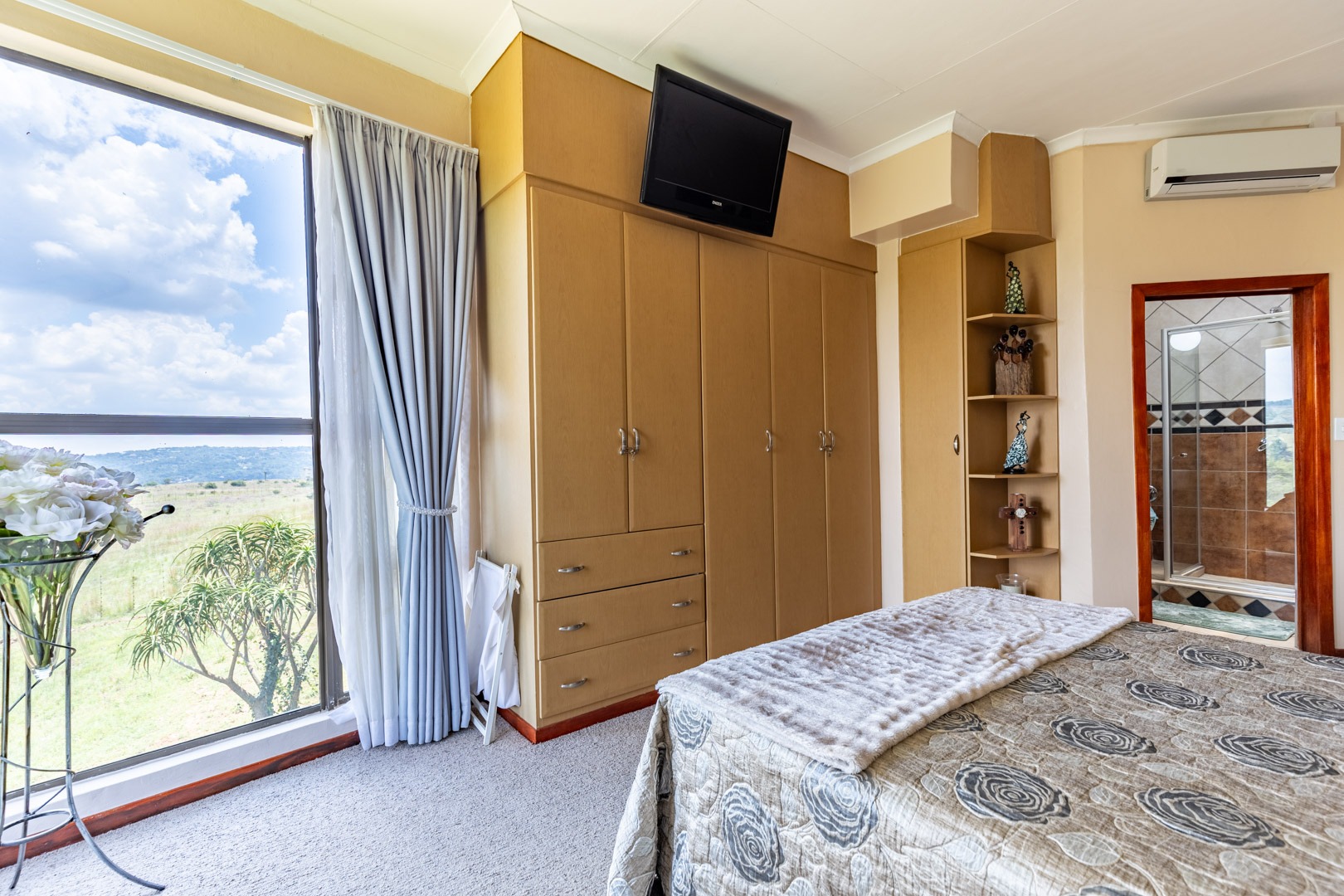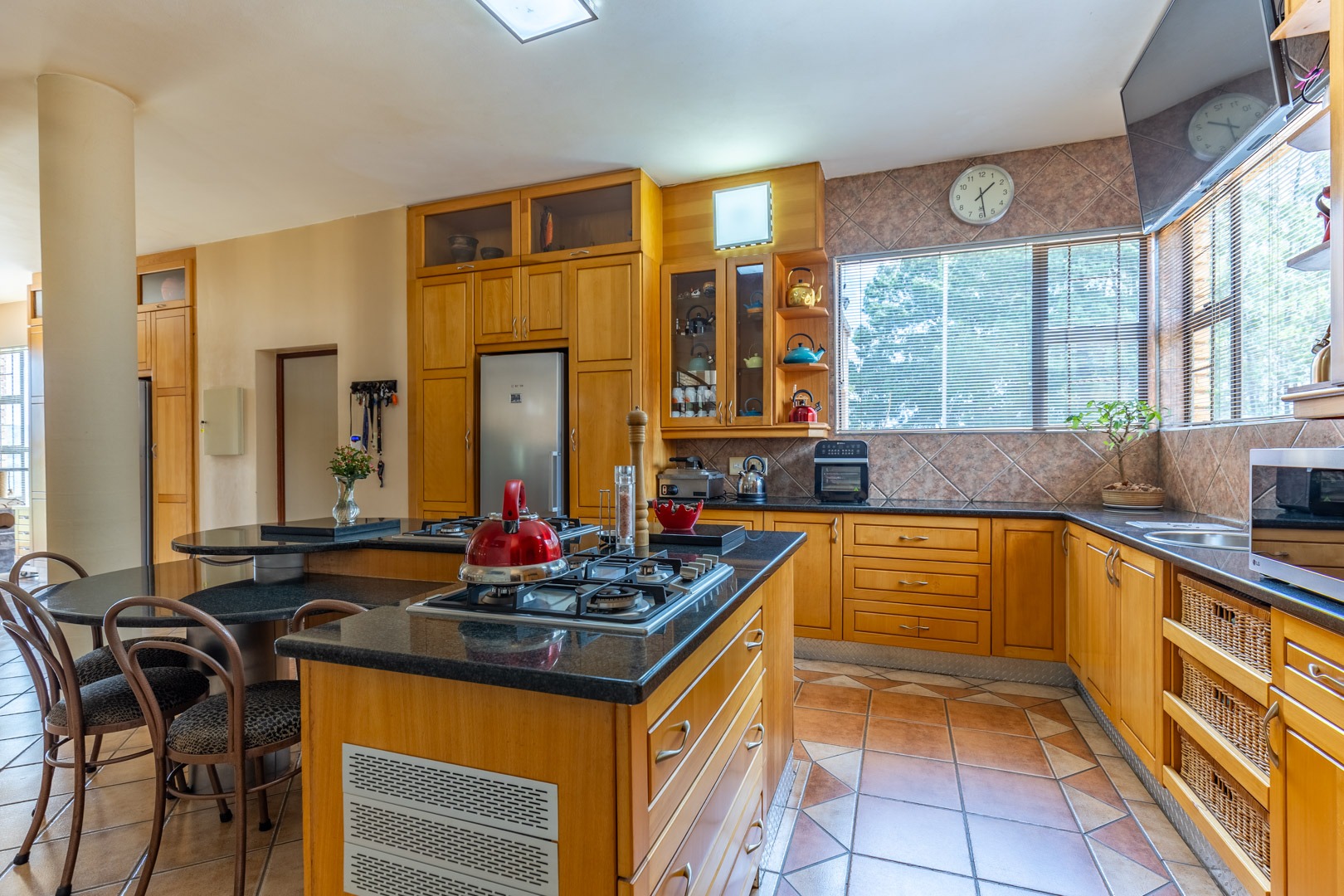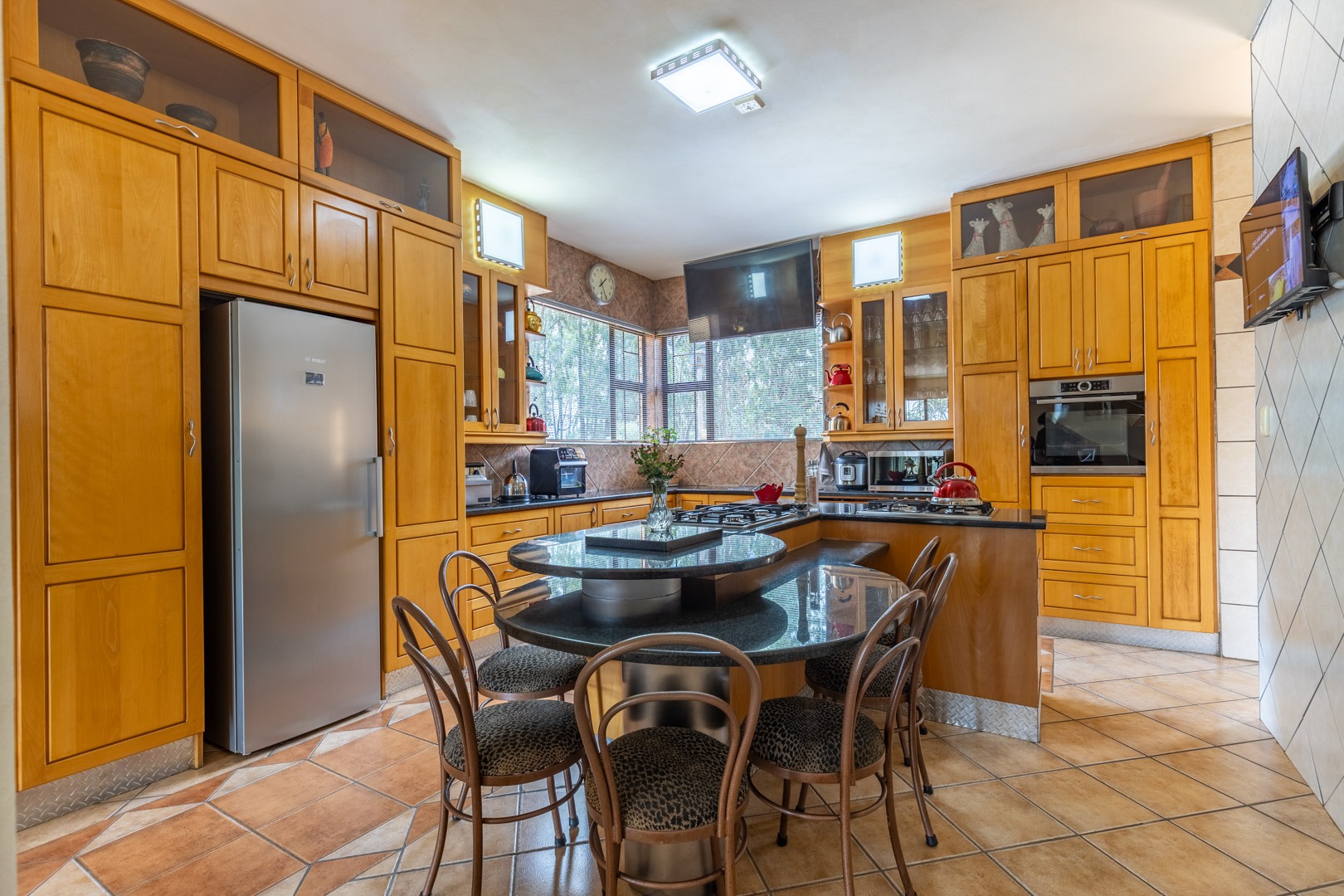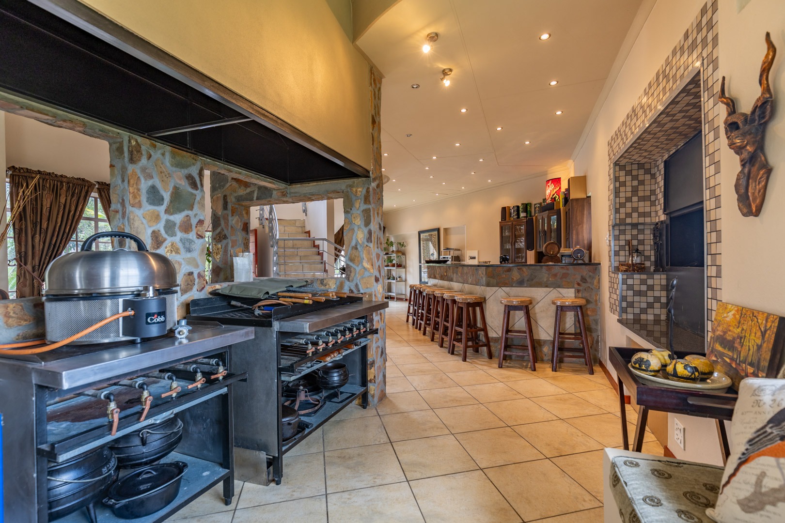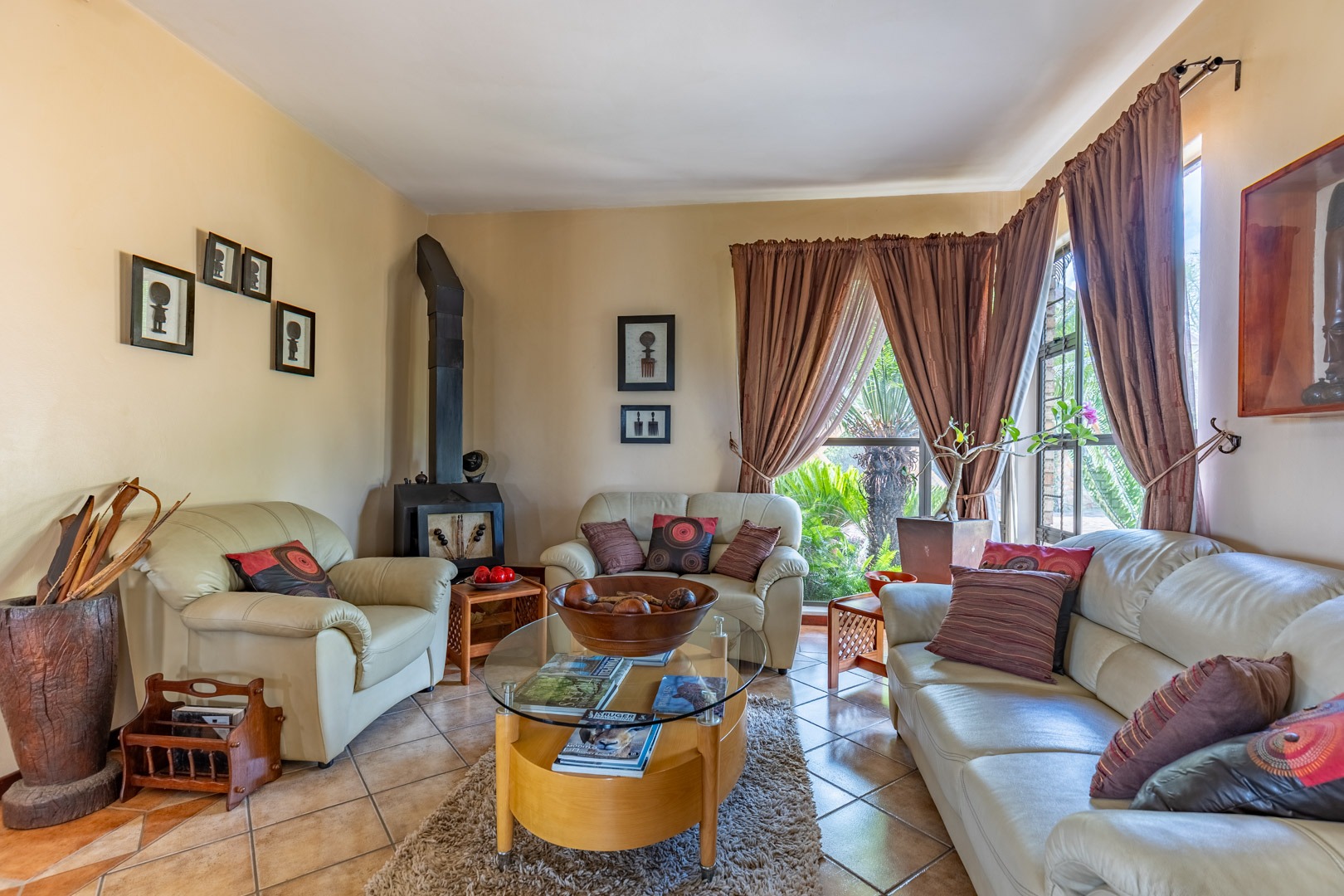 Discover an exceptional residential offering in Zwavelpoort AH, Pretoria, presenting a sprawling 4.55-hectare property with a substantial 670 sqm floor size. This impressive home features an inviting entrance hall leading to two spacious lounges and a dedicated dining room, all designed with an open-plan flow and enhanced by sliding doors. The well-appointed kitchen includes a scullery and pantry, catering to all culinary needs. The residence boasts five generously sized bedrooms, complemented by 5.5 bathrooms, including five luxurious ensuites and a convenient guest toilet. Comfort is assured throughout with air conditioning in key areas. Additional practical spaces include a study, staff quarters, a dedicated laundry room, and ample storage solutions, alongside a versatile flatlet. Outdoor living is a highlight, featuring a refreshing swimming pool, a welcoming patio, and a lapa perfect for entertaining. Enjoy picturesque scenic views from various vantage points. The property is equipped with a built-in braai, a charming garden, and a Wendy house. Parking is abundant with four garages and four additional parking spaces, all accessible via a paved driveway. Security is paramount within this gated community, featuring an access gate, electric fencing, CCTV surveillance, an intercom system, burglar bars, and a security gate. The property also embraces sustainability with solar panels, a borehole, and an irrigation system, ensuring efficient resource management. This eco-estate, functioning as a game/stock farm with a nature reserve lifestyle, offers a unique blend of rural tranquility and modern convenience. Key Features: * 5 Bedrooms, 5.5 Bathrooms (5 Ensuites) * 4.55 Hectare Erf, 670 sqm Floor Size * 2 Lounges, Dining Room, Study * Swimming Pool, Patio, Lapa, Built-in Braai * 4 Garages, 4 Parking Spaces * Gated Community with Electric Fencing & CCTV * Solar Panels, Borehole, Irrigation System * Staff Quarters, Laundry, Storage