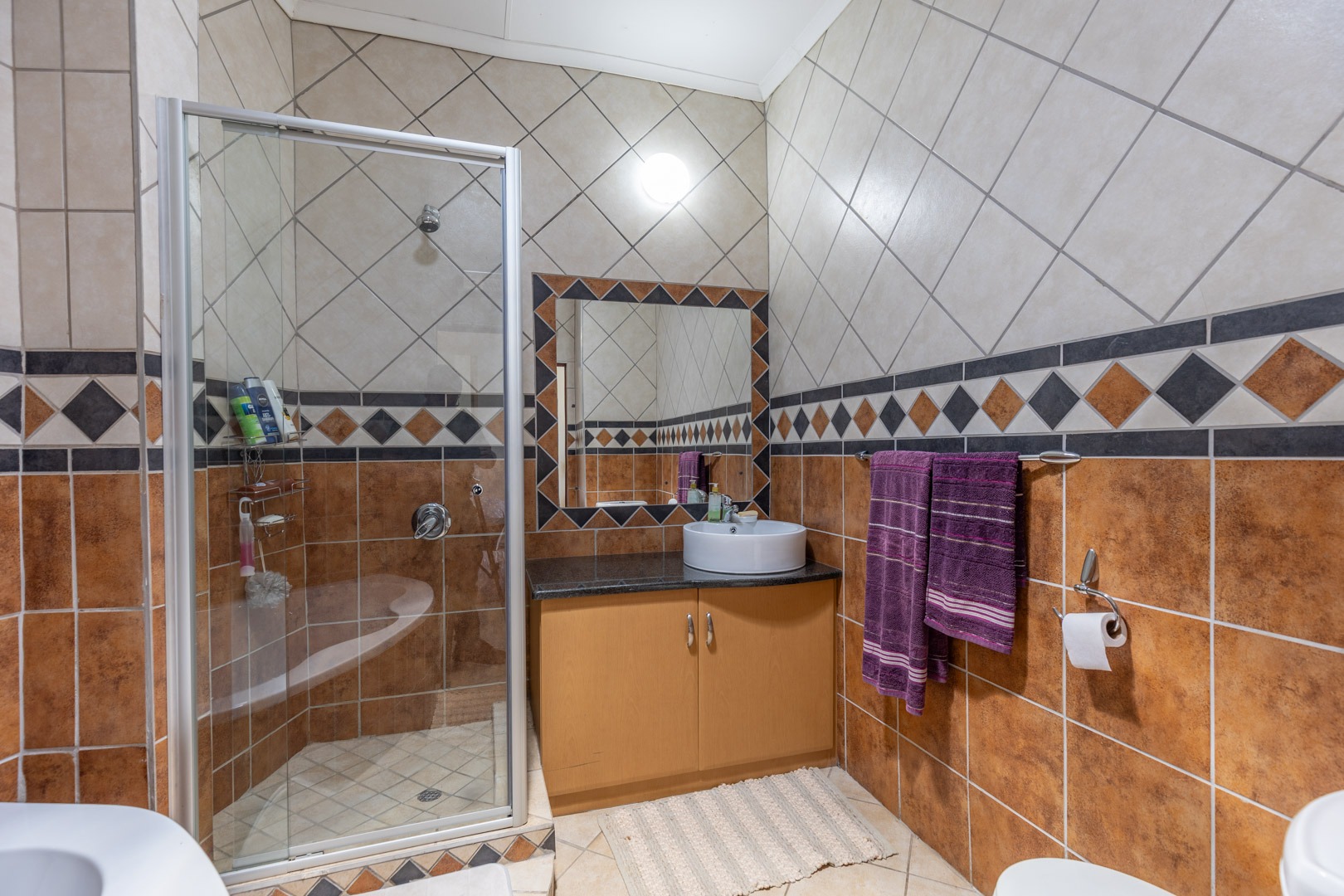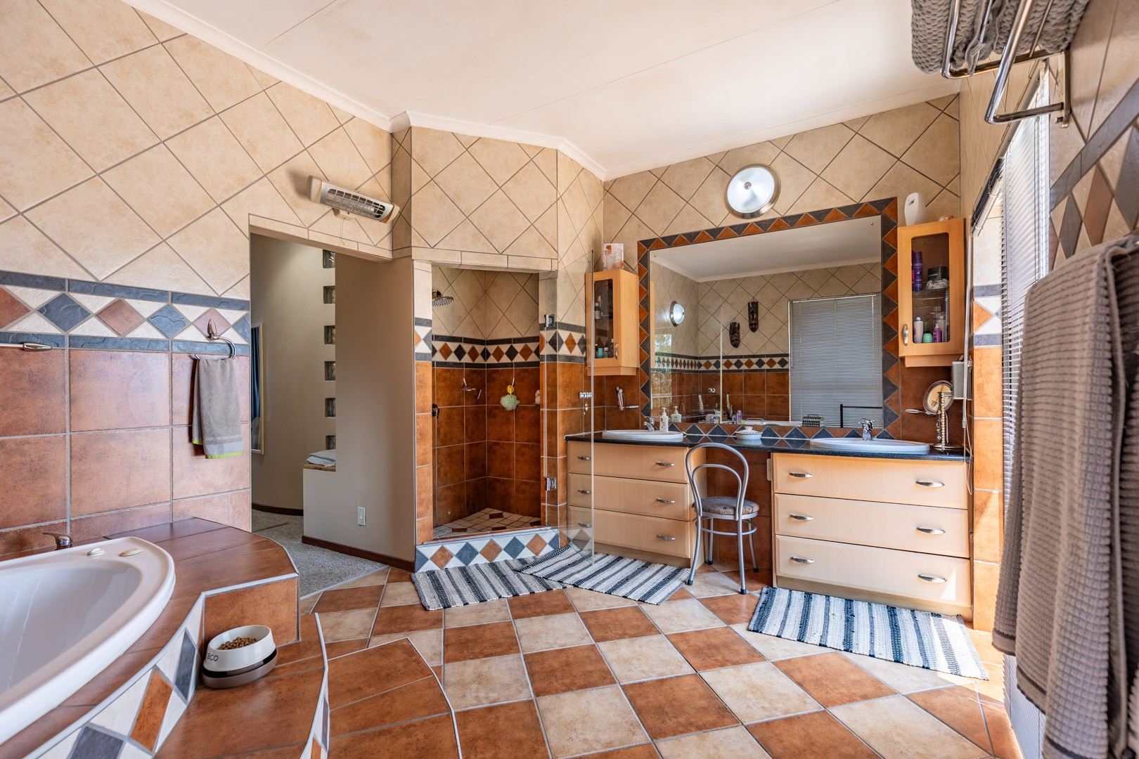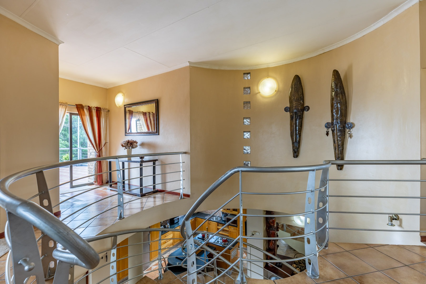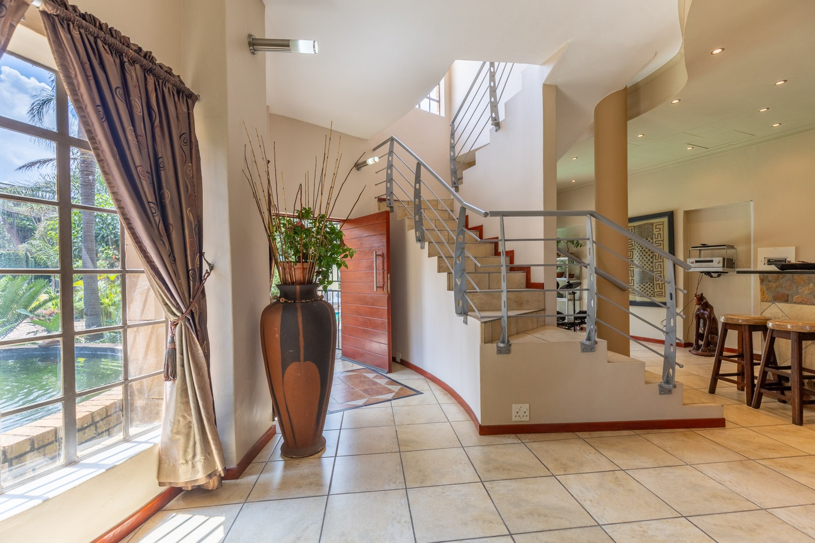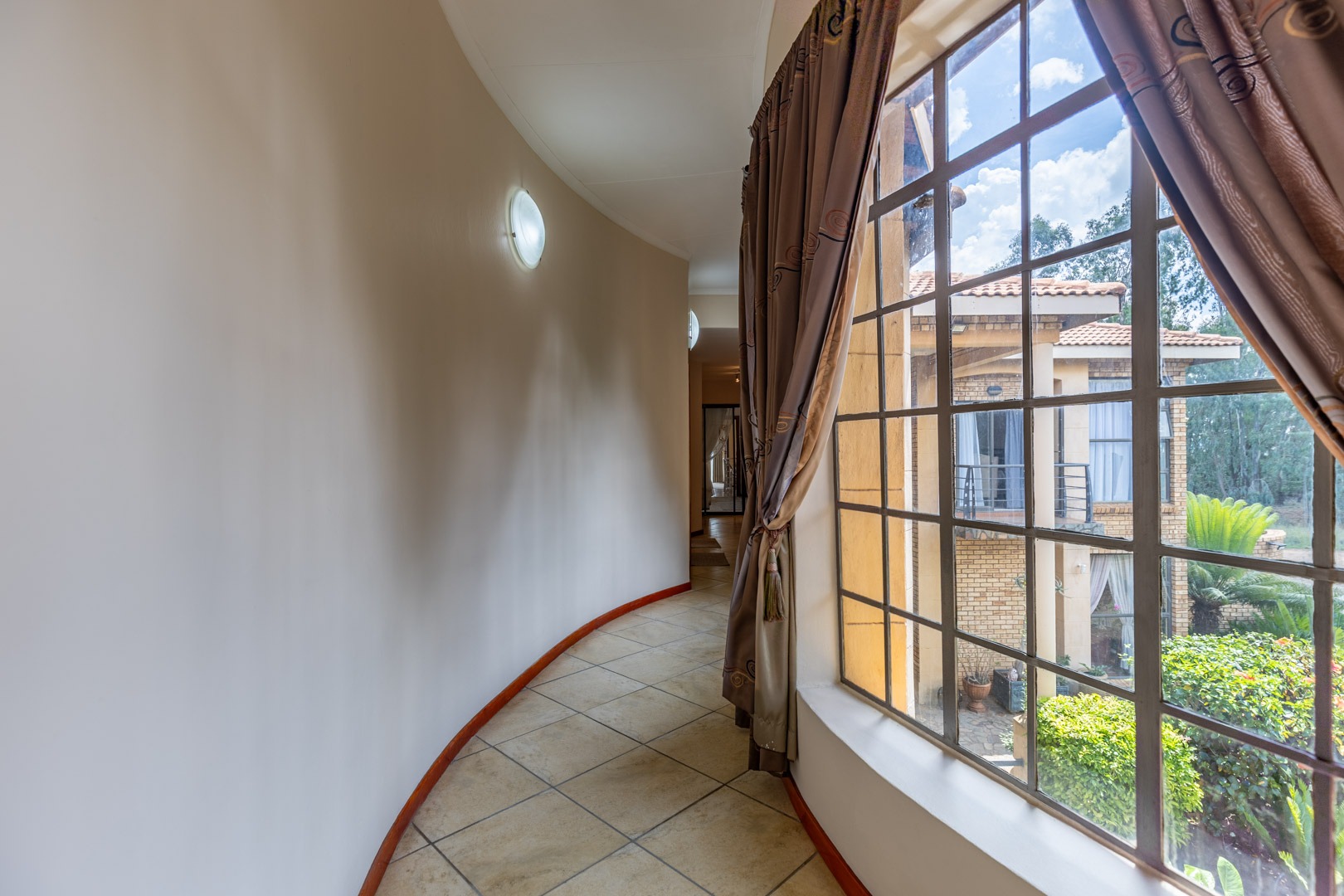 Discover an exceptional residential offering in Zwavelpoort AH, Pretoria, presenting a sprawling 4.55-hectare property with a substantial 670 sqm floor size. This impressive home features an inviting entrance hall leading to two spacious lounges and a dedicated dining room, all designed with an open-plan flow and enhanced by sliding doors. The well-appointed kitchen includes a scullery and pantry, catering to all culinary needs. The residence boasts five generously sized bedrooms, complemented by 5.5 bathrooms, including five luxurious ensuites and a convenient guest toilet. Comfort is assured throughout with air conditioning in key areas. Additional practical spaces include a study, staff quarters, a dedicated laundry room, and ample storage solutions, alongside a versatile flatlet. Outdoor living is a highlight, featuring a refreshing swimming pool, a welcoming patio, and a lapa perfect for entertaining. Enjoy picturesque scenic views from various vantage points. The property is equipped with a built-in braai, a charming garden, and a Wendy house. Parking is abundant with four garages and four additional parking spaces, all accessible via a paved driveway. Security is paramount within this gated community, featuring an access gate, electric fencing, CCTV surveillance, an intercom system, burglar bars, and a security gate. The property also embraces sustainability with solar panels, a borehole, and an irrigation system, ensuring efficient resource management. This eco-estate, functioning as a game/stock farm with a nature reserve lifestyle, offers a unique blend of rural tranquility and modern convenience. Key Features: * 5 Bedrooms, 5.5 Bathrooms (5 Ensuites) * 4.55 Hectare Erf, 670 sqm Floor Size * 2 Lounges, Dining Room, Study * Swimming Pool, Patio, Lapa, Built-in Braai * 4 Garages, 4 Parking Spaces * Gated Community with Electric Fencing & CCTV * Solar Panels, Borehole, Irrigation System * Staff Quarters, Laundry, Storage