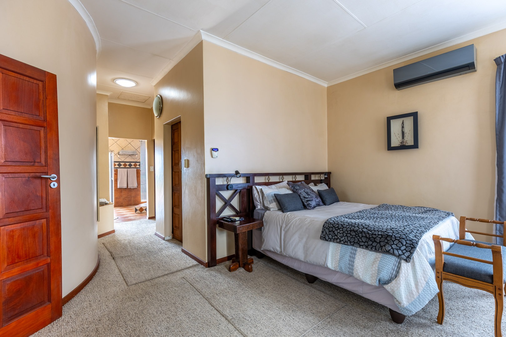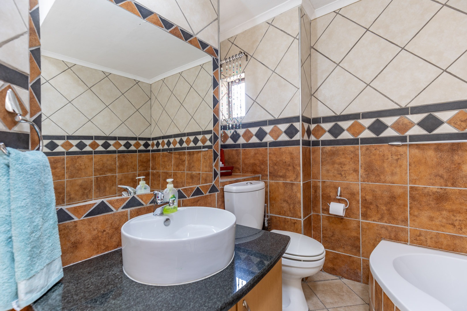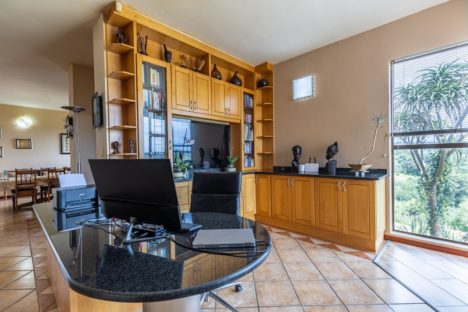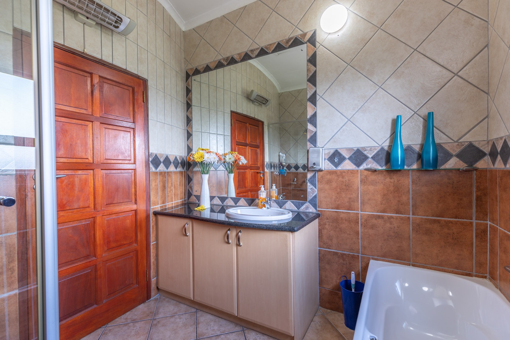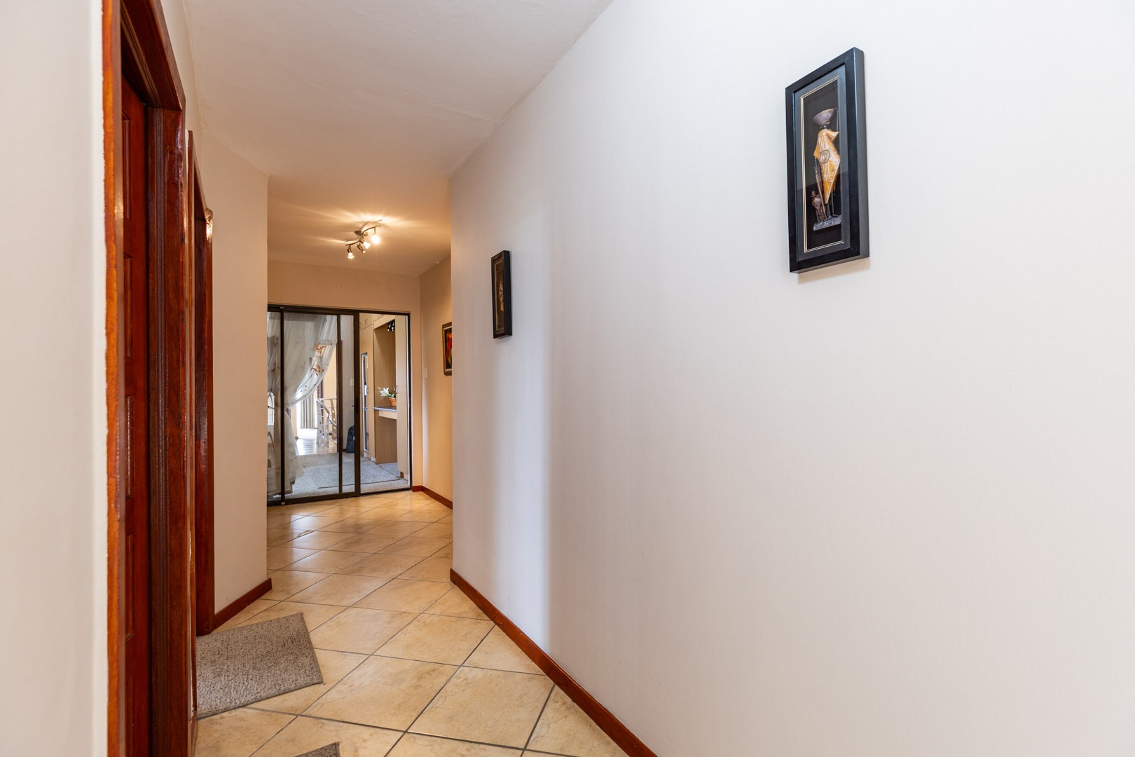 Discover an exceptional residential offering in Zwavelpoort AH, Pretoria, presenting a sprawling 4.55-hectare property with a substantial 670 sqm floor size. This impressive home features an inviting entrance hall leading to two spacious lounges and a dedicated dining room, all designed with an open-plan flow and enhanced by sliding doors. The well-appointed kitchen includes a scullery and pantry, catering to all culinary needs. The residence boasts five generously sized bedrooms, complemented by 5.5 bathrooms, including five luxurious ensuites and a convenient guest toilet. Comfort is assured throughout with air conditioning in key areas. Additional practical spaces include a study, staff quarters, a dedicated laundry room, and ample storage solutions, alongside a versatile flatlet. Outdoor living is a highlight, featuring a refreshing swimming pool, a welcoming patio, and a lapa perfect for entertaining. Enjoy picturesque scenic views from various vantage points. The property is equipped with a built-in braai, a charming garden, and a Wendy house. Parking is abundant with four garages and four additional parking spaces, all accessible via a paved driveway. Security is paramount within this gated community, featuring an access gate, electric fencing, CCTV surveillance, an intercom system, burglar bars, and a security gate. The property also embraces sustainability with solar panels, a borehole, and an irrigation system, ensuring efficient resource management. This eco-estate, functioning as a game/stock farm with a nature reserve lifestyle, offers a unique blend of rural tranquility and modern convenience. Key Features: * 5 Bedrooms, 5.5 Bathrooms (5 Ensuites) * 4.55 Hectare Erf, 670 sqm Floor Size * 2 Lounges, Dining Room, Study * Swimming Pool, Patio, Lapa, Built-in Braai * 4 Garages, 4 Parking Spaces * Gated Community with Electric Fencing & CCTV * Solar Panels, Borehole, Irrigation System * Staff Quarters, Laundry, Storage