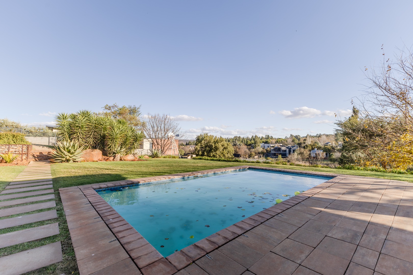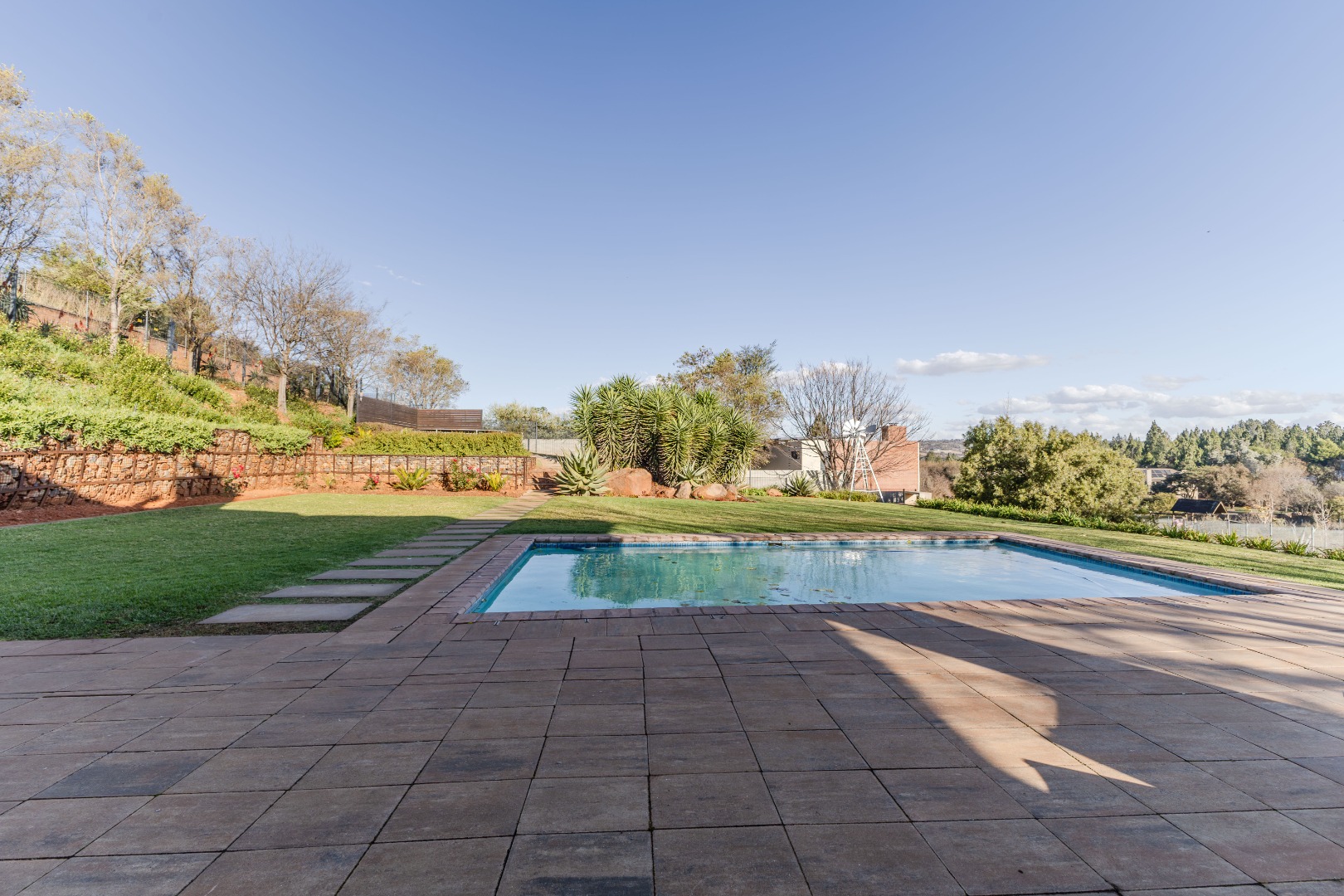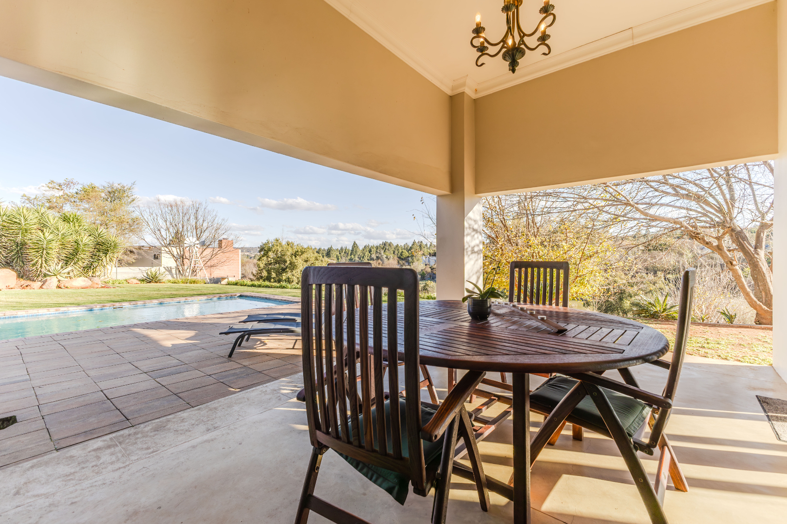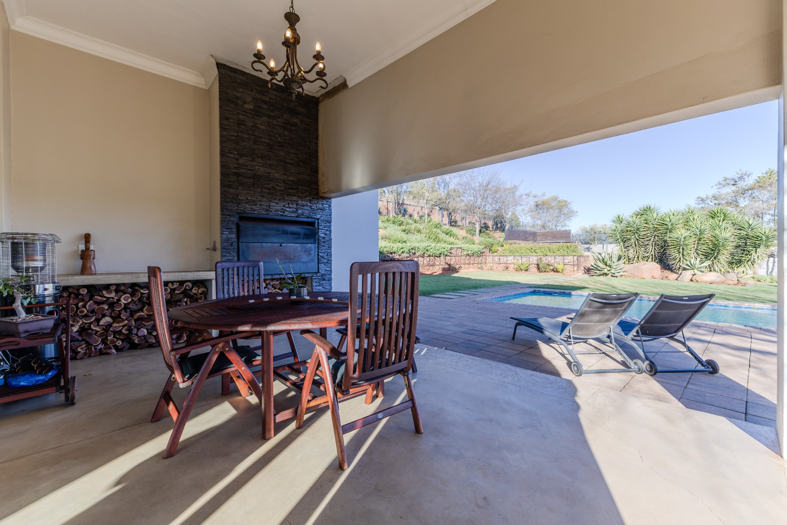 patio with swimming pool and built in braai