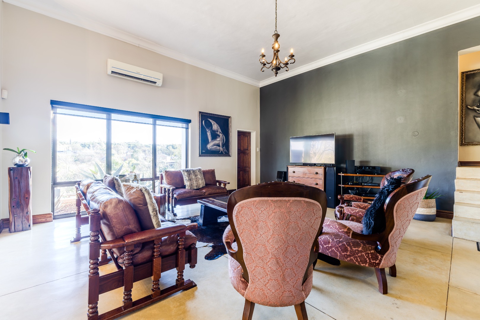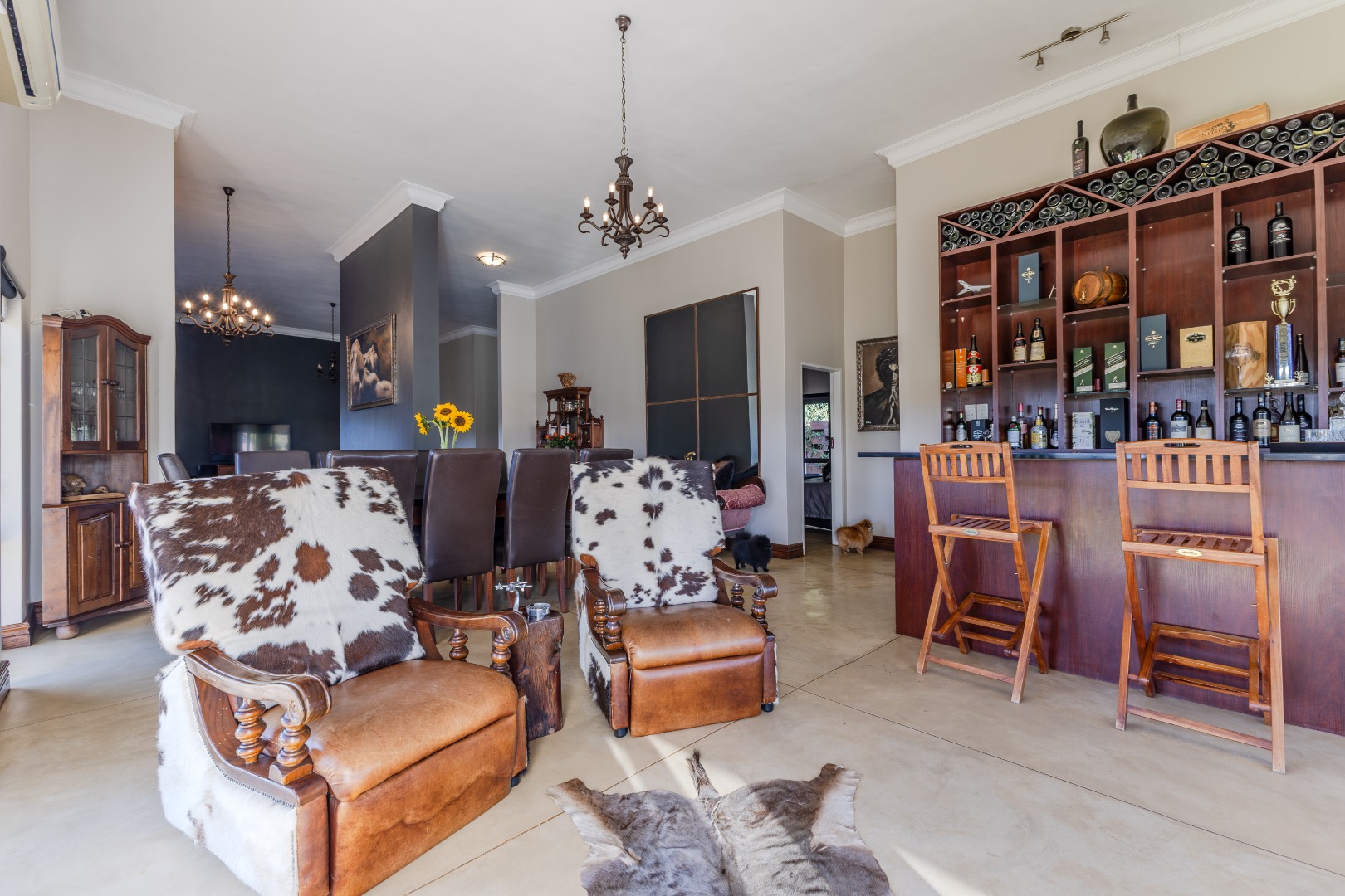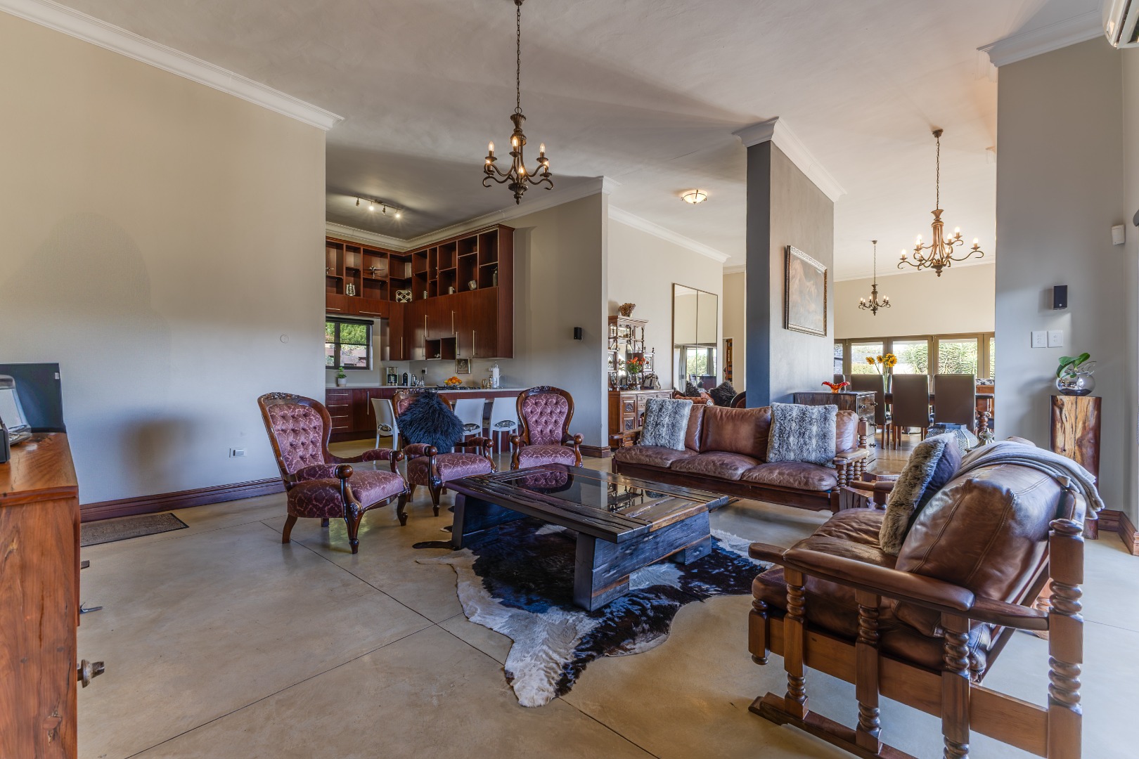 Impressive double-volume living areas with chandeliers