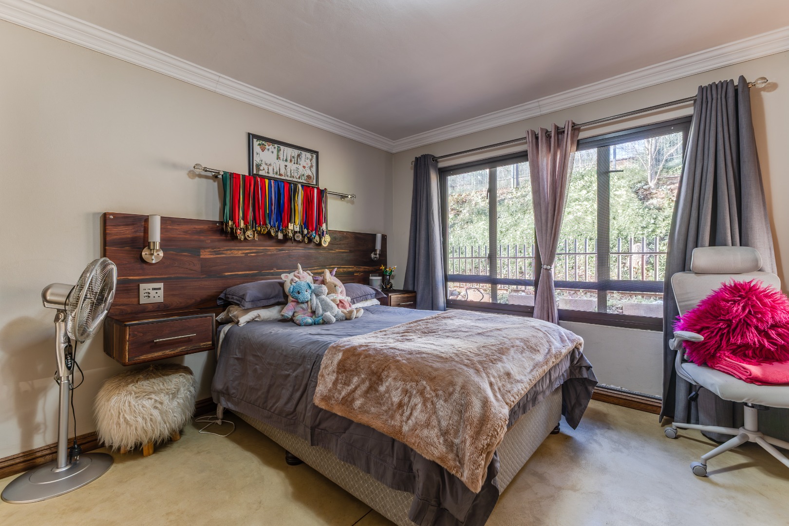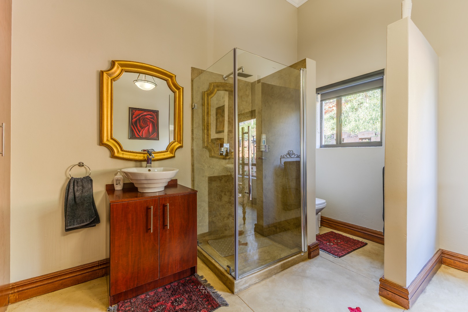 Mature, landscaped garden with indigenous vegetation and natural bush buffer
