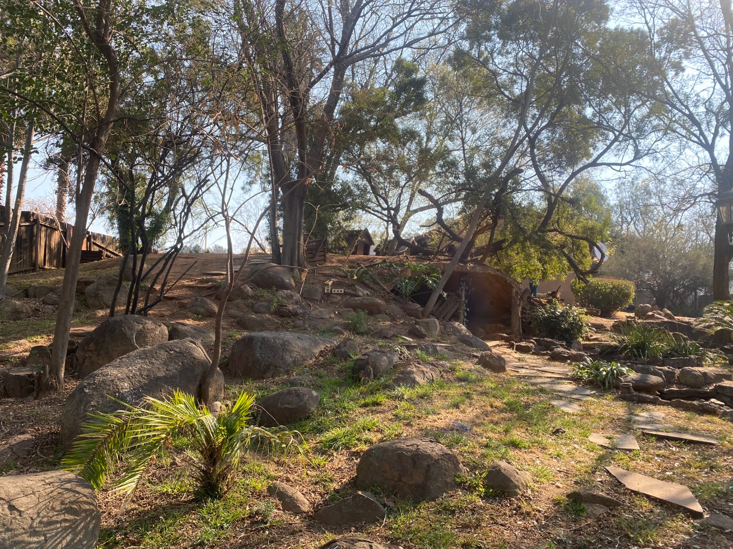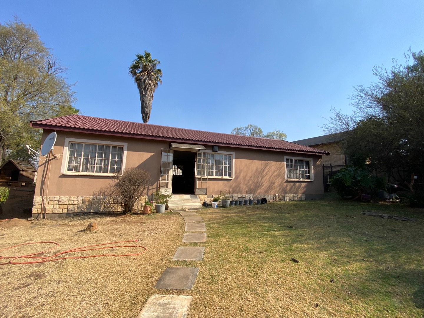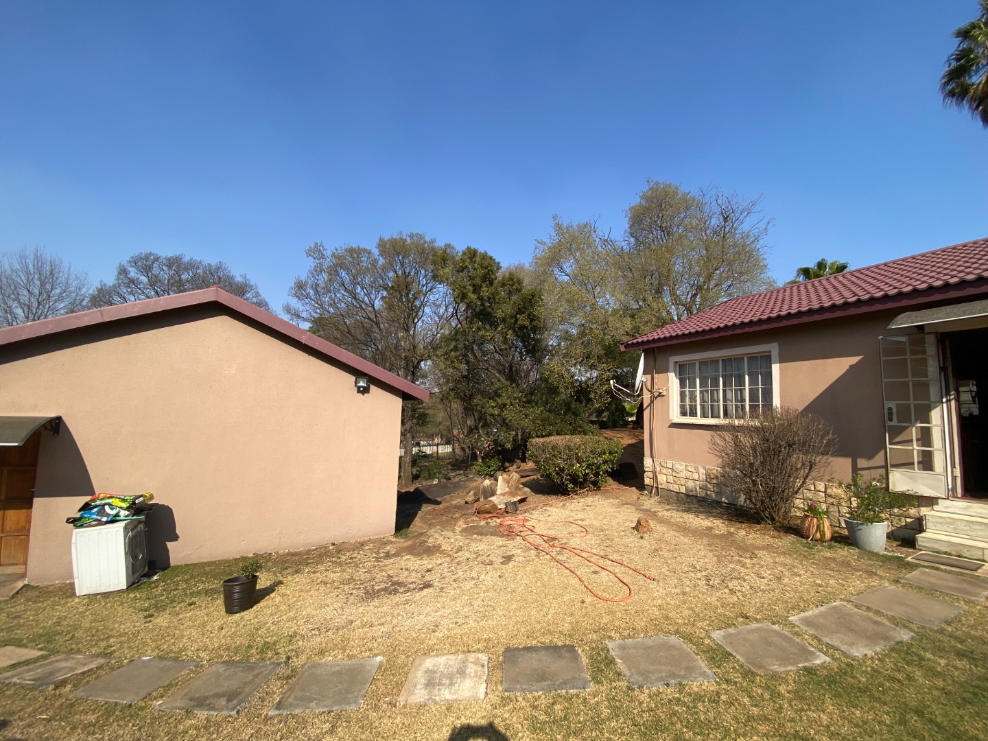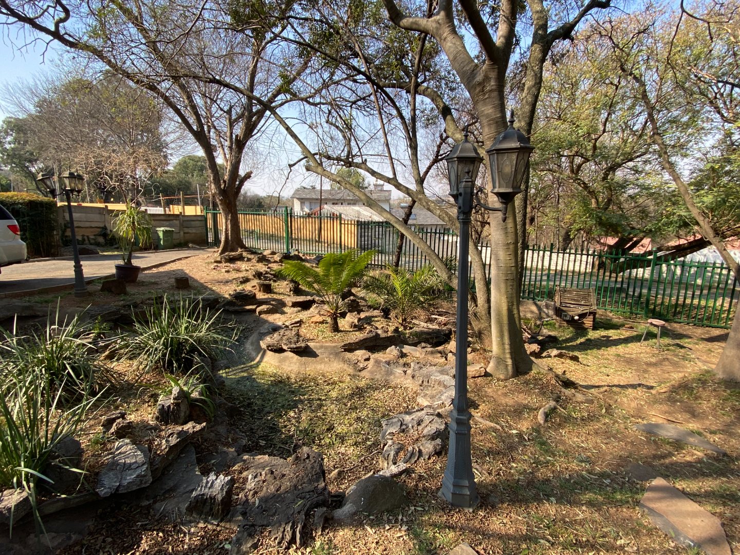 The large garden has many water features (currently not operational). The property is walled on the side and back boundaries with palisade fencing in the front.