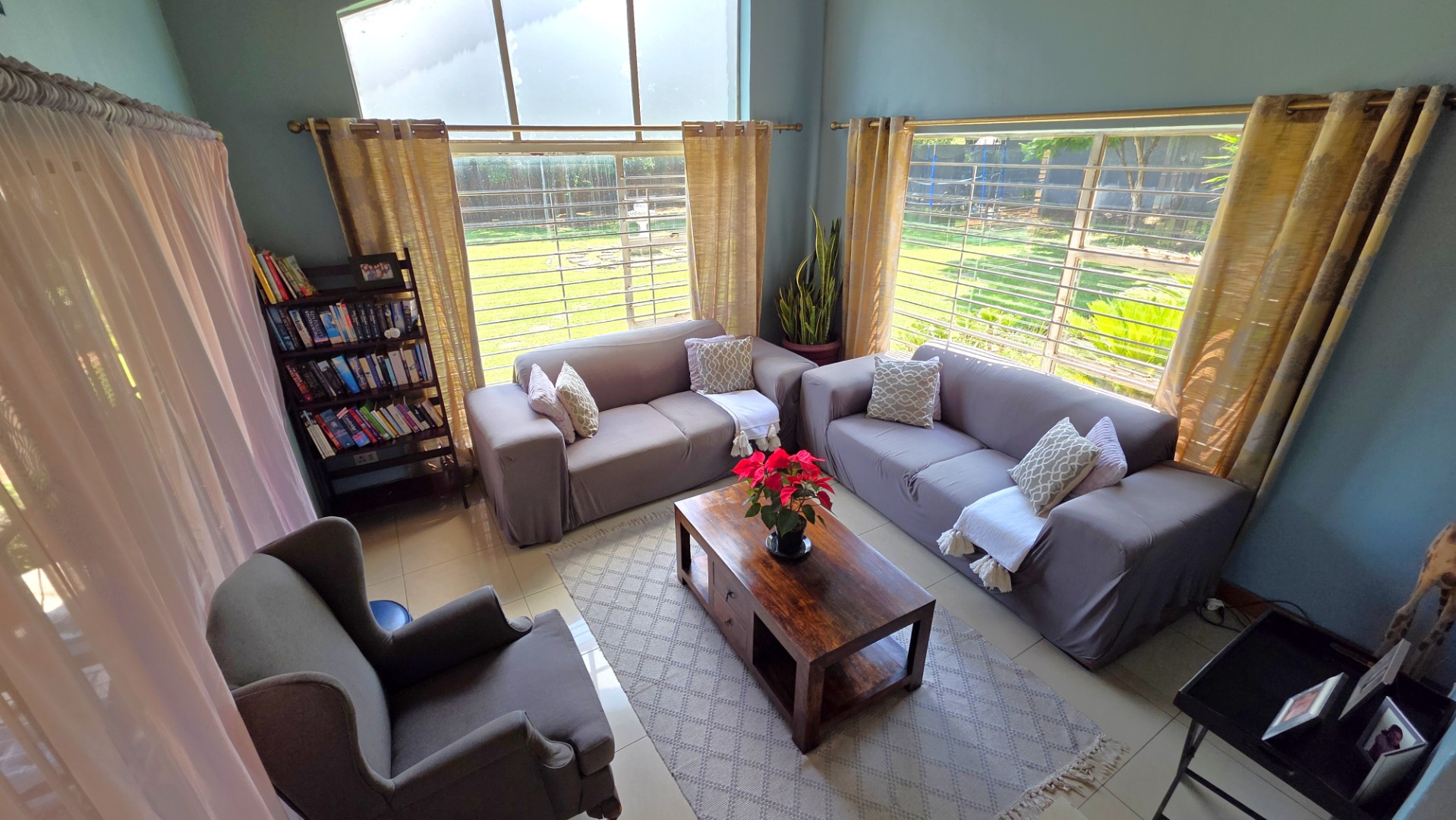 Step into a well-designed, spacious family home with ample living rooms, that blends comfort, style, and security in a serene garden setting.