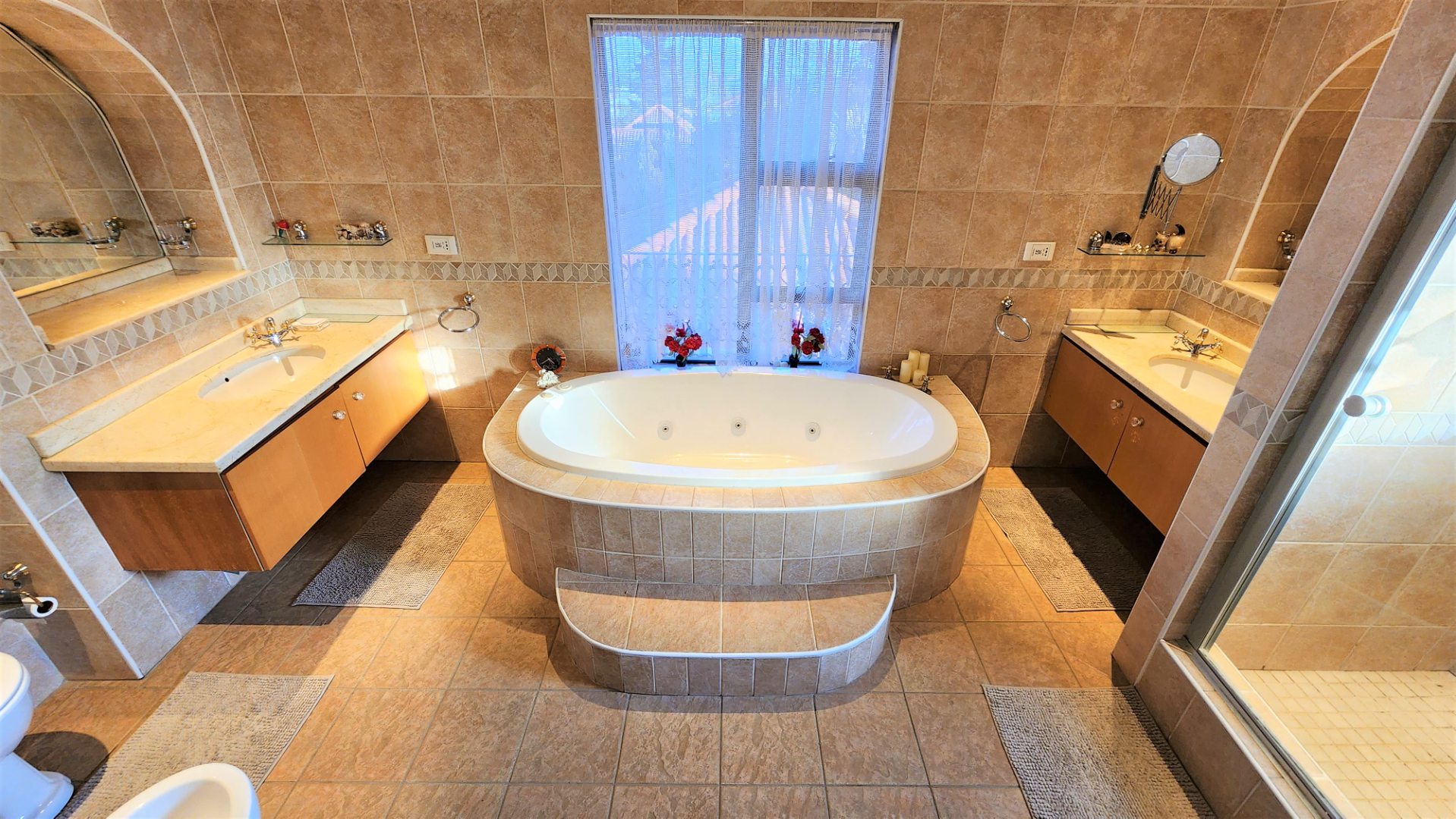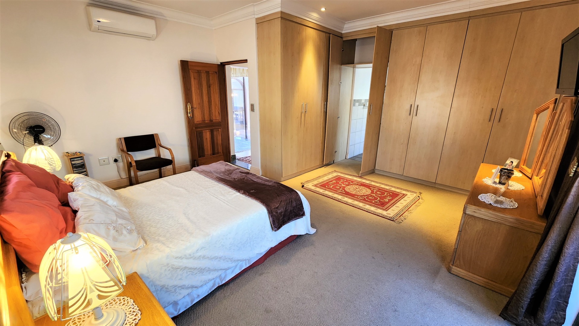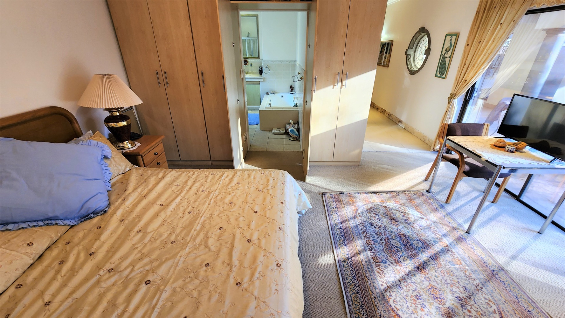 Ascending the grand floating staircase, you will find a large landing area which could house another seating area or be utilized however you choose. The main bedroom is spacious, with a fireplace, and open’s out onto 2 balconies with views, and boasts a walk-through dressing room with ample cupboard space, and a full ensuite bathroom with jet-spa bath and bidet. The 2nd and 3rd bedrooms are also sizeable, and both boast full ensuite bathrooms (with bidets), and balconies.