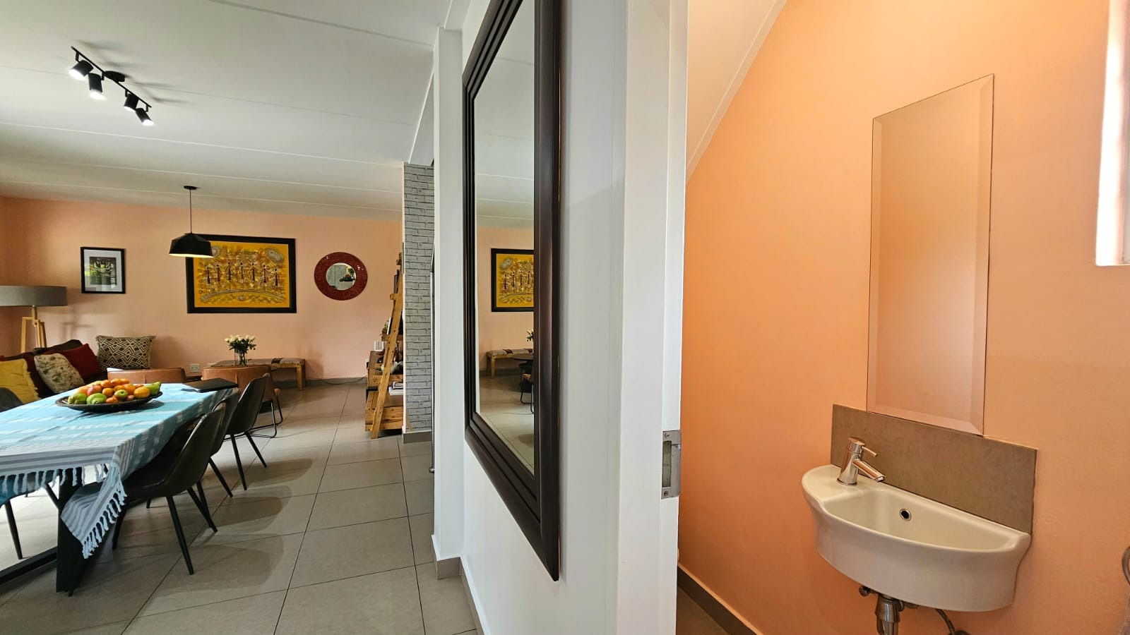 Upstairs, you will find three comfortable bedrooms, including one with an en-suite bathroom, as well as an additional full family bathroom and a guest toilet downstairs. The property is pet-friendly. Security is a priority within this 24-hour security estate, which features an access gate and a security post, providing peace of mind for residents. Additional amenities include a garage, parking for visitors, a laundry area, and access to a clubhouse with swimming pool and play park area.