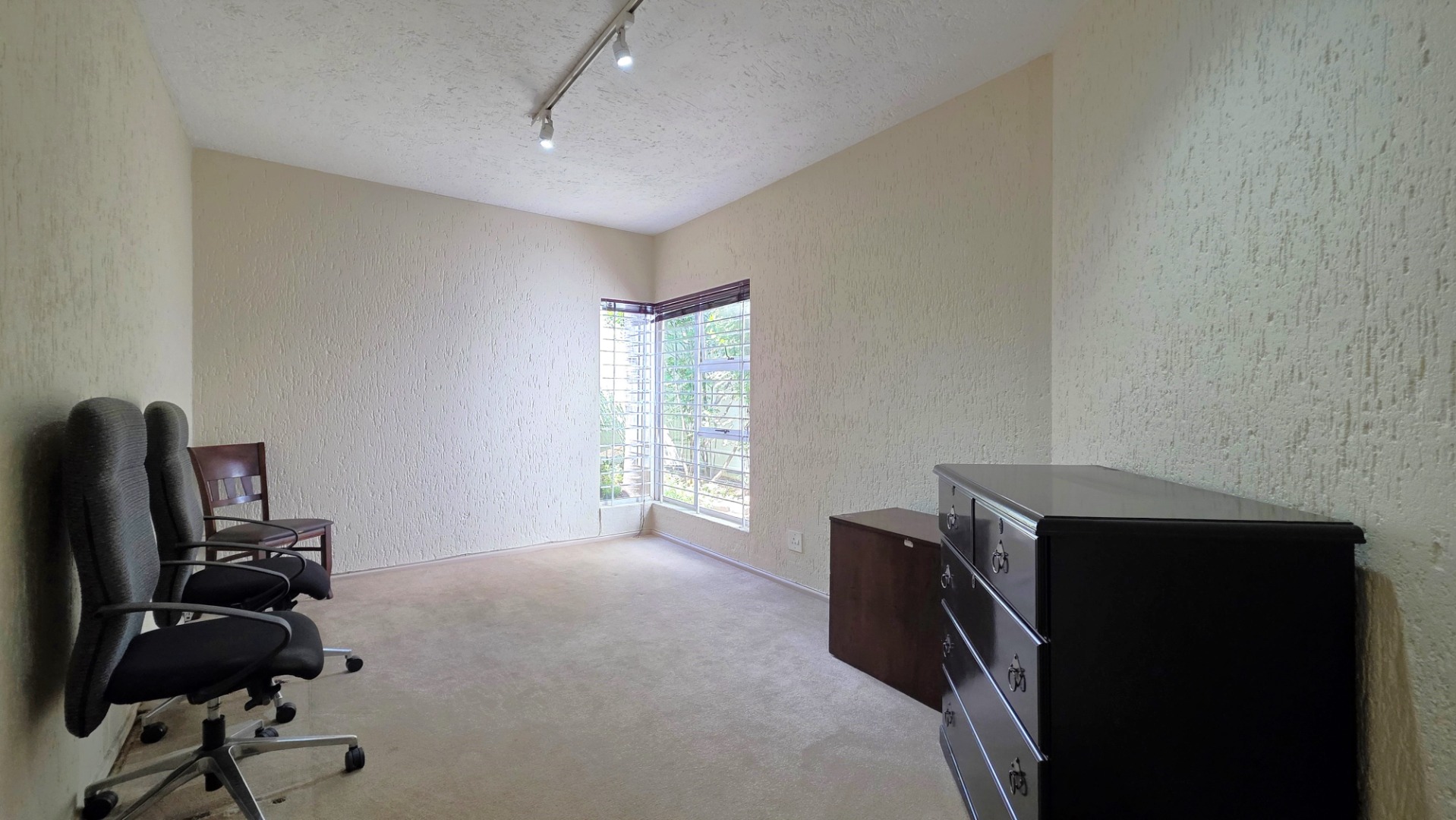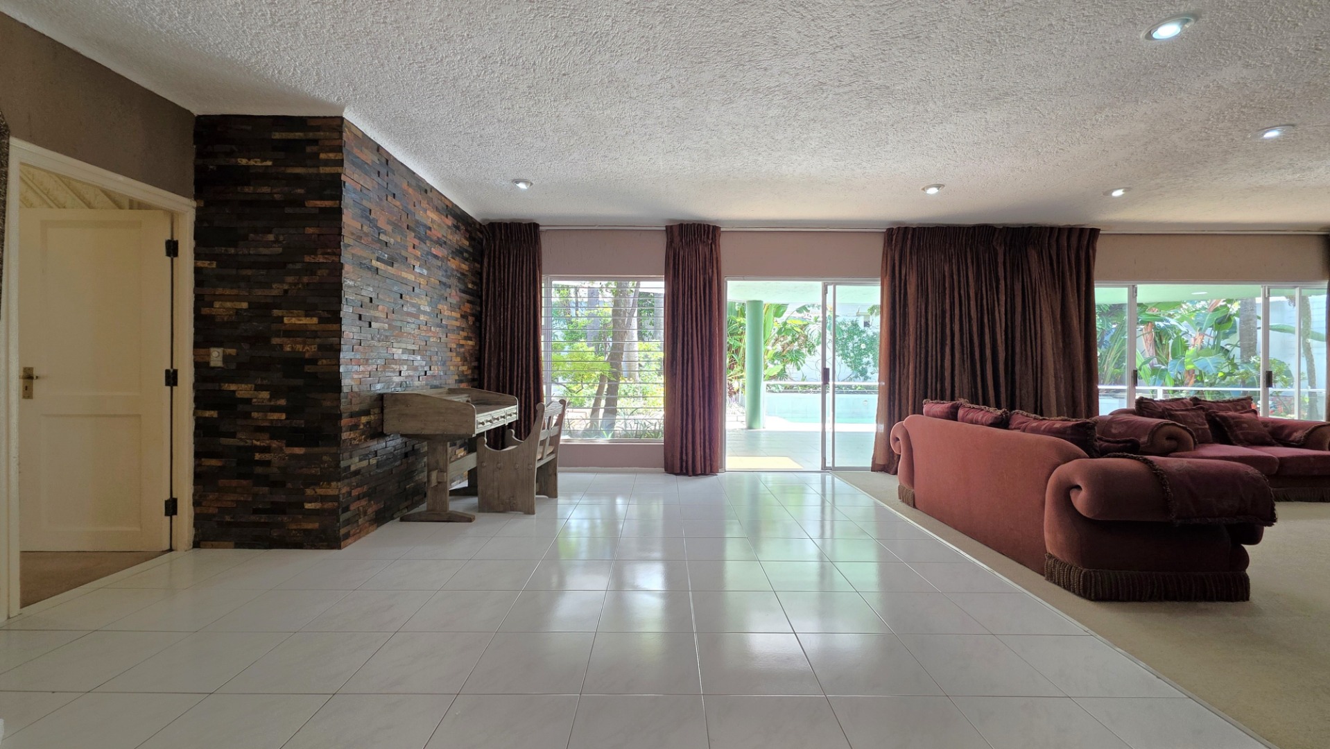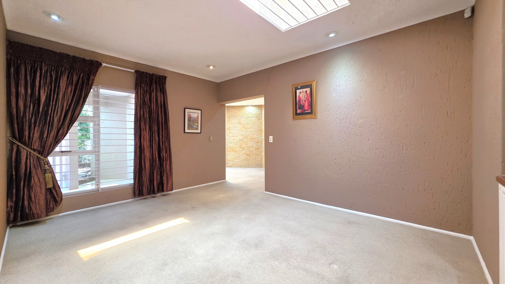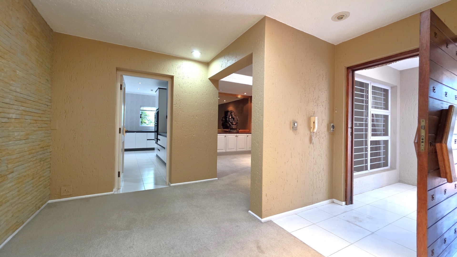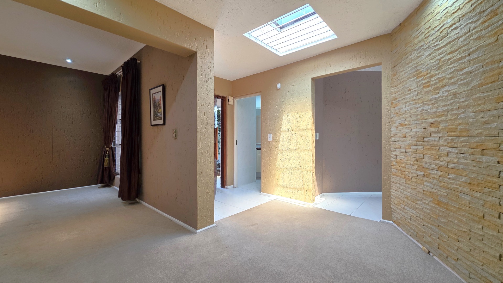 This well-appointed home situated within a small secure estate, welcomes you through an inviting entrance hall that flows seamlessly into a spacious open-plan living and dining area. Both spaces open out through glass doors onto a sizeable covered patio featuring a built-in braai area, creating an ideal setting for entertaining while overlooking the pool with an elegant water feature, all surrounded by lush greenery that enhances the sense of privacy and tranquillity. In addition to the open-plan living areas, the home offers a separate formal lounge or TV room, providing flexibility for family living or more intimate gatherings.