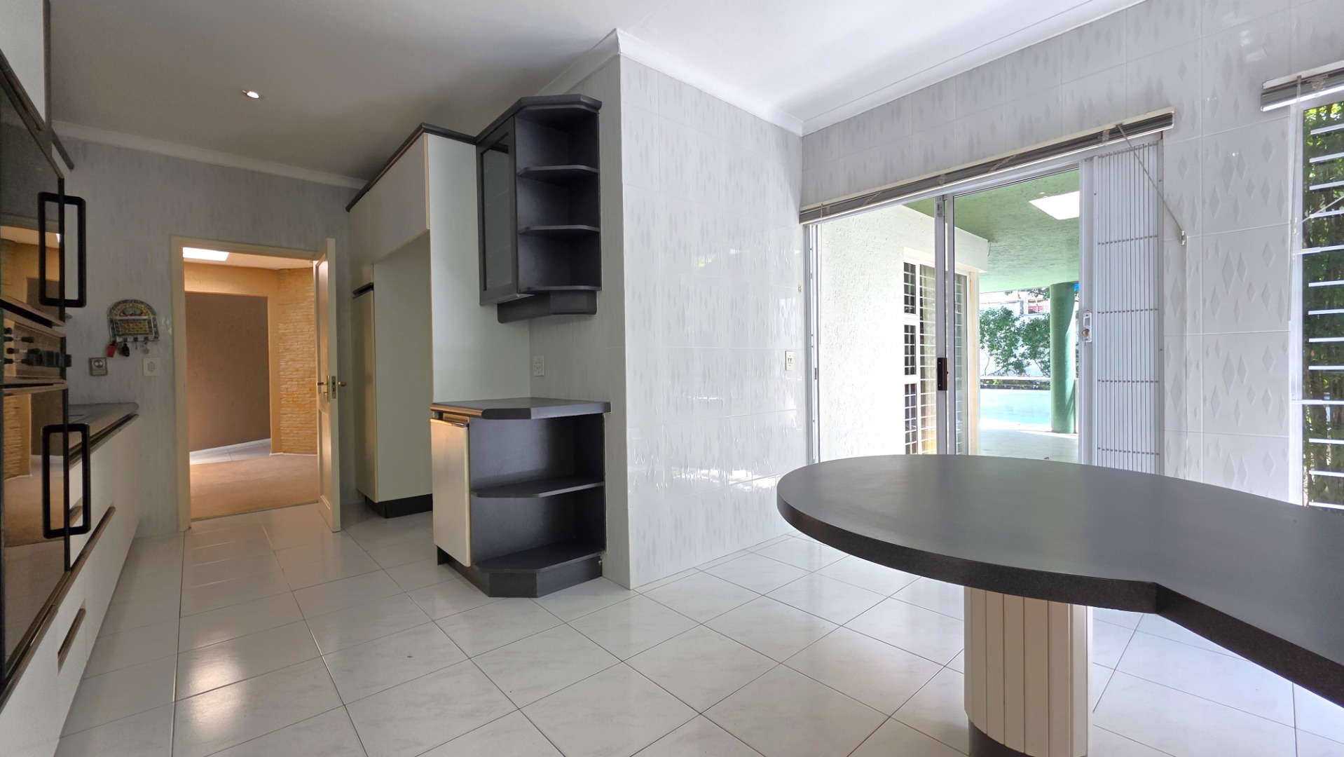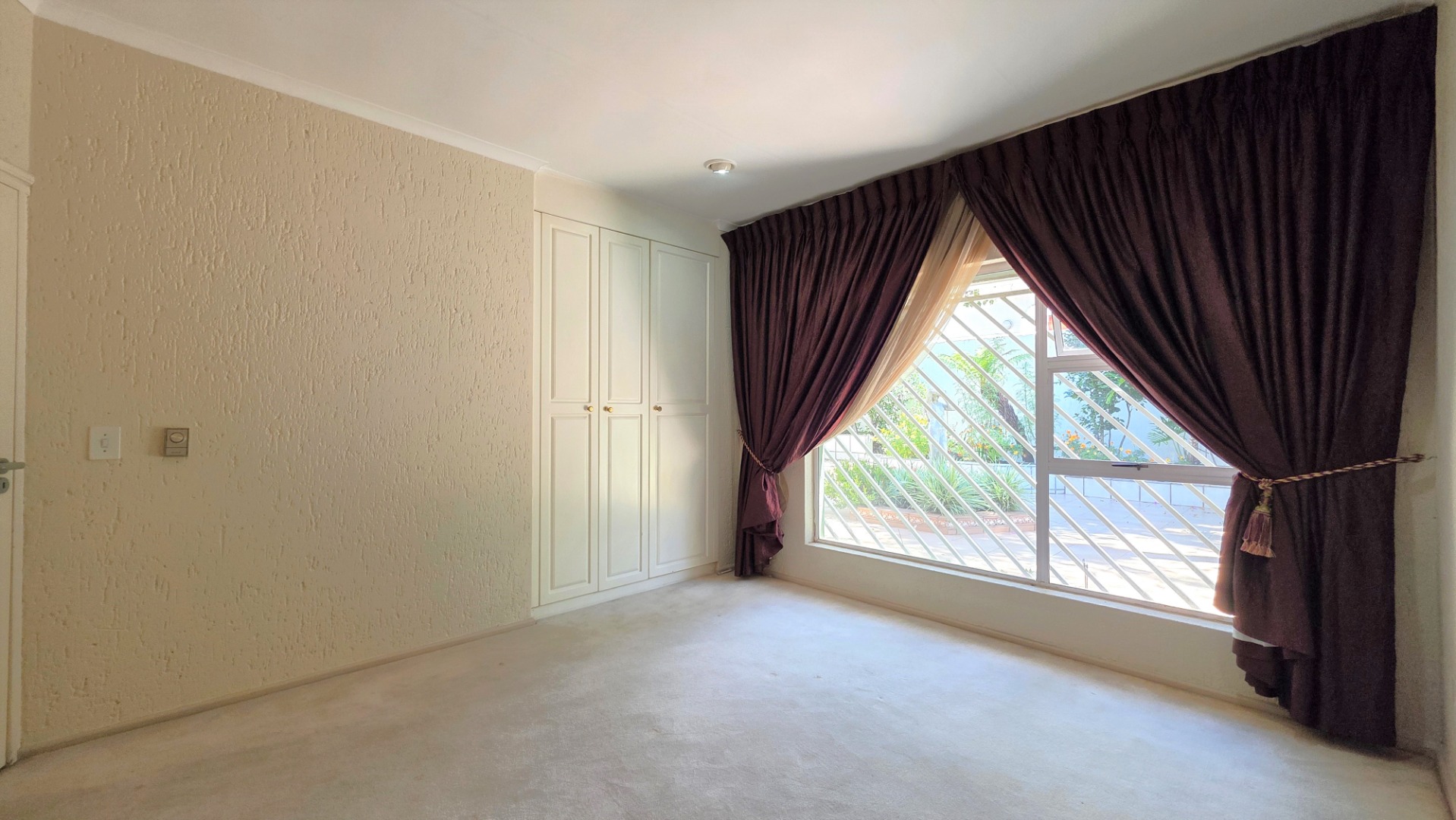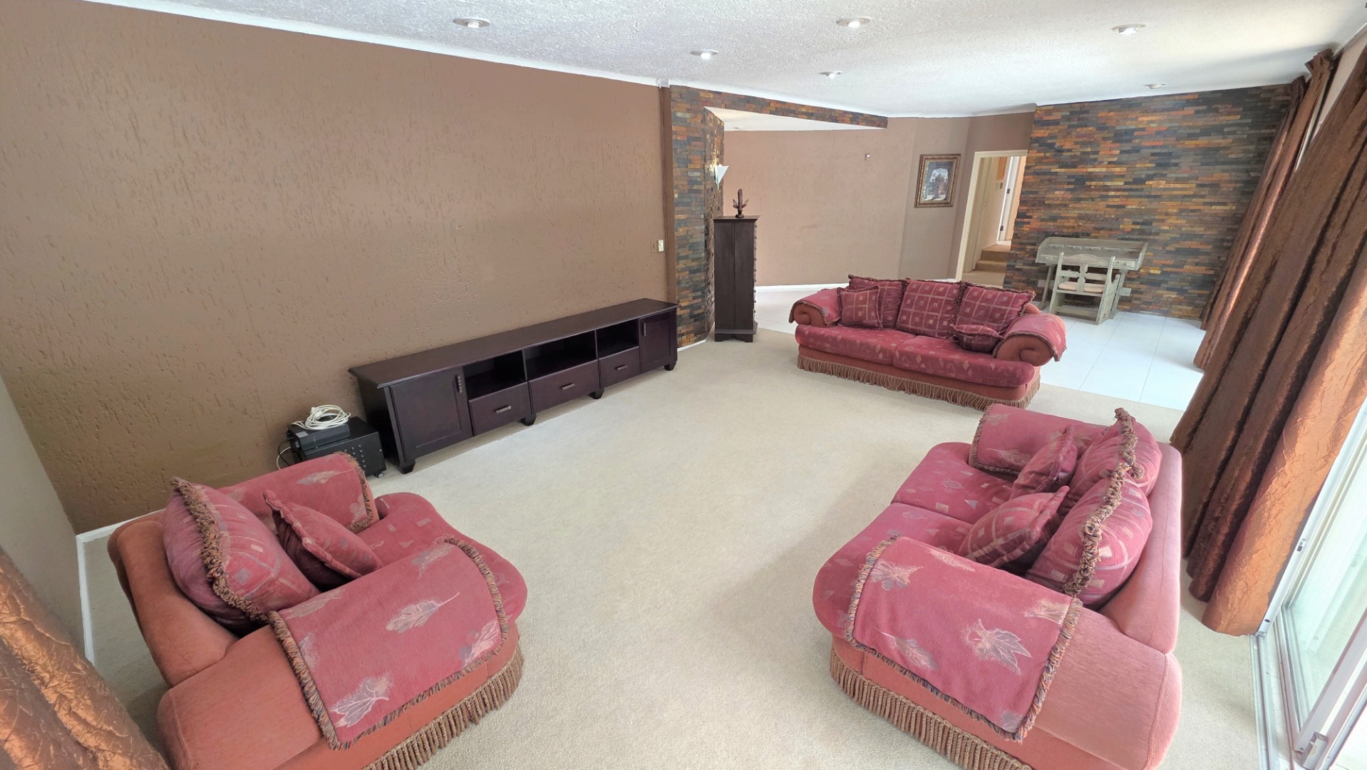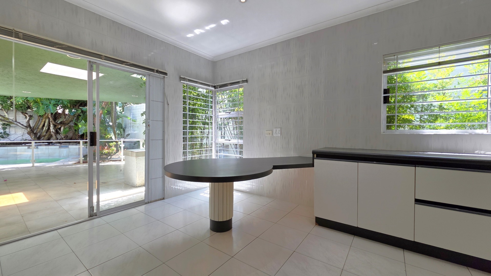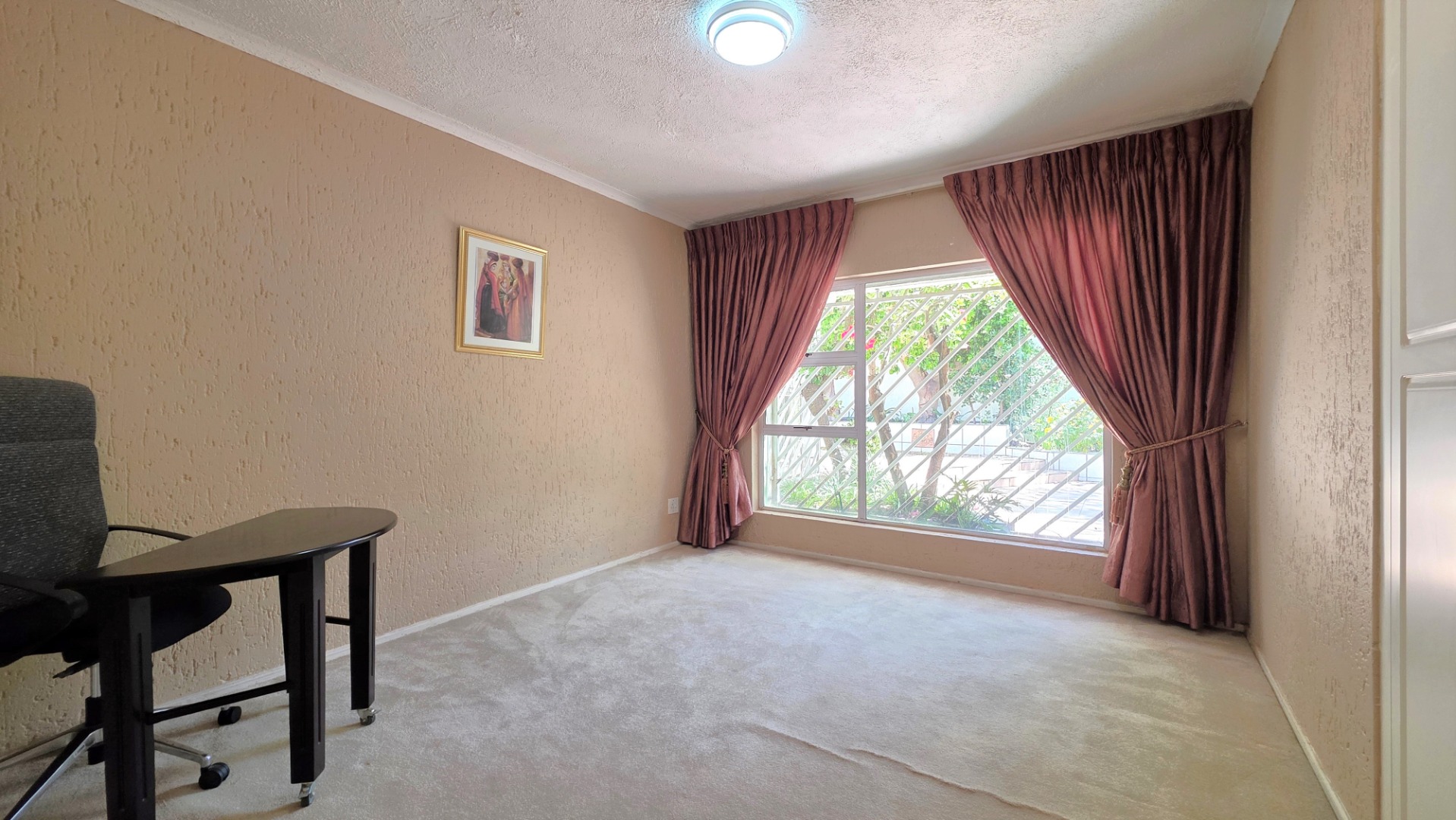 This well-appointed home situated within a small secure estate, welcomes you through an inviting entrance hall that flows seamlessly into a spacious open-plan living and dining area. Both spaces open out through glass doors onto a sizeable covered patio featuring a built-in braai area, creating an ideal setting for entertaining while overlooking the pool with an elegant water feature, all surrounded by lush greenery that enhances the sense of privacy and tranquillity. In addition to the open-plan living areas, the home offers a separate formal lounge or TV room, providing flexibility for family living or more intimate gatherings.