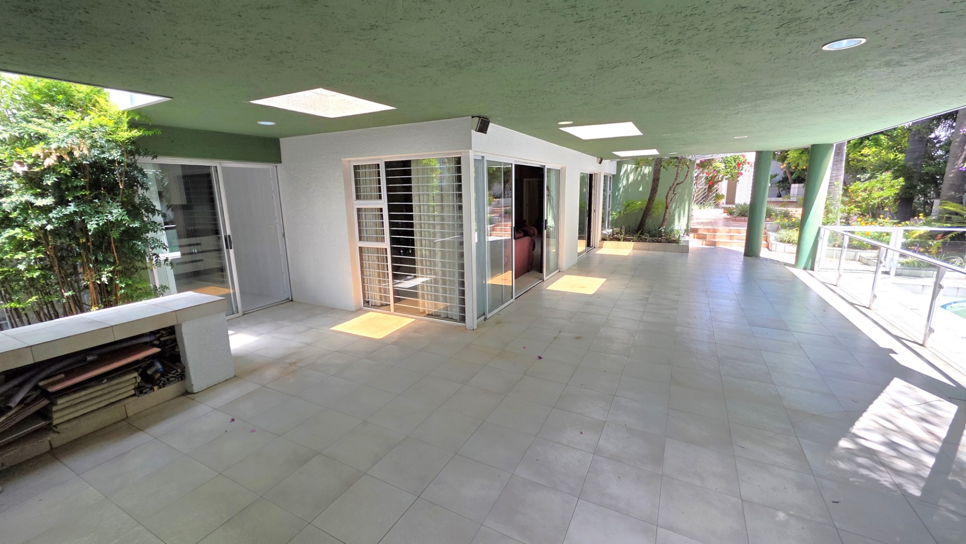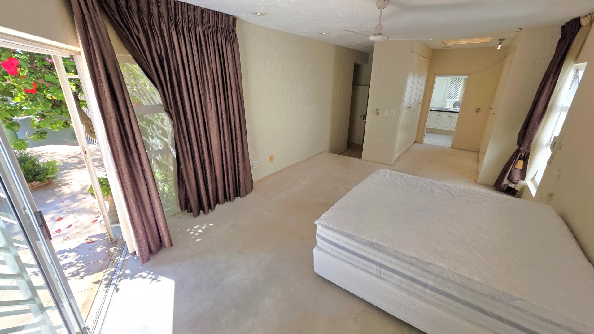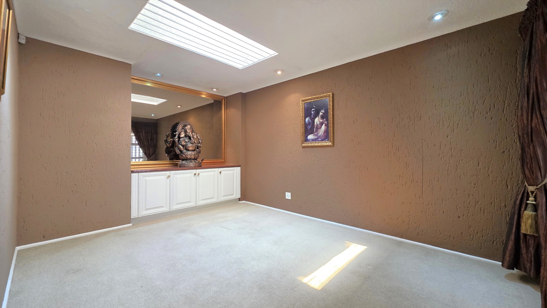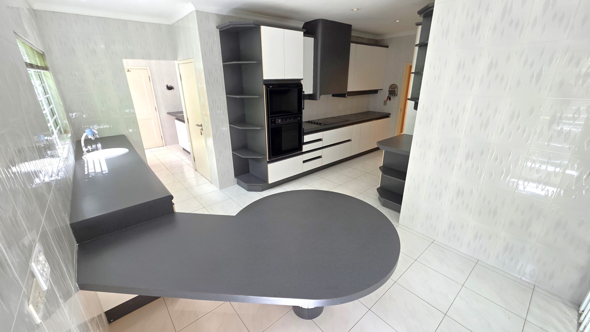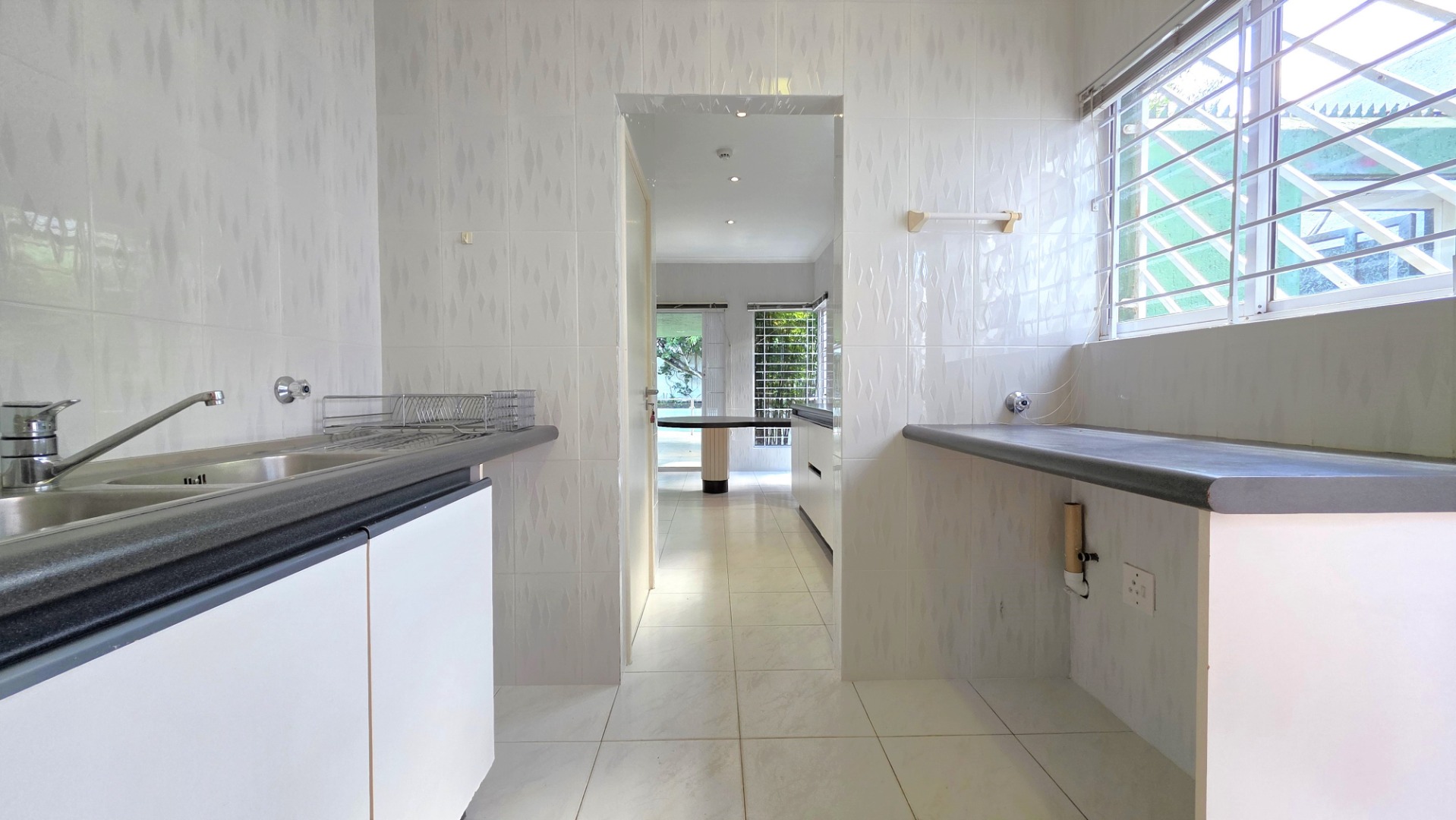 This well-appointed home situated within a small secure estate, welcomes you through an inviting entrance hall that flows seamlessly into a spacious open-plan living and dining area. Both spaces open out through glass doors onto a sizeable covered patio featuring a built-in braai area, creating an ideal setting for entertaining while overlooking the pool with an elegant water feature, all surrounded by lush greenery that enhances the sense of privacy and tranquillity. In addition to the open-plan living areas, the home offers a separate formal lounge or TV room, providing flexibility for family living or more intimate gatherings.