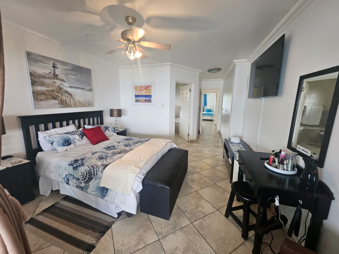 The property offers a garage with a shared canopy and additional open parking, plus an electric fence for security. A communal swimming pool with a braai area provides a refreshing retreat, and water tanks assist with water management. The home currently gets rented out for R 3000 per night for holiday goers. So its a great investment opportunity too.