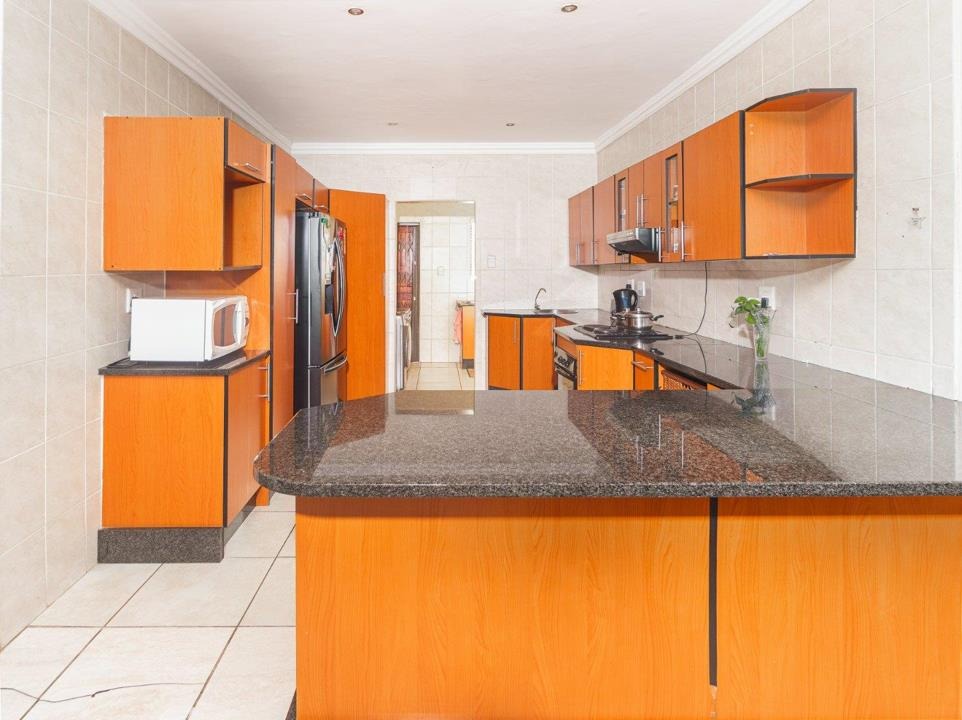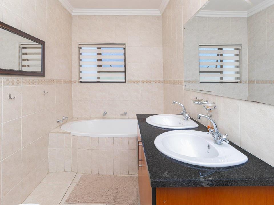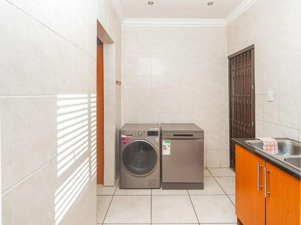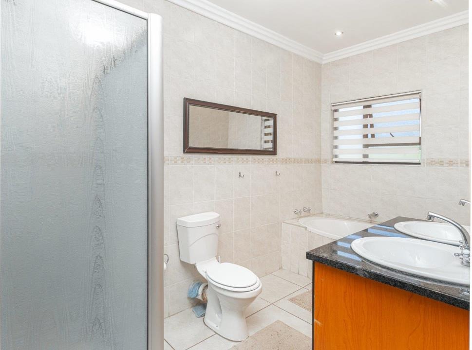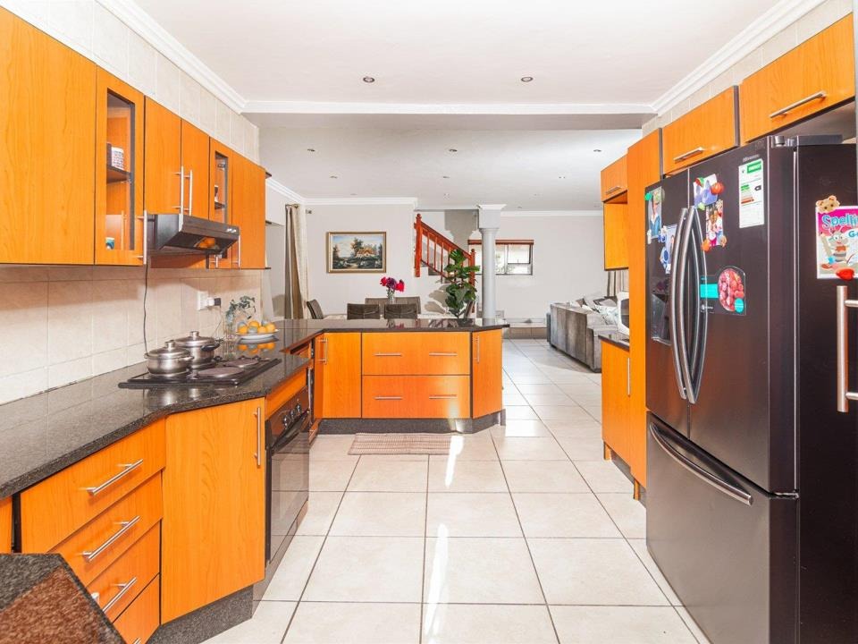 Set on an 805m² stand, the home features open-plan living areas, a stylish kitchen with scullery, and seamless indoor-outdoor flow to an entertainer’s garden with a sparkling pool. A downstairs guest suite with full bathroom provides comfort for visitors, while a versatile extra room can serve as a gym, studio, or office.