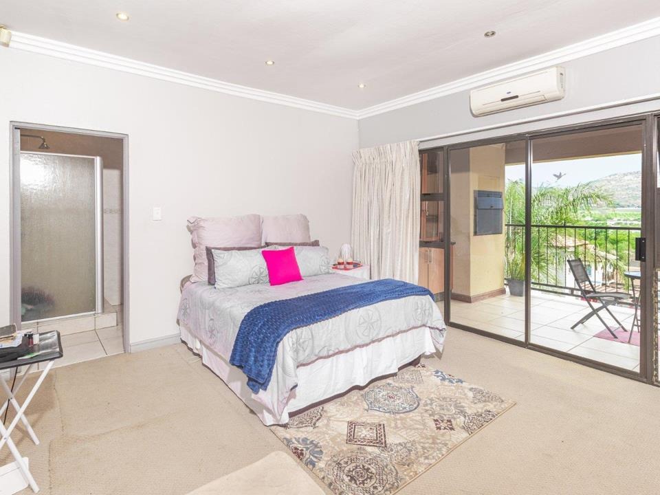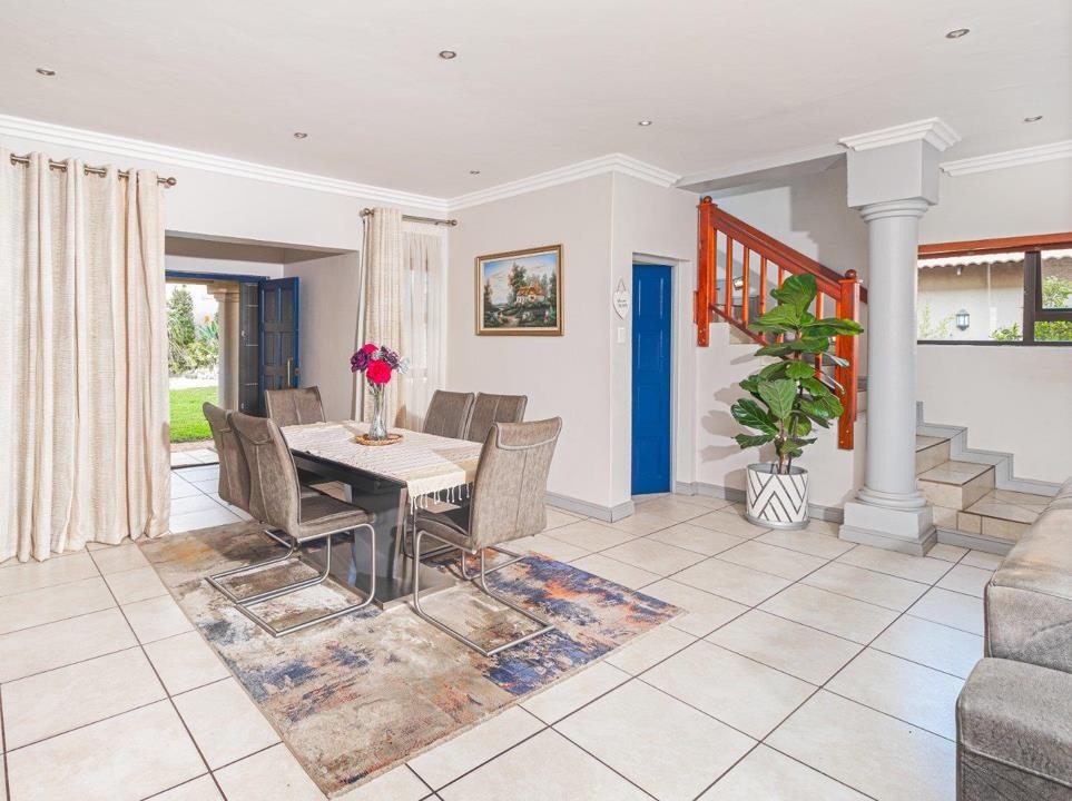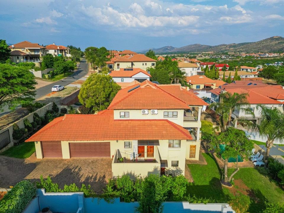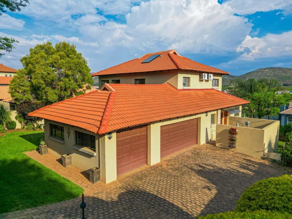 This contemporary 4-bedroom residence in the heart of Melodie offers luxury, space, and breathtaking views of the Magaliesberg Mountains and Hartbeespoort Dam.