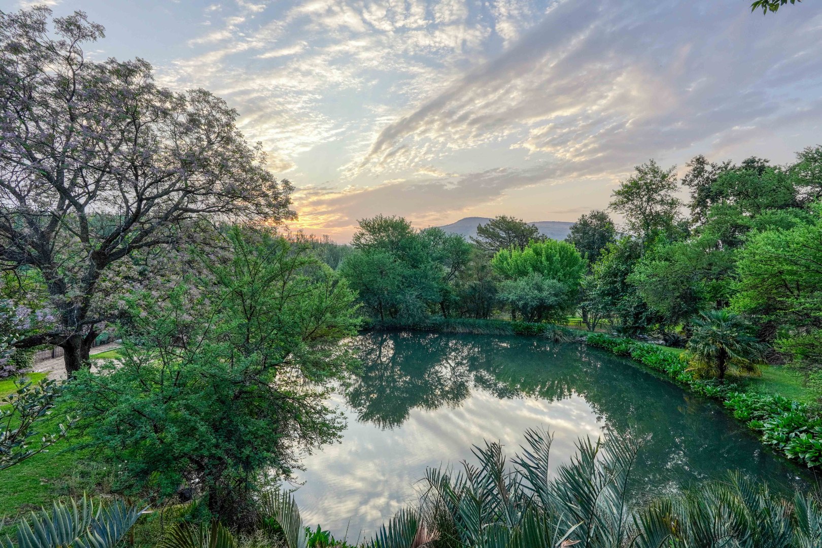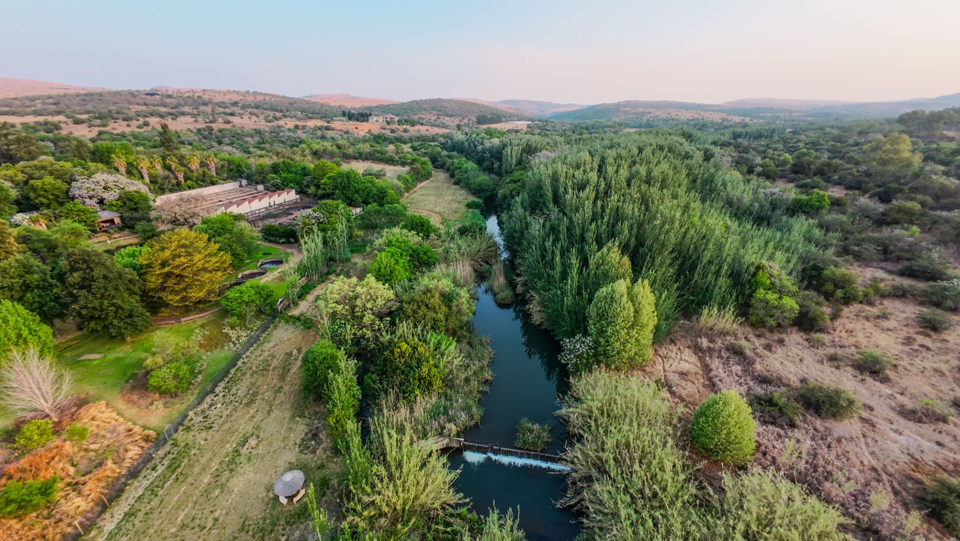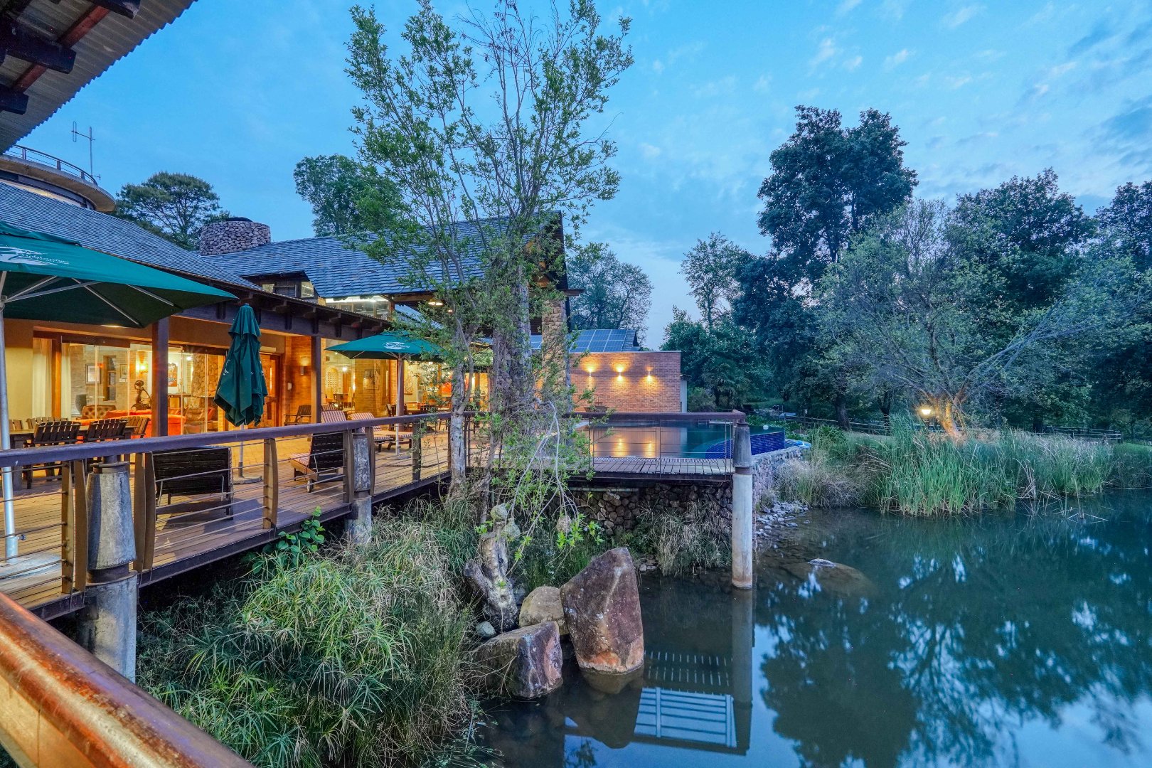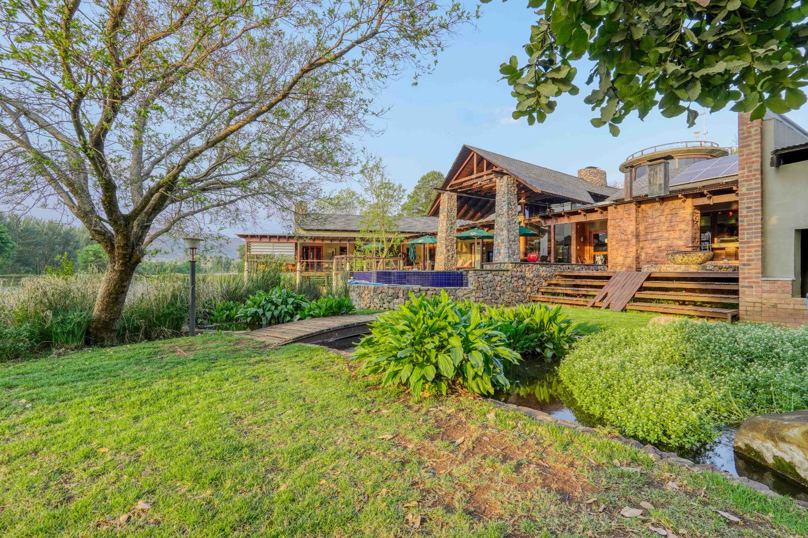 Set among flowing water channels, lush greenery with bountiful bird and animal life, and scenic trout dams, the property features four dwellings—centred around a remarkable mansion designed as a boutique hotel, giving it a refined, luxurious presence. The farm is at the foot of the Witwatersberg with a view of the Magaliesberg, within the internationally renowned Cradle of Humankind, adding historical depth and biodiversity significance to its natural beauty. This estate delivers a once-in-a-lifetime combination of natural beauty, heritage significance, luxury living, and business potential.