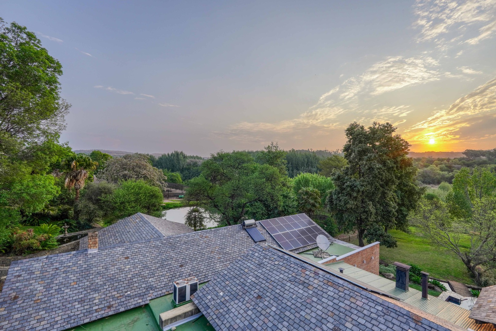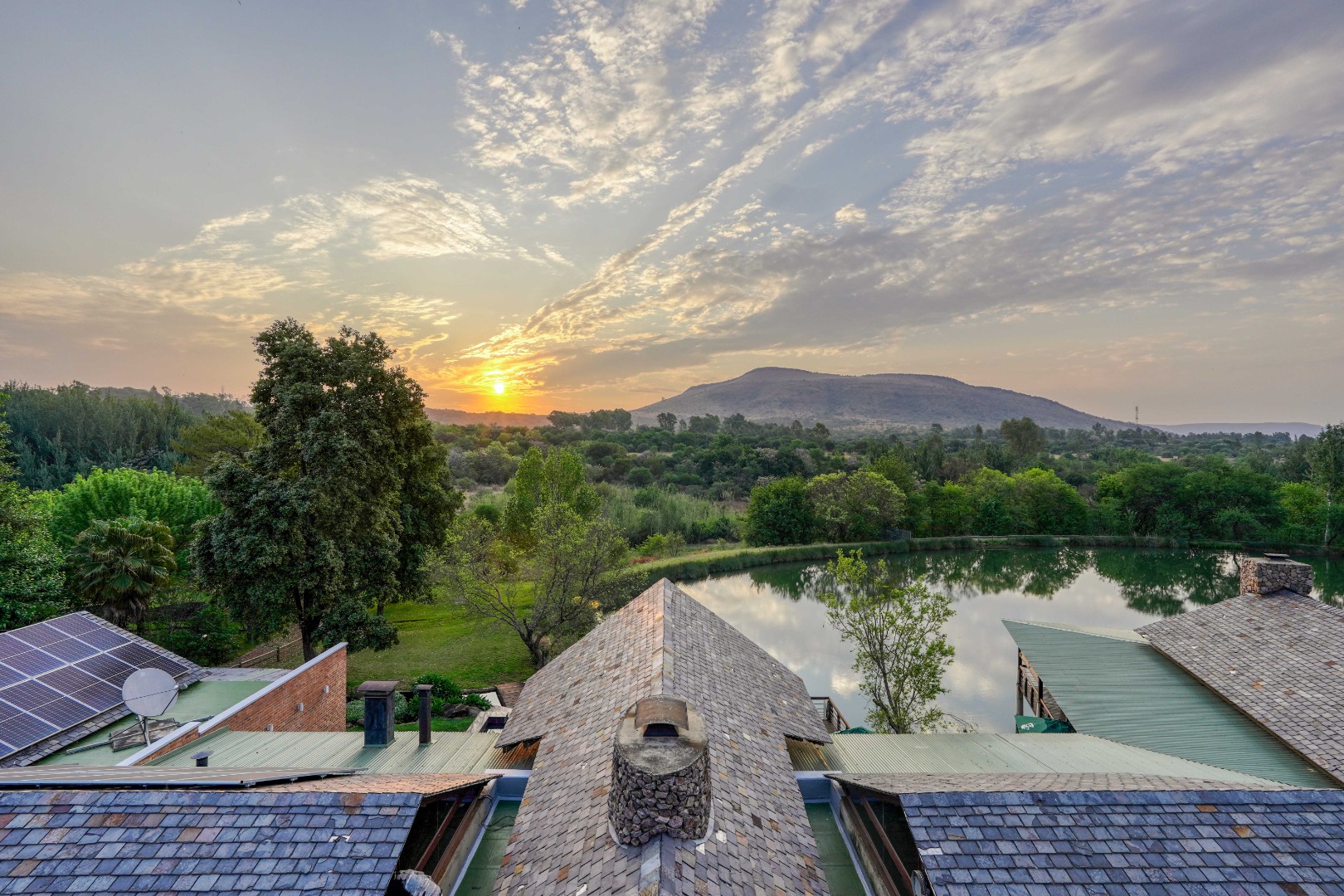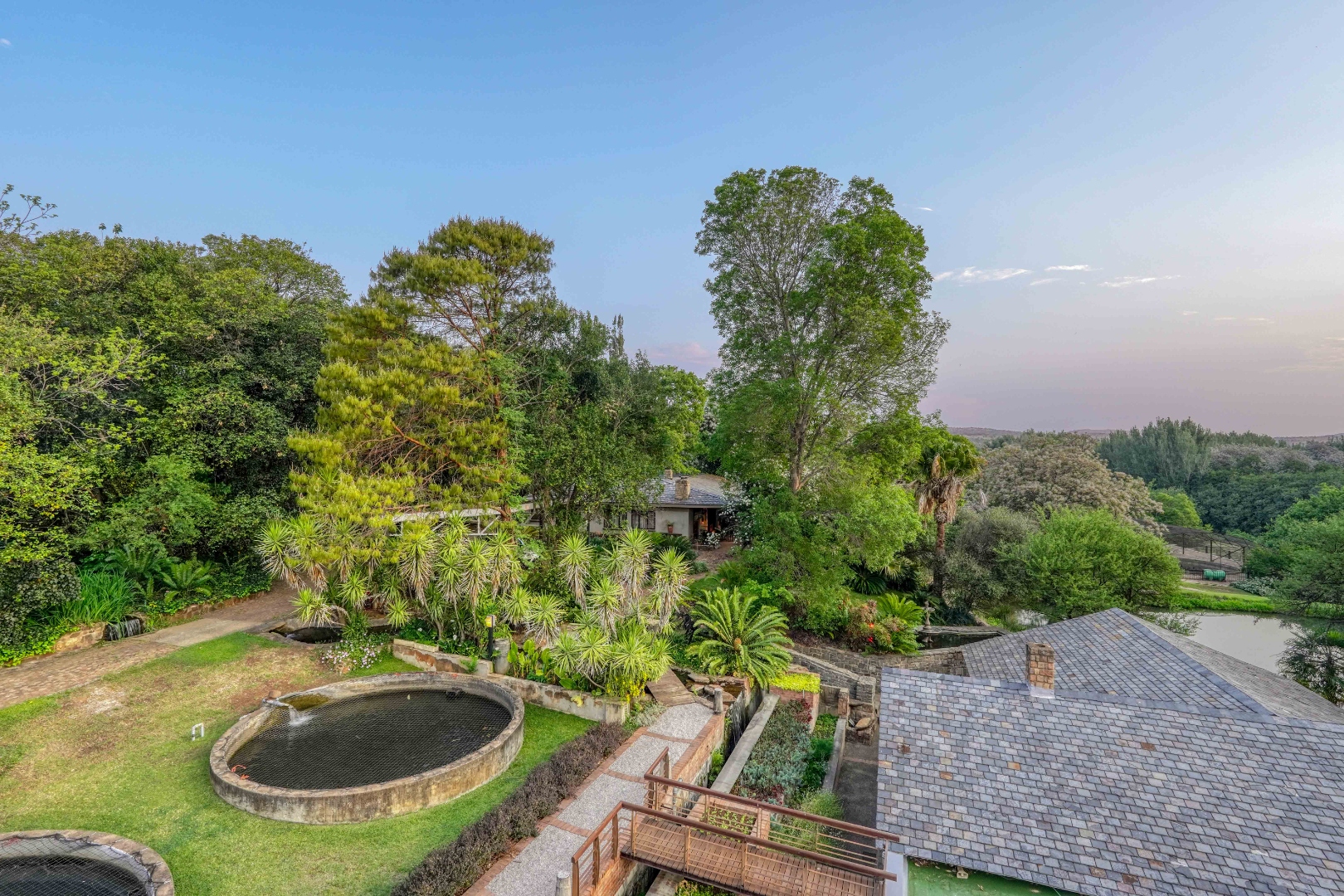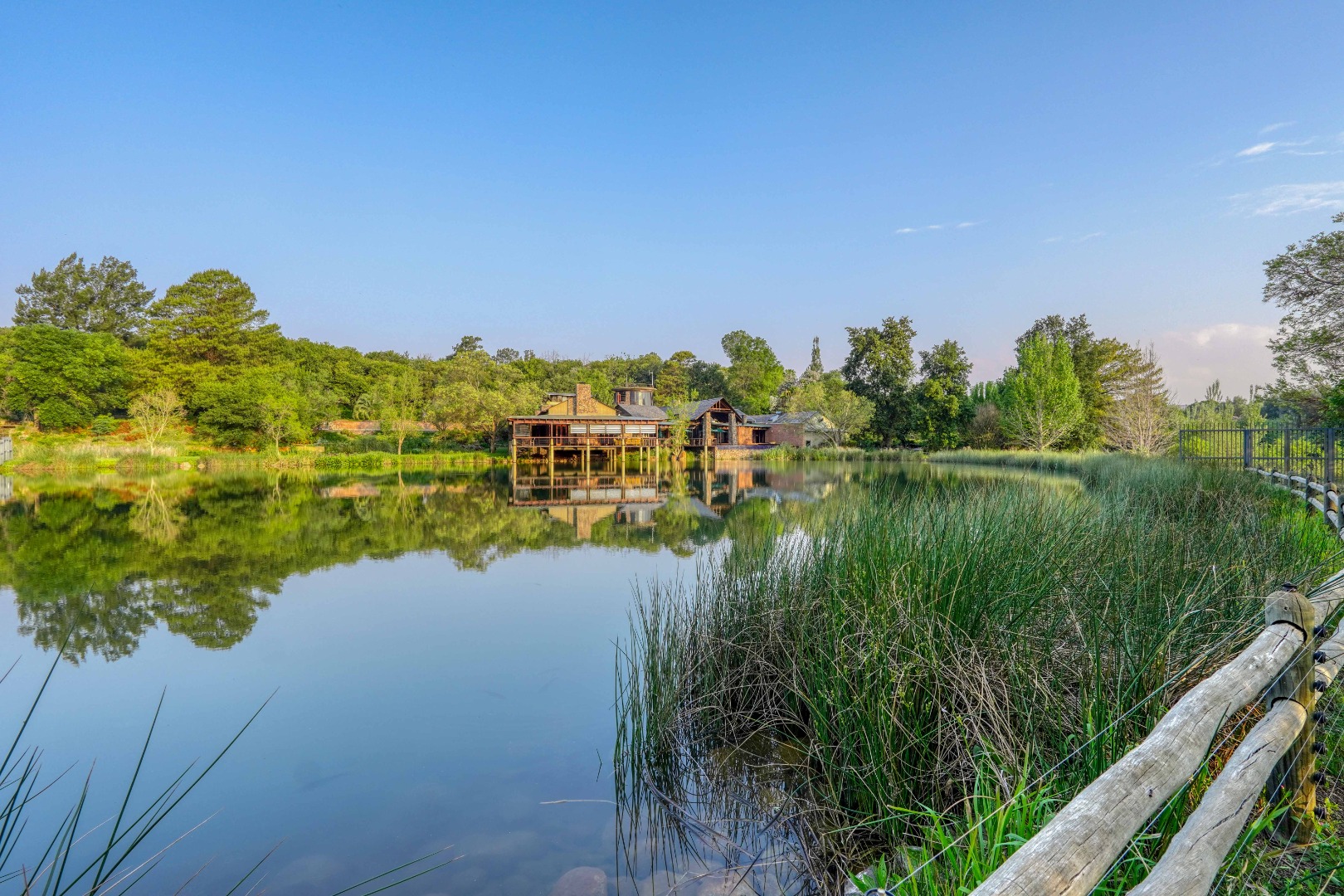Set among flowing water channels, lush greenery with bountiful bird and animal life, and scenic trout dams, the property features four dwellings—centred around a remarkable mansion designed as a boutique hotel, giving it a refined, luxurious presence. The farm is at the foot of the Witwatersberg with a view of the Magaliesberg, within the internationally renowned Cradle of Humankind, adding historical depth and biodiversity significance to its natural beauty. This estate delivers a once-in-a-lifetime combination of natural beauty, heritage significance, luxury living, and business potential.