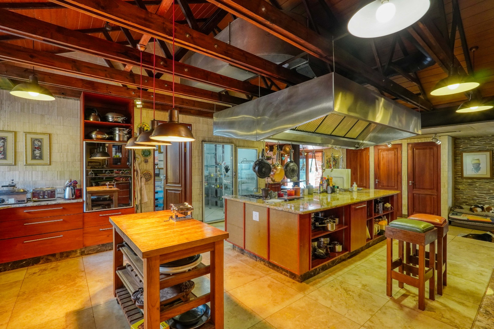 The industrial-grade kitchen boasts a walk-in fridge and freezer, full-length extractor, and restaurant-standard cleaning equipment.