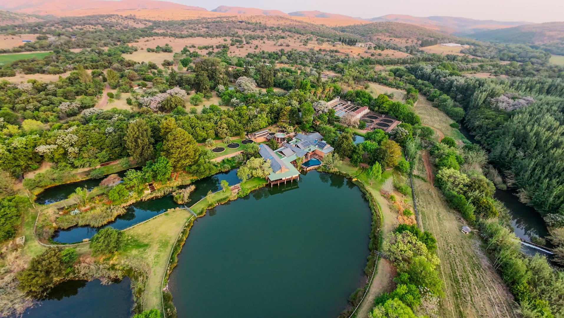 Additional Homes & Accommodation - The property includes three self-catering cottages, each with 2–3 bedrooms—ideal for tourism, guest accommodation, or multi-family living. The Kingfisher cottage is close by to the Mansion and it’s private braai room overlook trout dams and the hatchery. Trout house is situated in a lush garden surrounded by lawns and trees. The Hartebeest house is a secluded bush hide away, nearby the guest pool