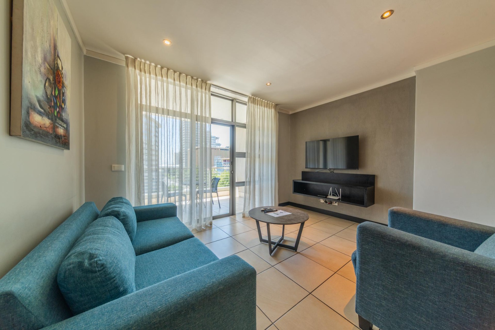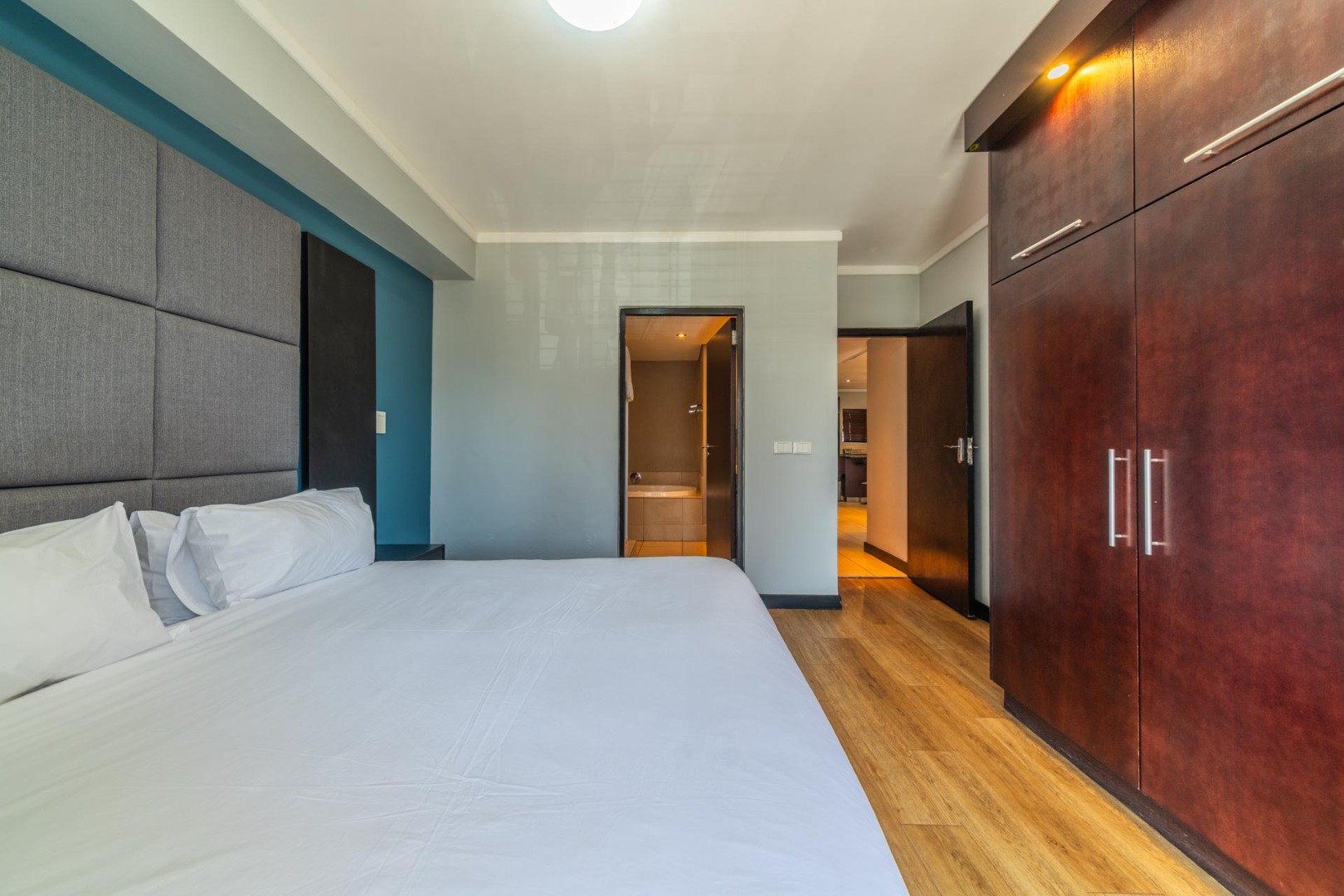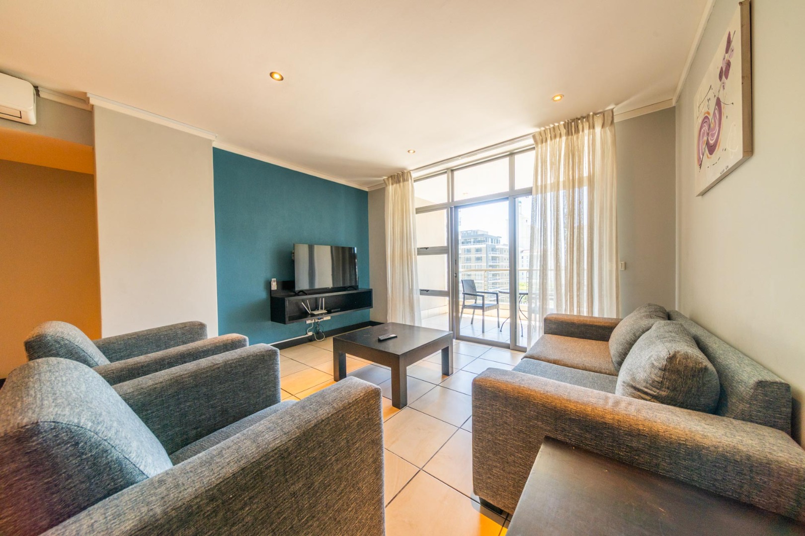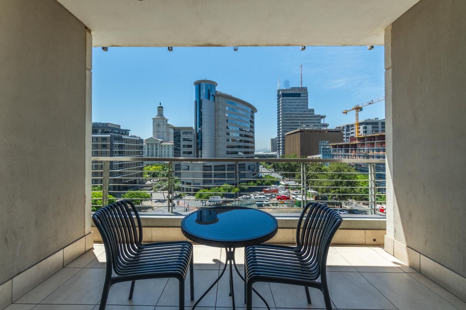 A private balcony extends the living space outdoors, framing panoramic city views with Table Mountain as a dramatic backdrop — perfect for morning coffees or evening sundowners.
