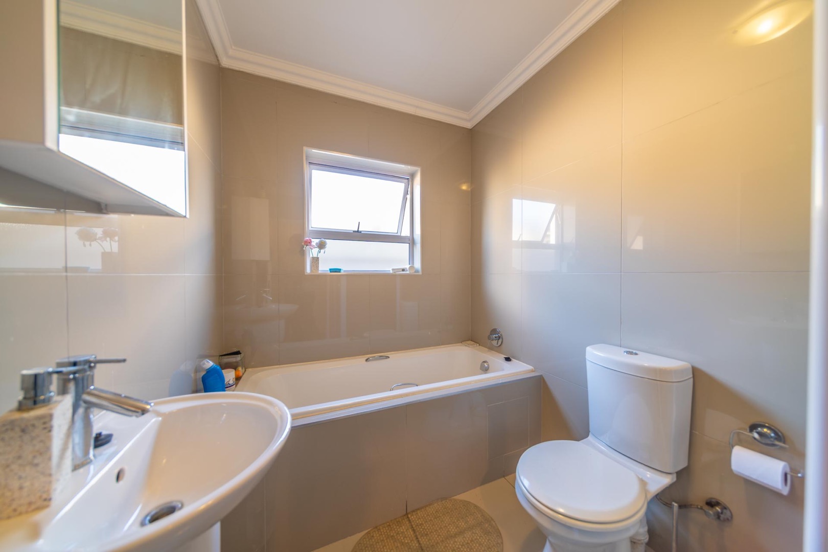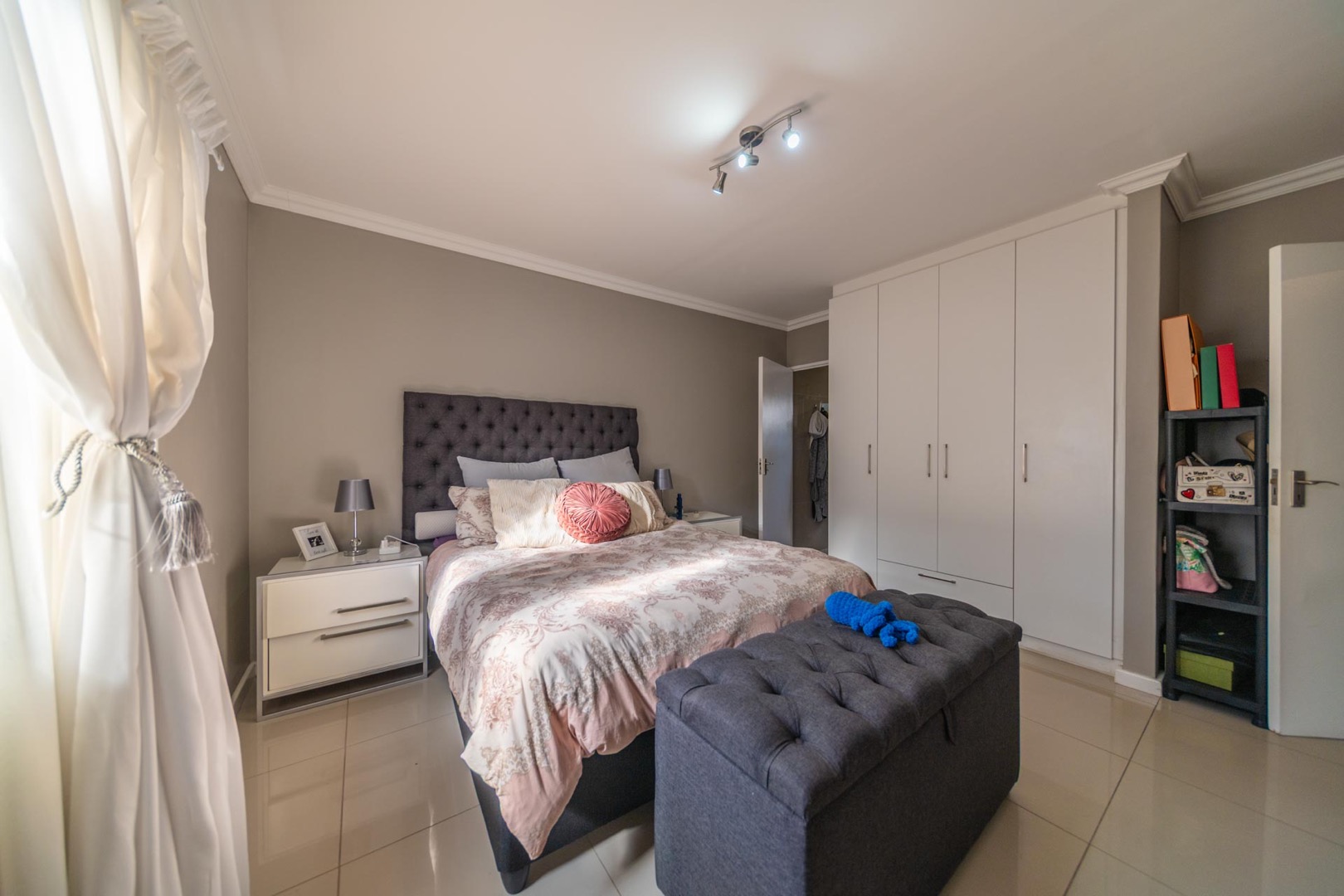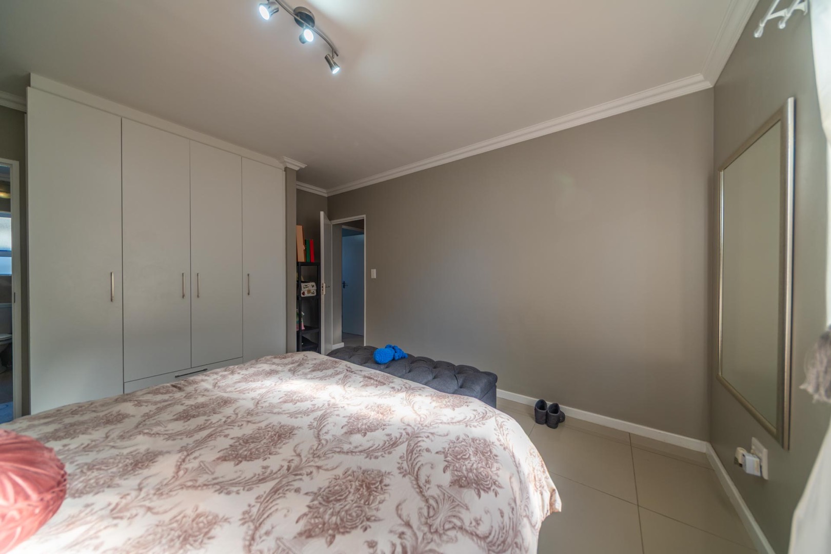 The property features 3 spacious bedrooms with built-in cupboards and 2 modern bathrooms, including a main en-suite.