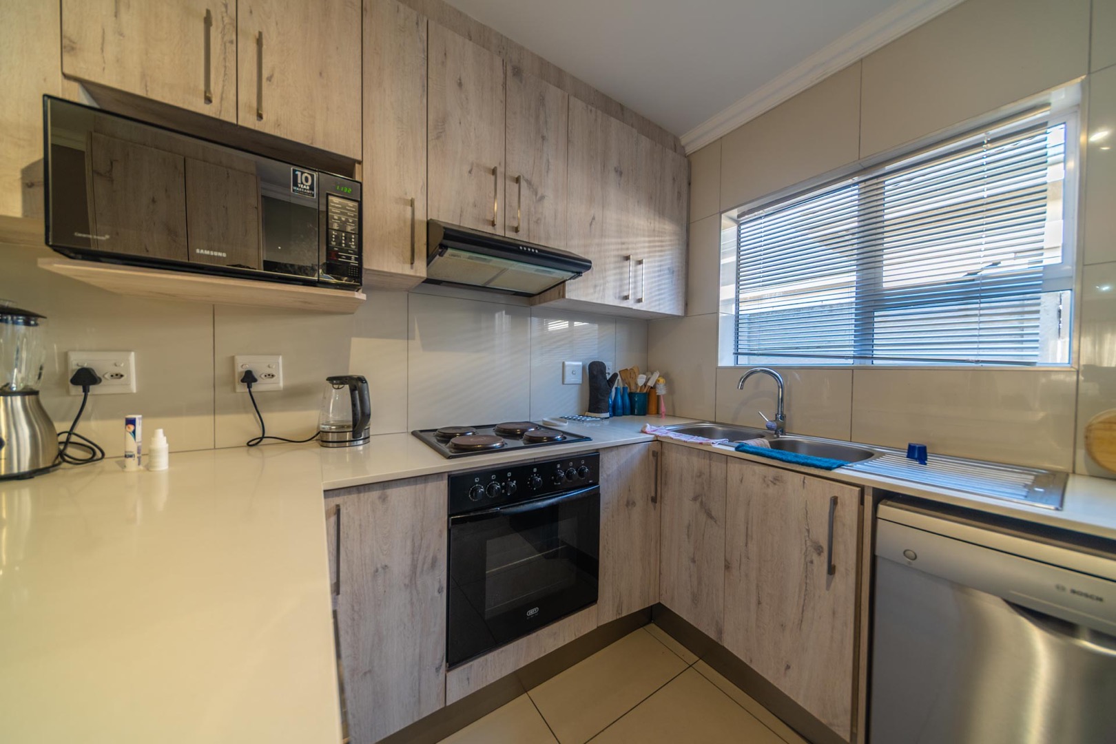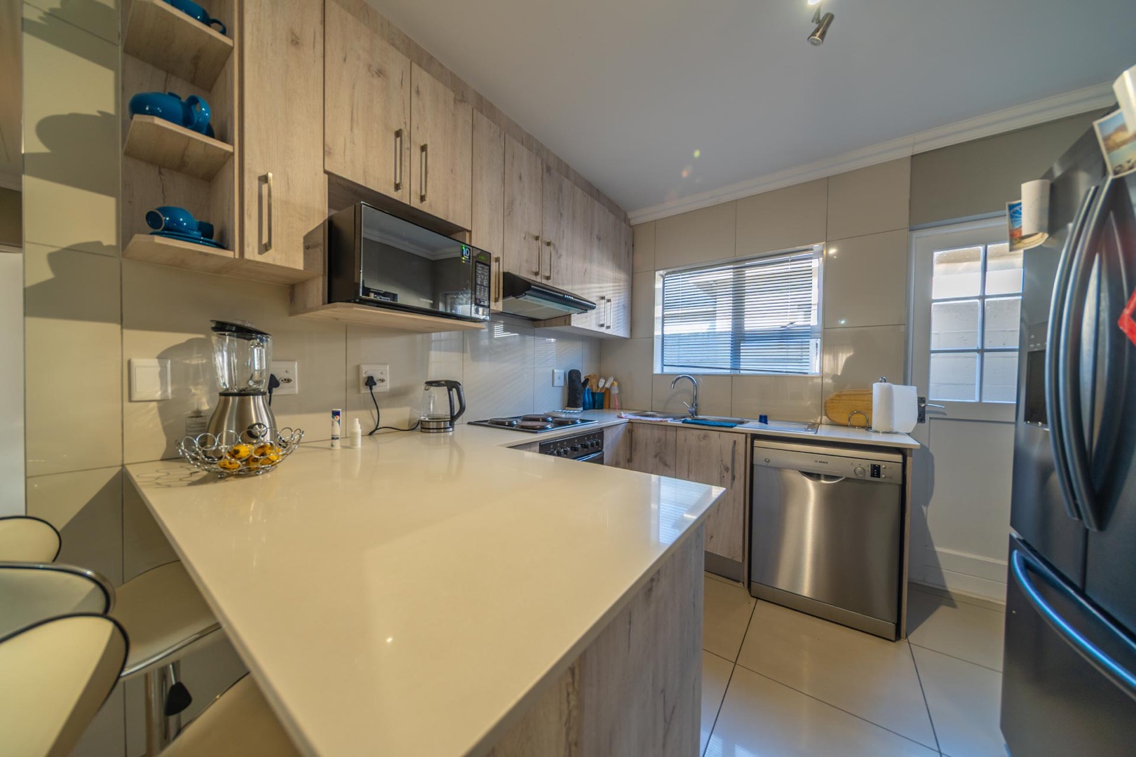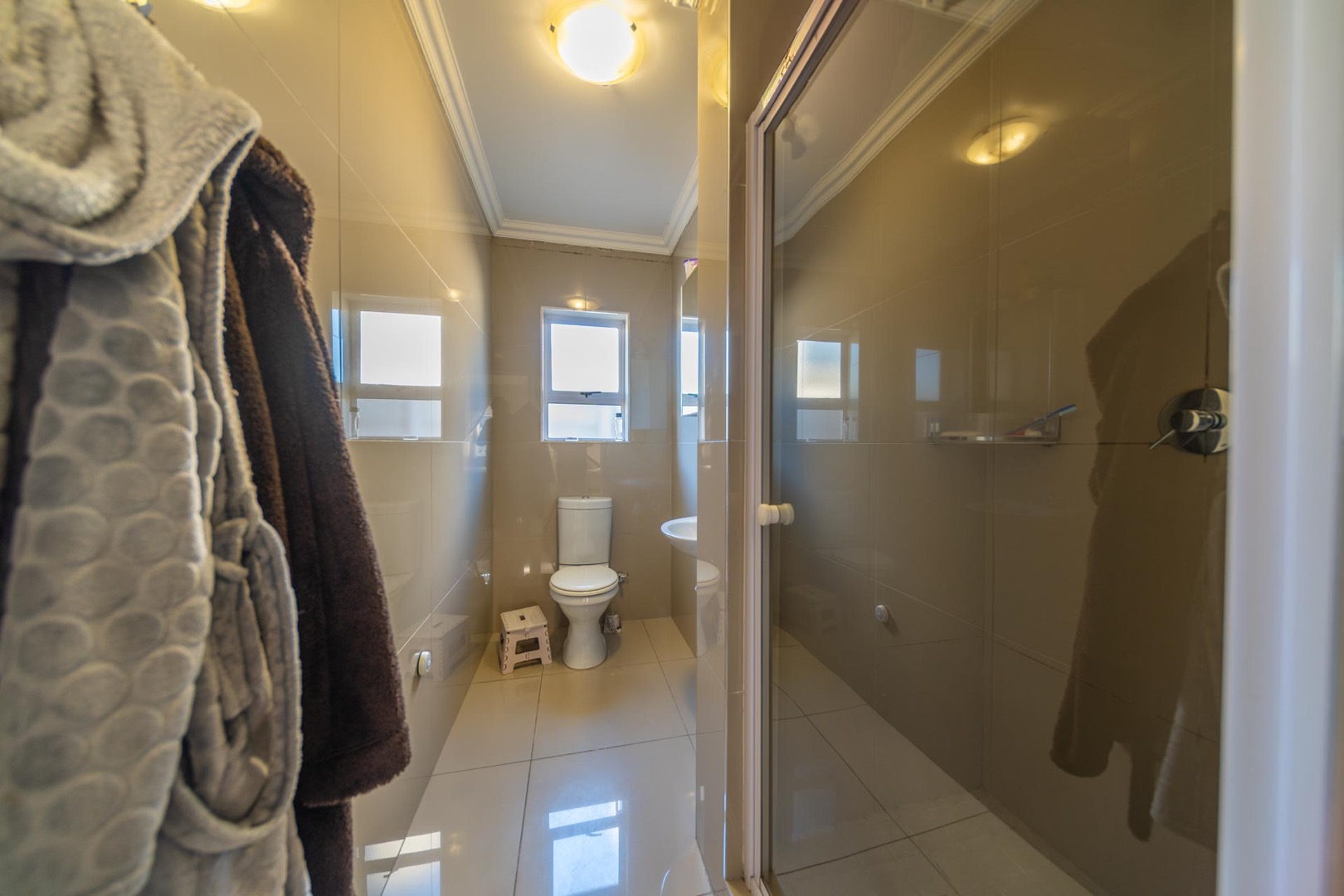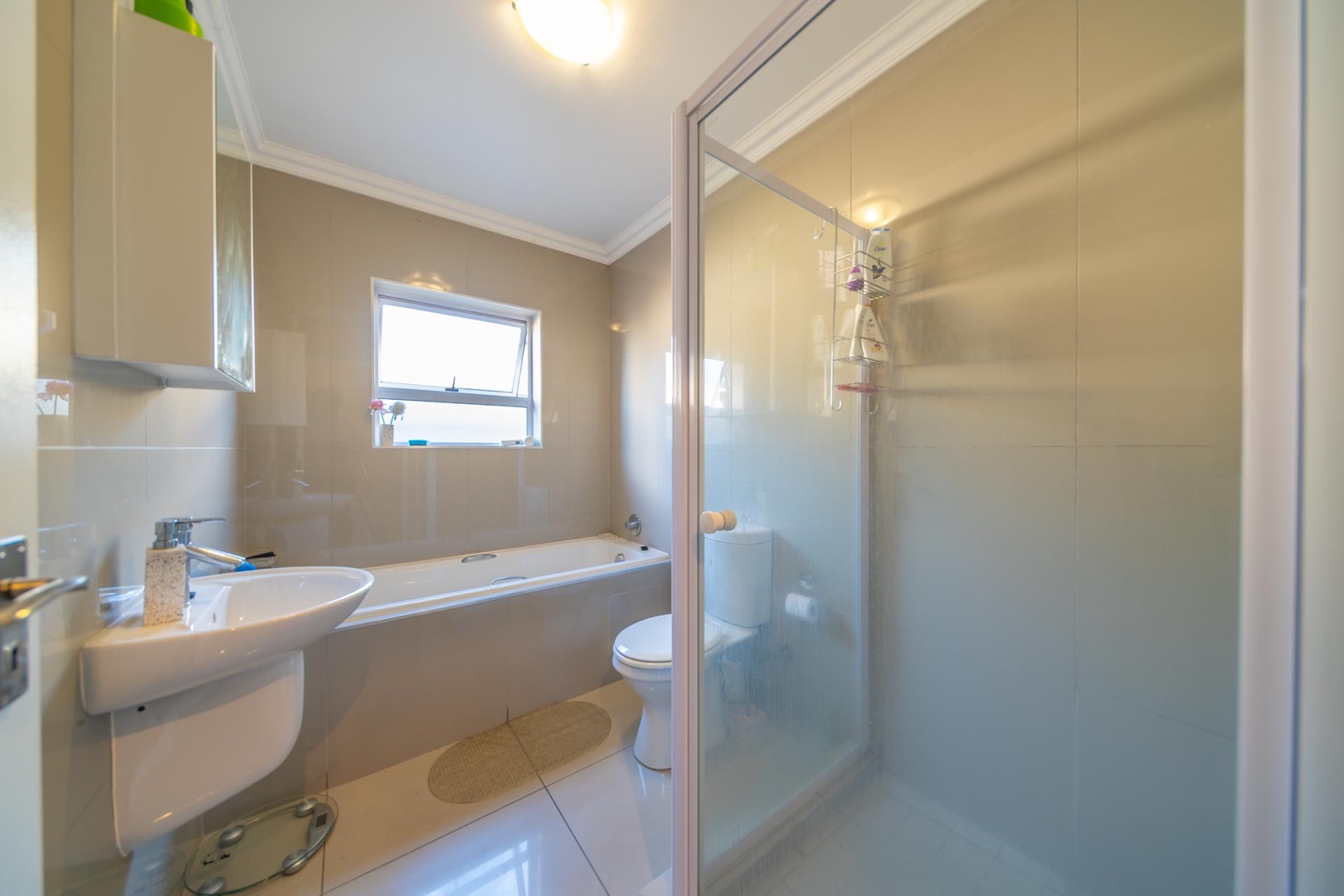 The property features 3 spacious bedrooms with built-in cupboards and 2 modern bathrooms, including a main en-suite.