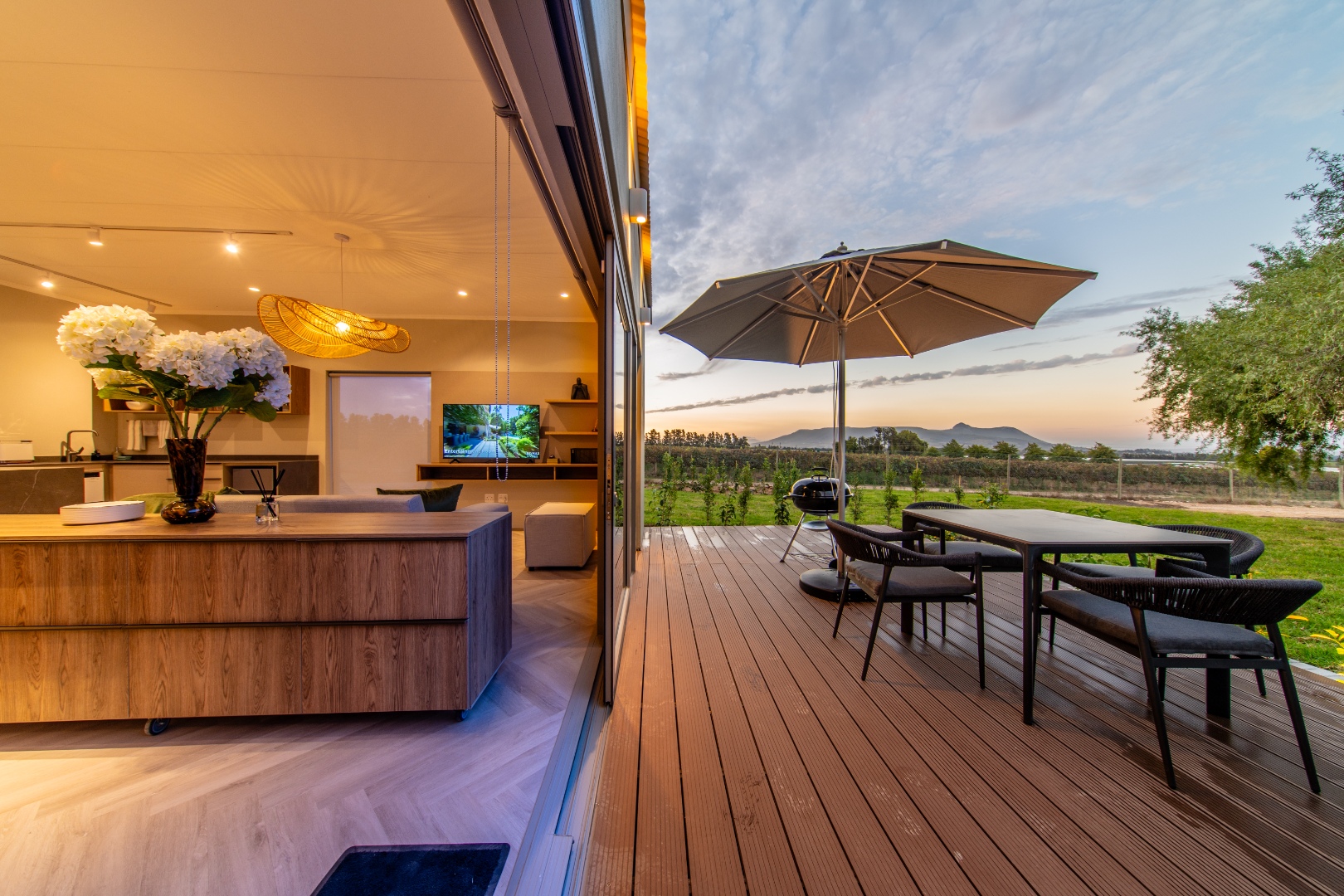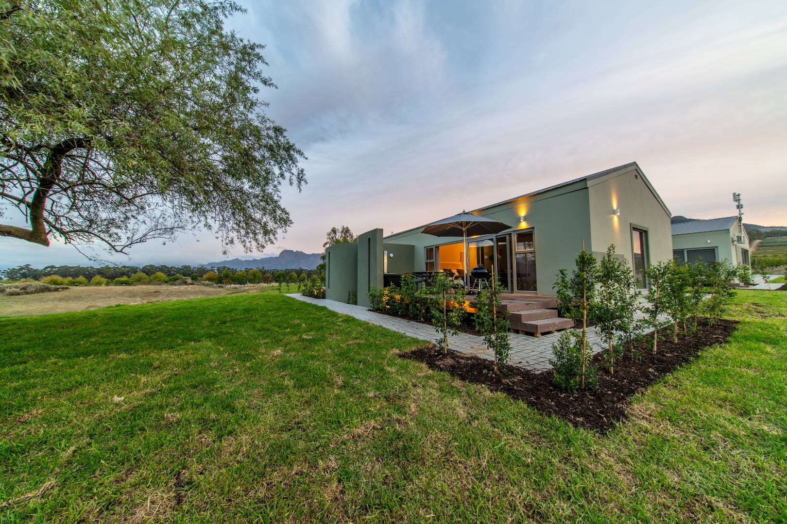 Discover the perfect blend of lifestyle and investment on a stunning 38.5-hectare fully operational wine and olive farm with a private events venue in the heart of the Cape Winelands. This modern, open-plan 1-bedroom cottage offers a stylish sanctuary surrounded by vineyards and framed by sweeping mountain views.