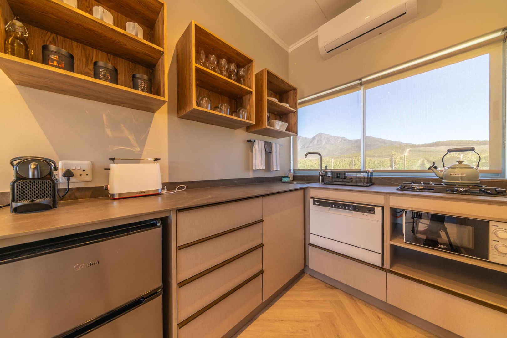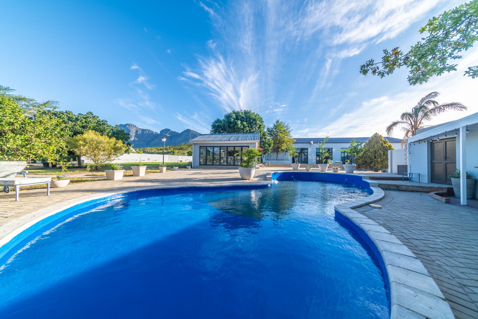 Discover the perfect blend of lifestyle and investment on a stunning 38.5-hectare fully operational wine and olive farm with a private events venue in the heart of the Cape Winelands. This modern 2-bedroom cottage offers an elegant retreat surrounded by vineyards and framed by sweeping mountain views.