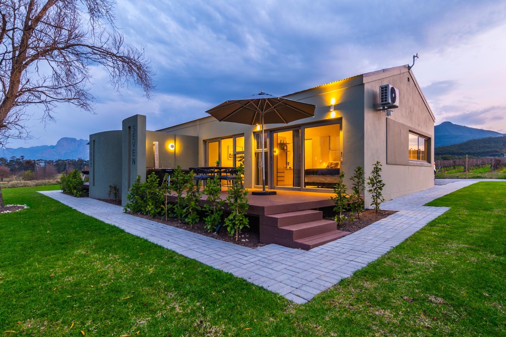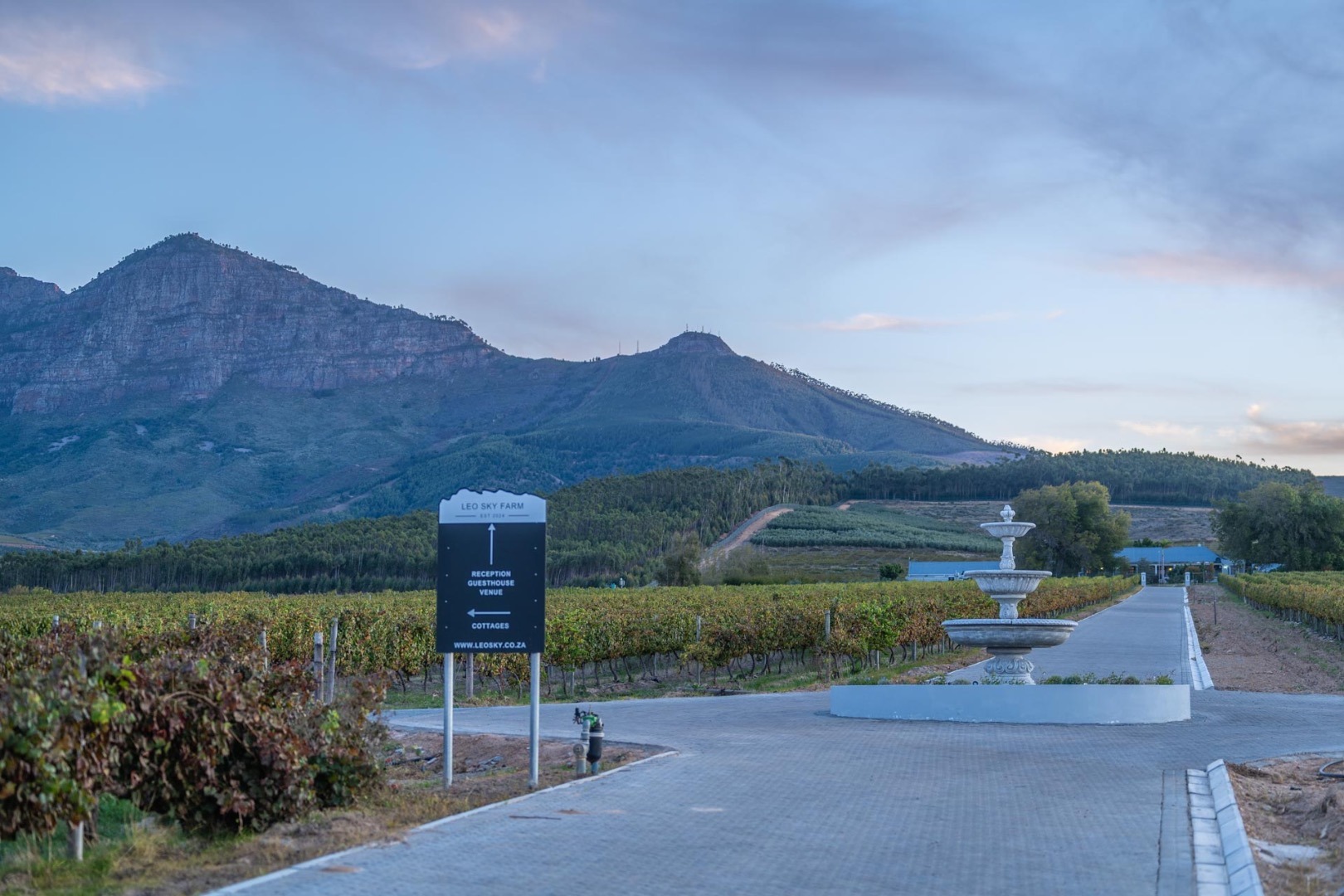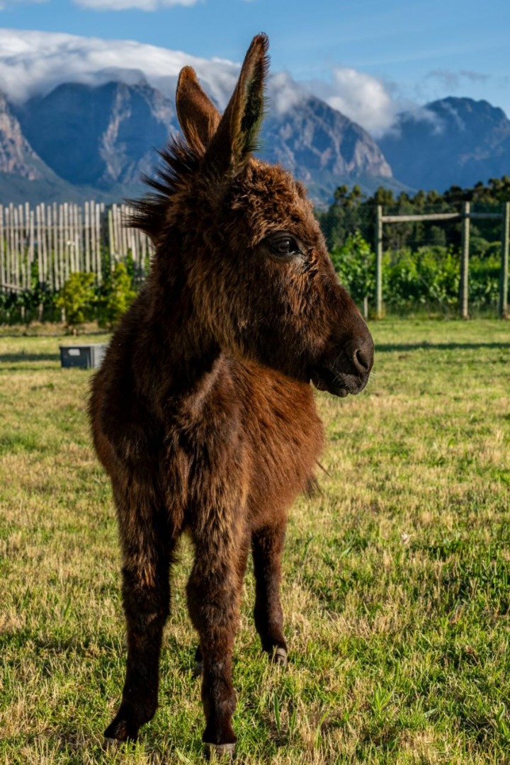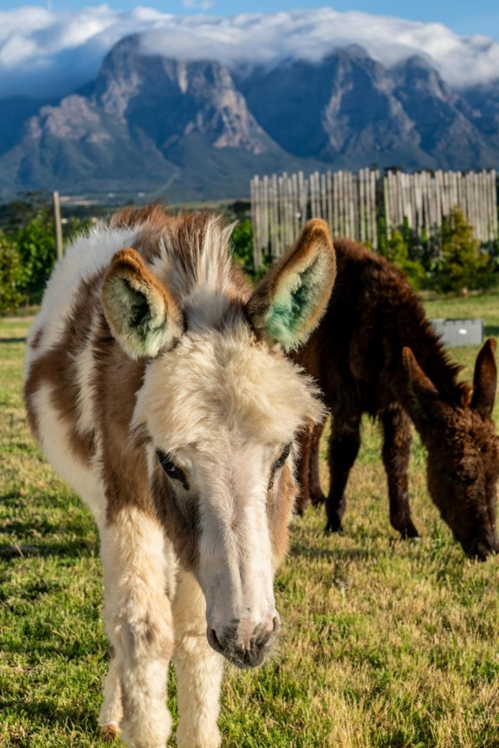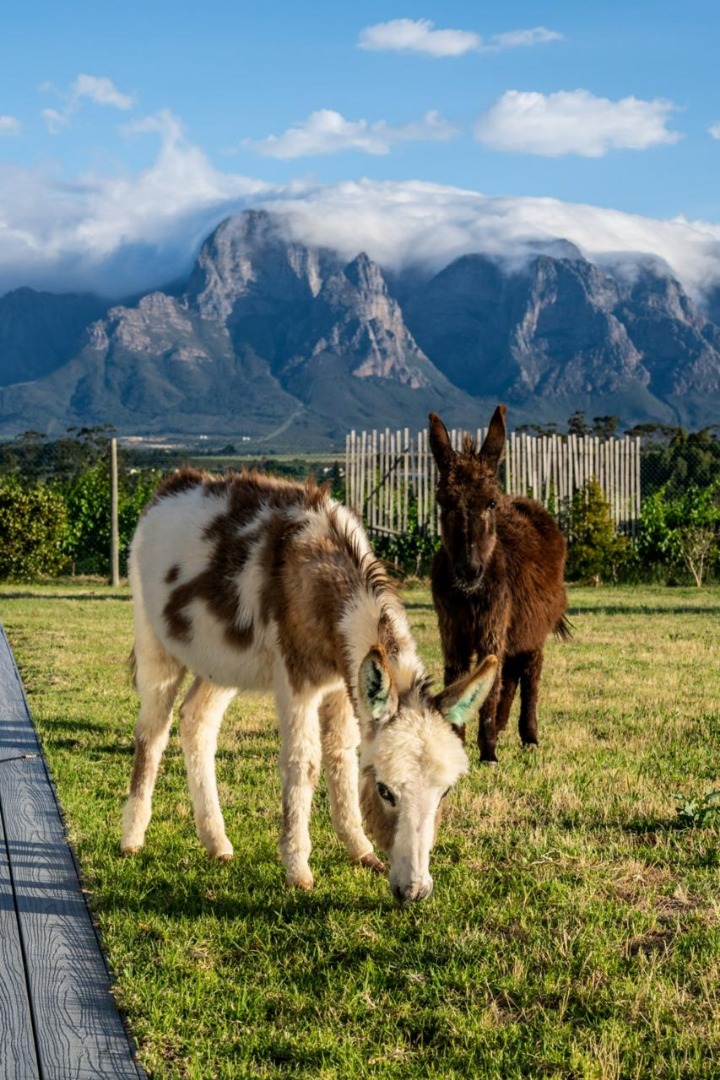 Picture miniature donkeys grazing in your garden, your children exploring the vineyards, and evenings spent with a glass of LEO Sky wine as the Simonsberg turns gold at sunset.