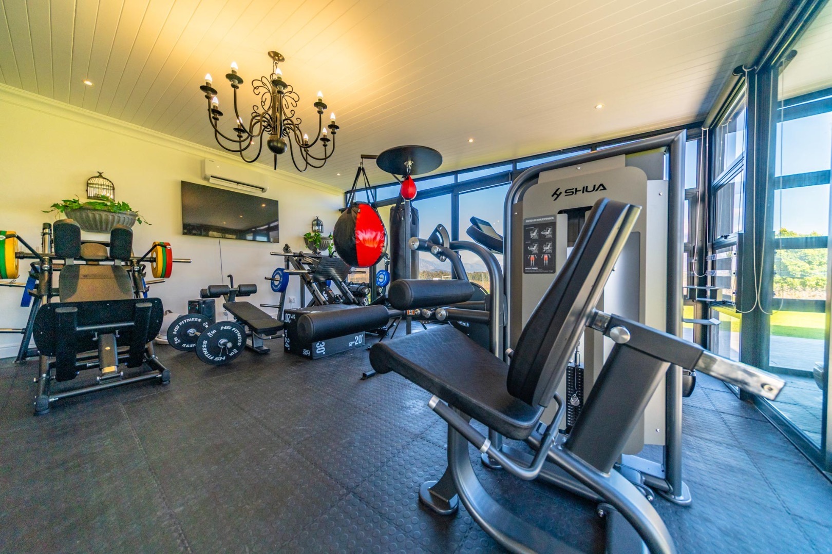 • Fully equipped private gym with panoramic vineyard and mountain views.