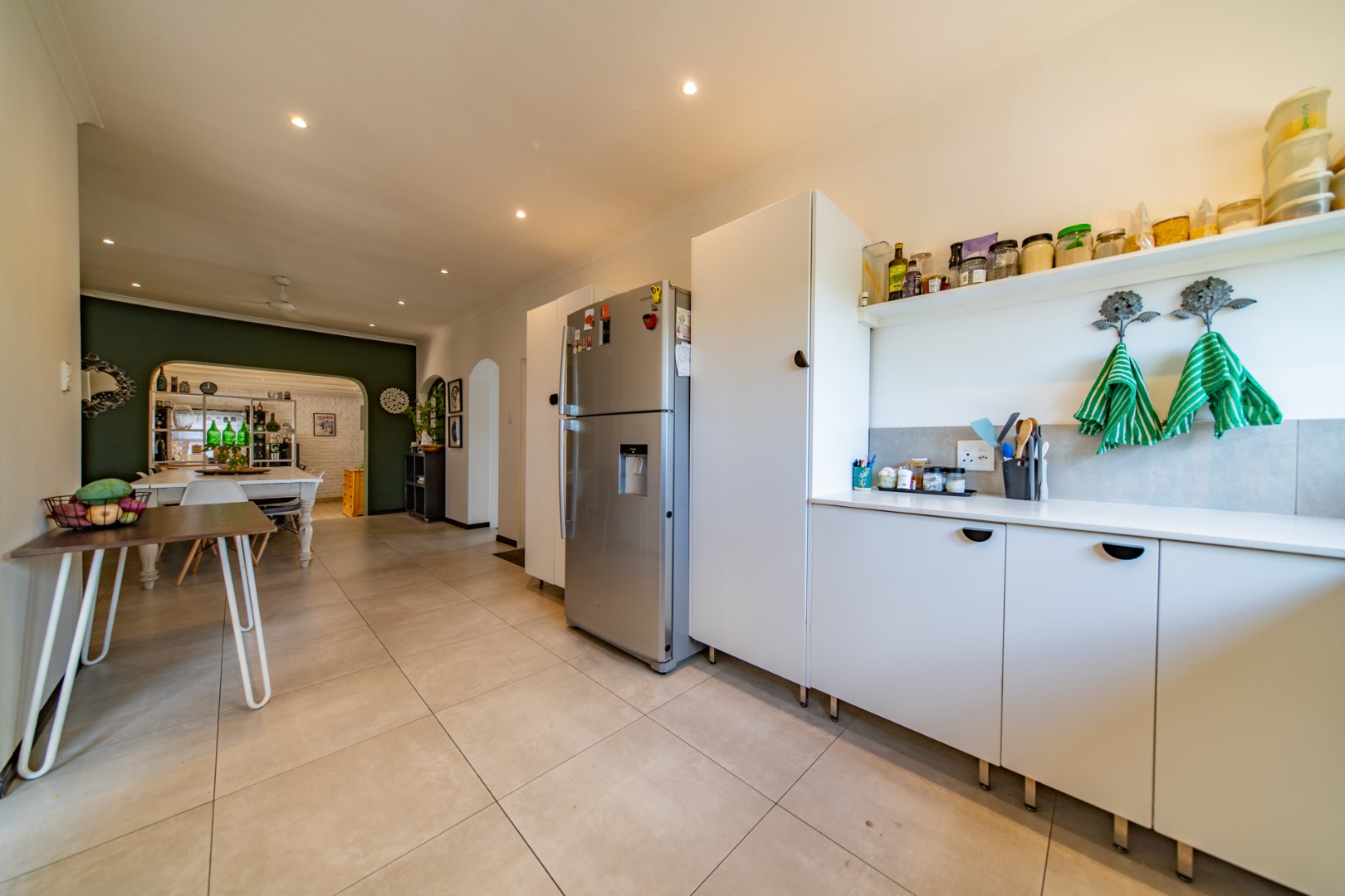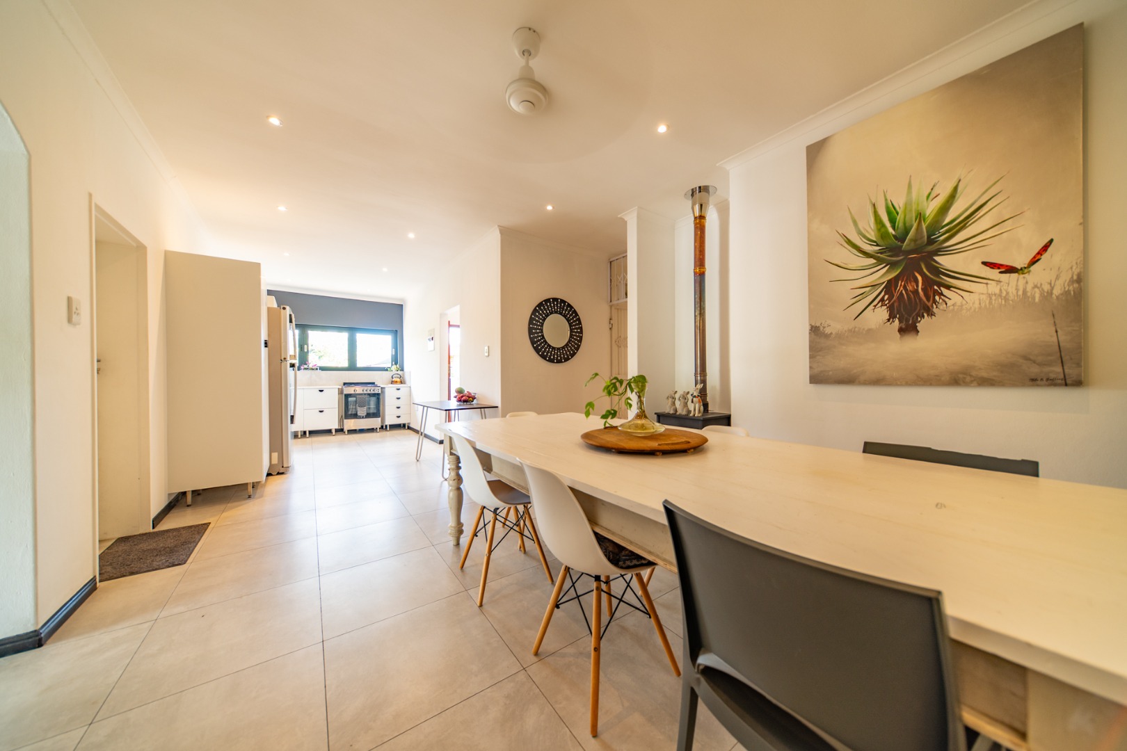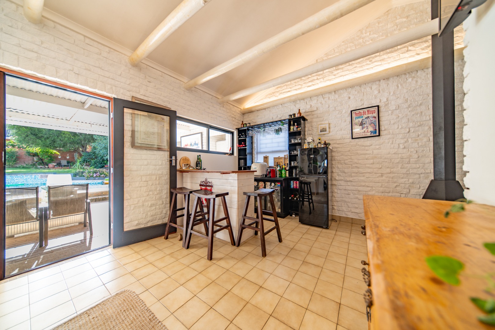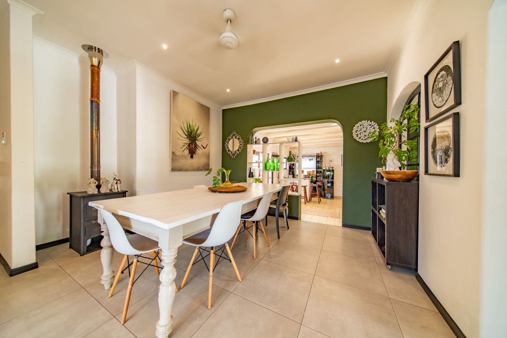 The spacious living areas flow effortlessly throughout the house, complemented by a welcoming braai room that seamlessly connects to the outdoors and is filled with natural light, making it the perfect entertainment space for hosting family and friends overlooking the large swimming pool, or unwind on the front porch with a glass of wine while enjoying uninterrupted views of the Drakenstein Mountains. Two fireplaces add charm and warmth during the cooler months, while the well-appointed kitchen, complete with a spacious scullery, anchors the home as a practical yet inviting centre for family life.
